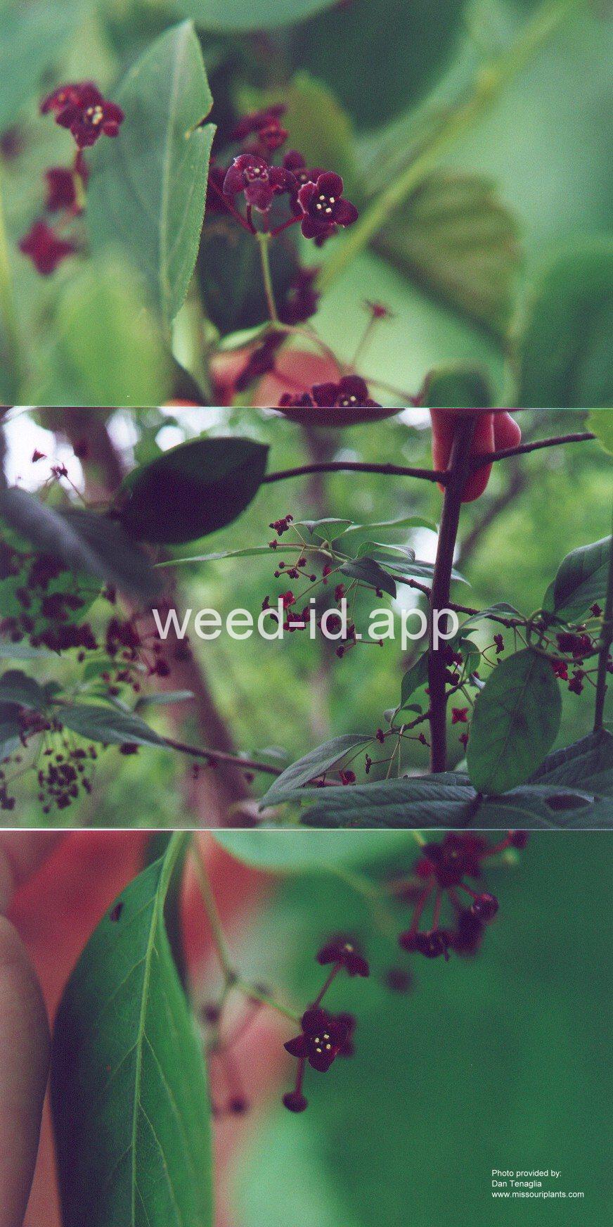 A small shrub, up to 1.5 meters tall, with opposite leaves. The flowers with four dark purple petals, the fruit a capsule, usually with four fleshy seeds.