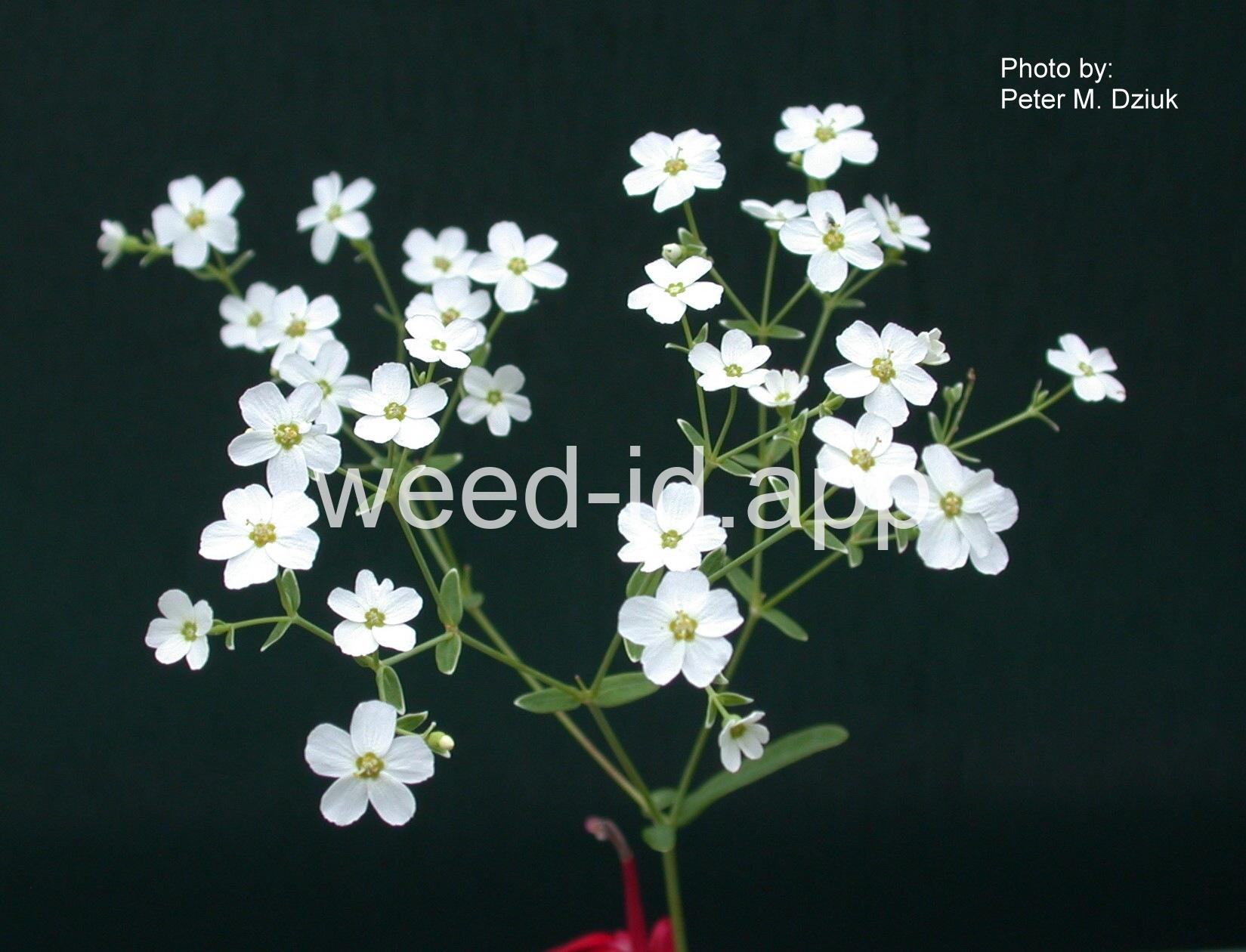 A typical perennial spurge with creeping roots and milky juice. The flowers are subtended by 5 white, petal-like bracts.