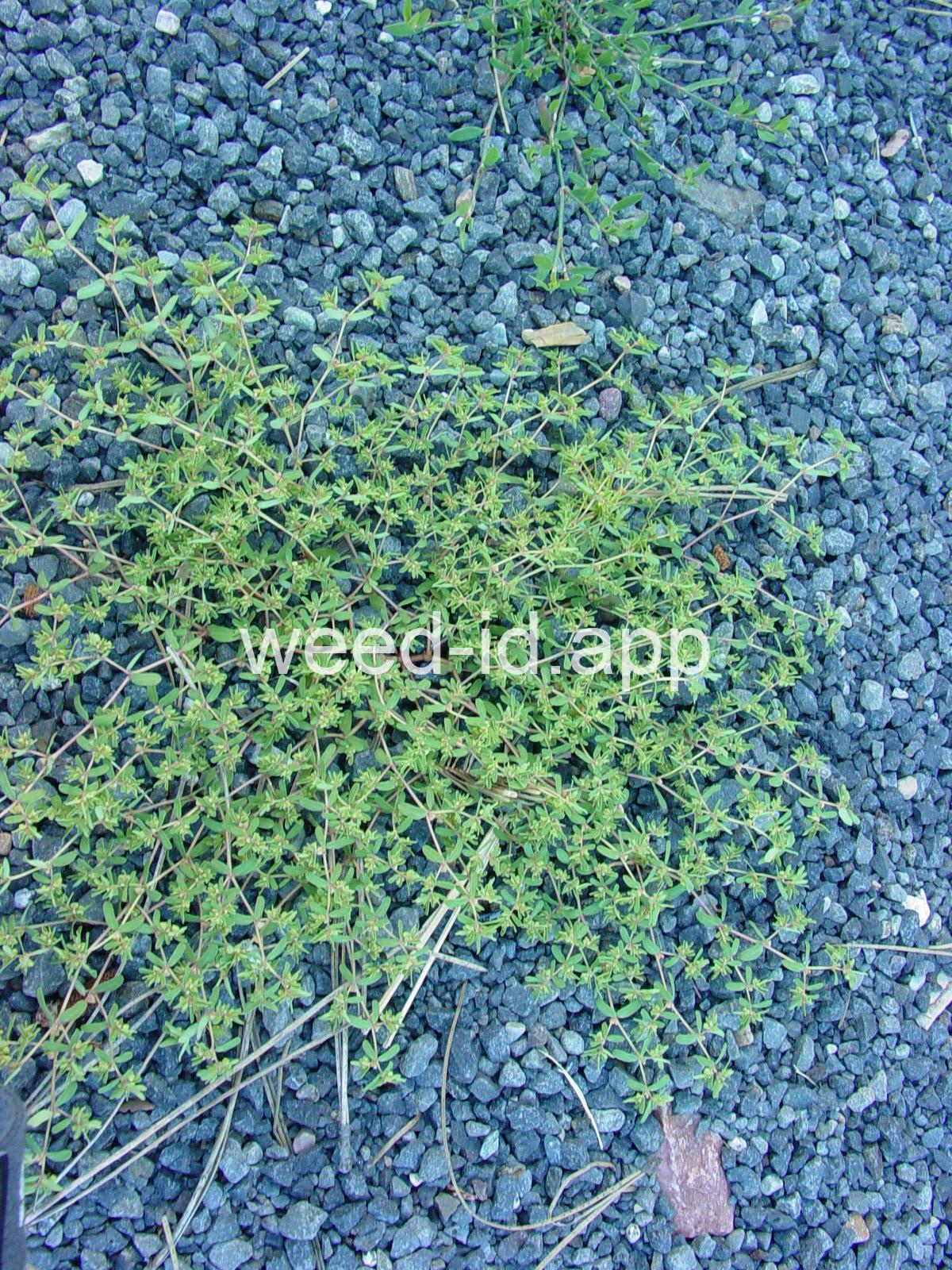 One of many species of prostrate spurges, this species is distinguished by its hairless stem and strongly cross-ridged seeds. Common in dry, often compacted, soils and sometimes confused with prostrate knotweed (note the opposite leaves and milky juice).