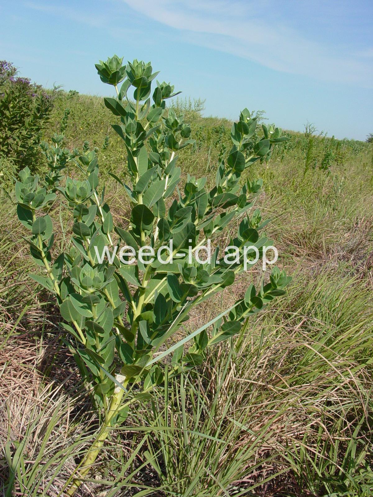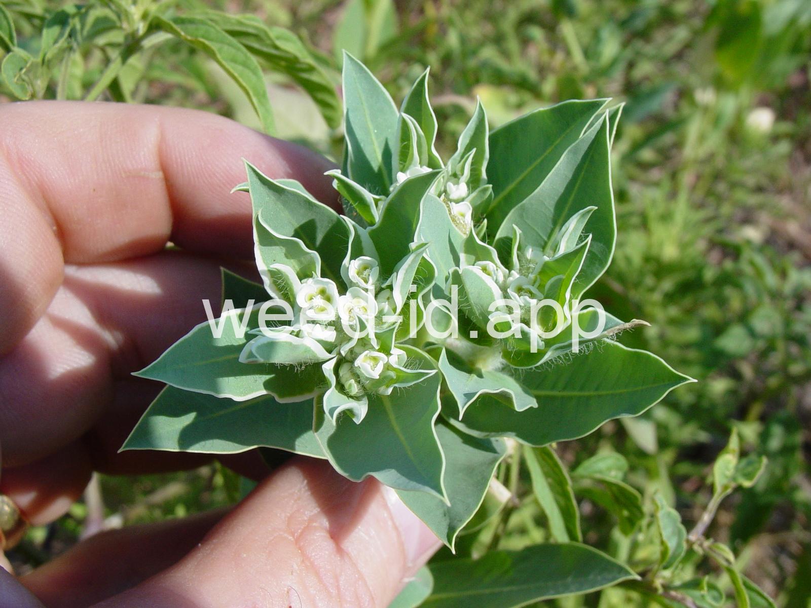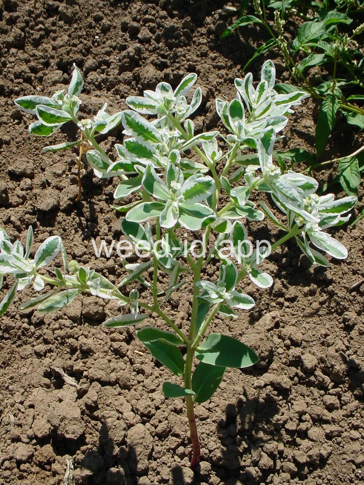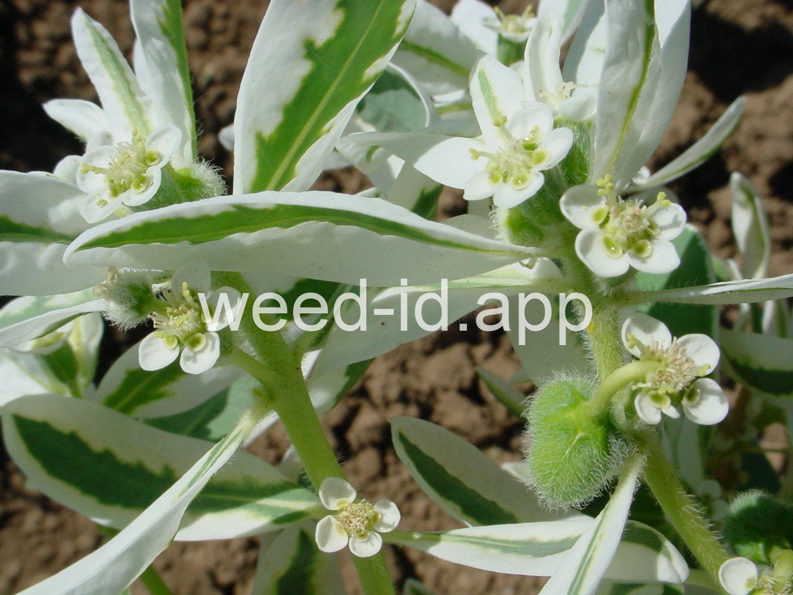 This robust annual can reach over 3 feet in height and is often cultivated for its showy, white-margined leaves. It can be found in pastures and waste areas as well as urban areas. Some people suffer a dermal-toxic reaction to this species. It is toxic to livestock.