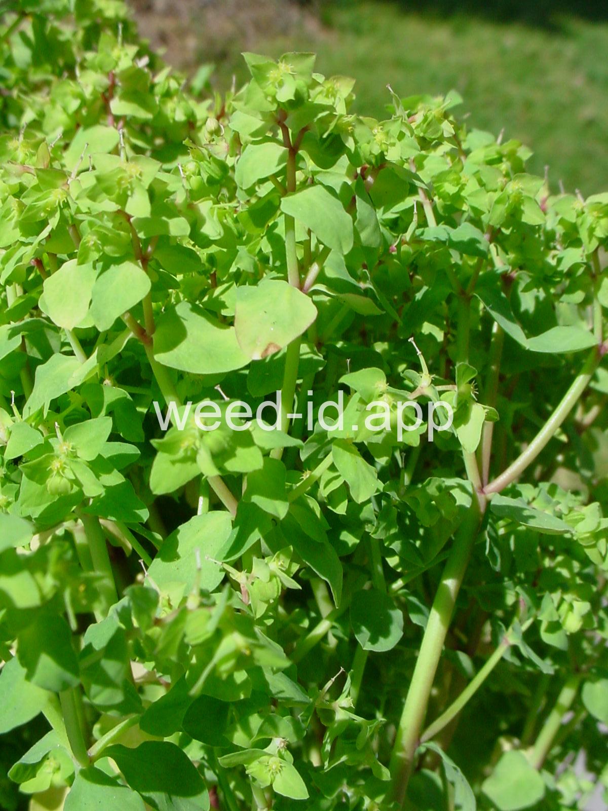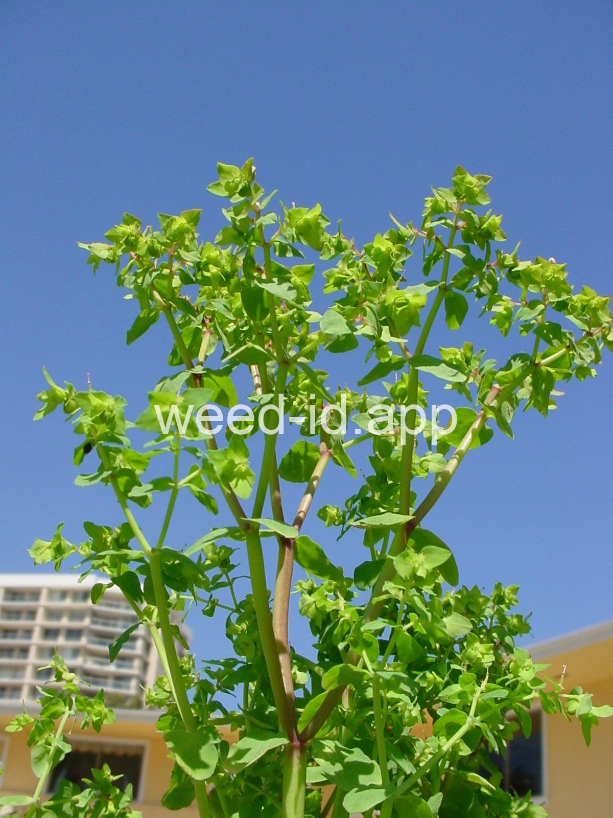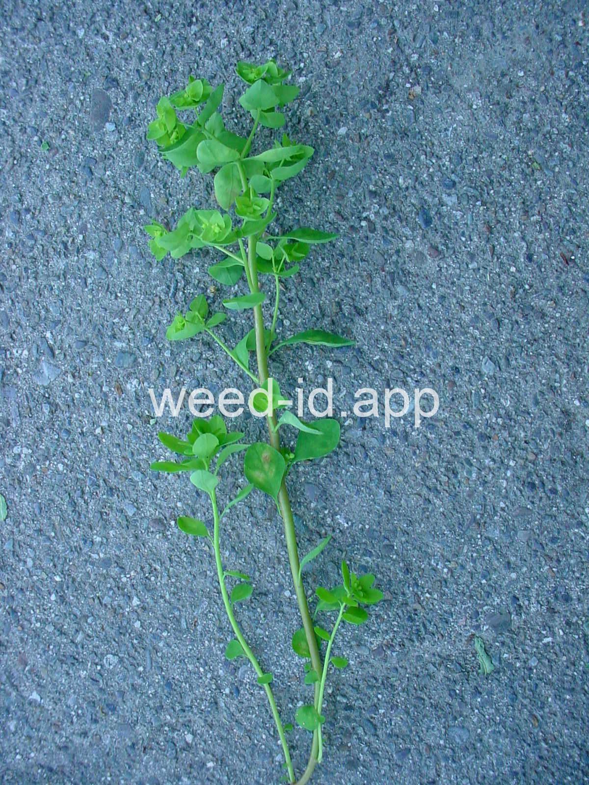 Very dissimilar from many other annual spurges in that it is erect and columnar with round to oval petiolate leaves. Similar to Euphorbia helioscopia but with 3 rather than 5 primary rays to the umbel.