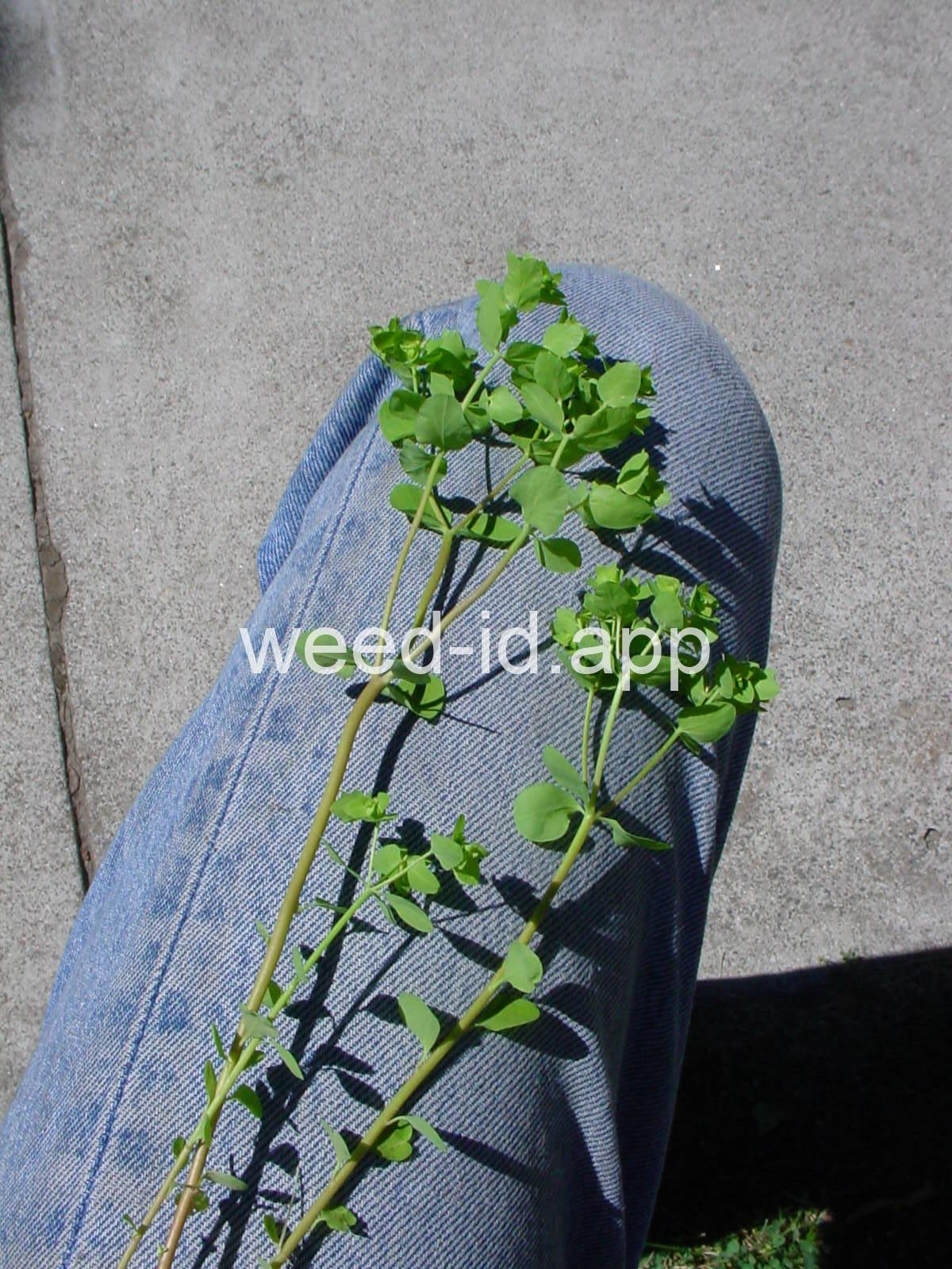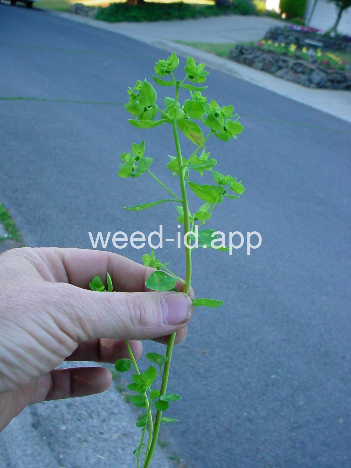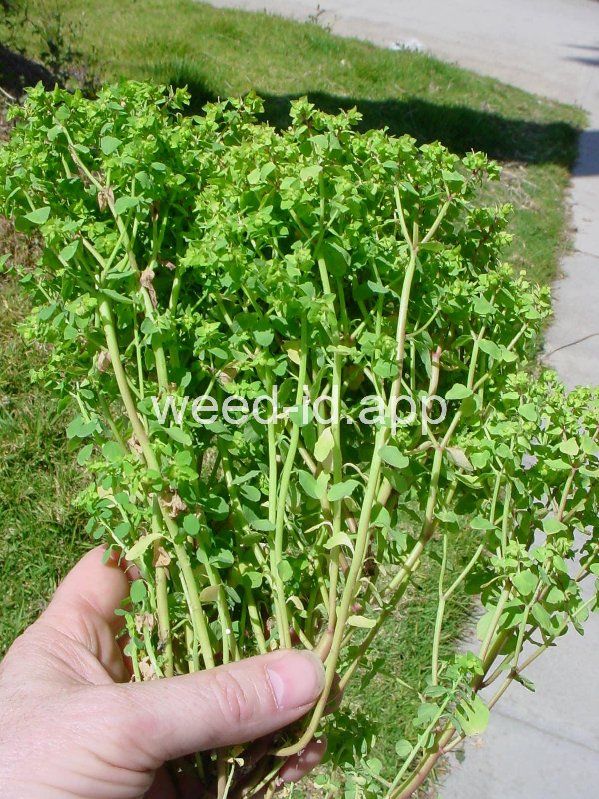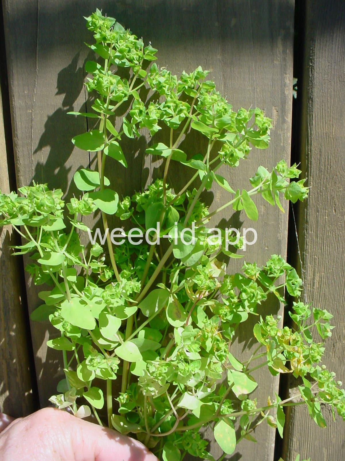 Very dissimilar from many other annual spurges in that it is erect and columnar with round to oval petiolate leaves. Similar to Euphorbia helioscopia but with 3 rather than 5 primary rays to the umbel.