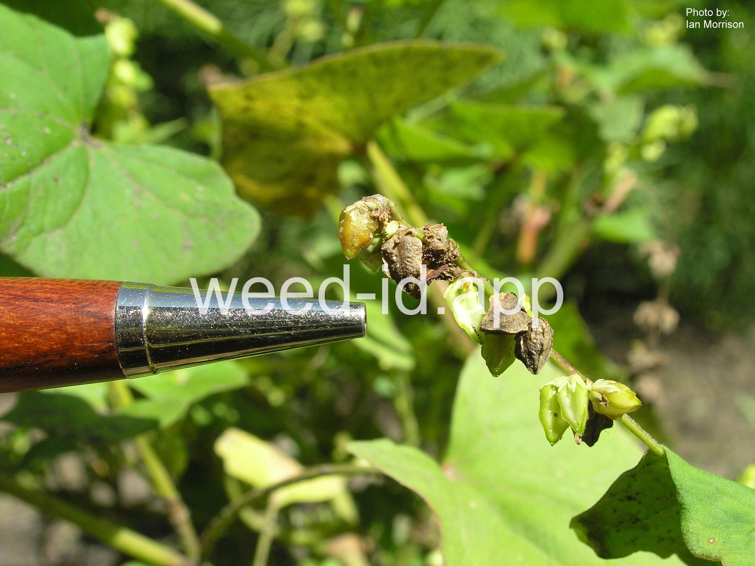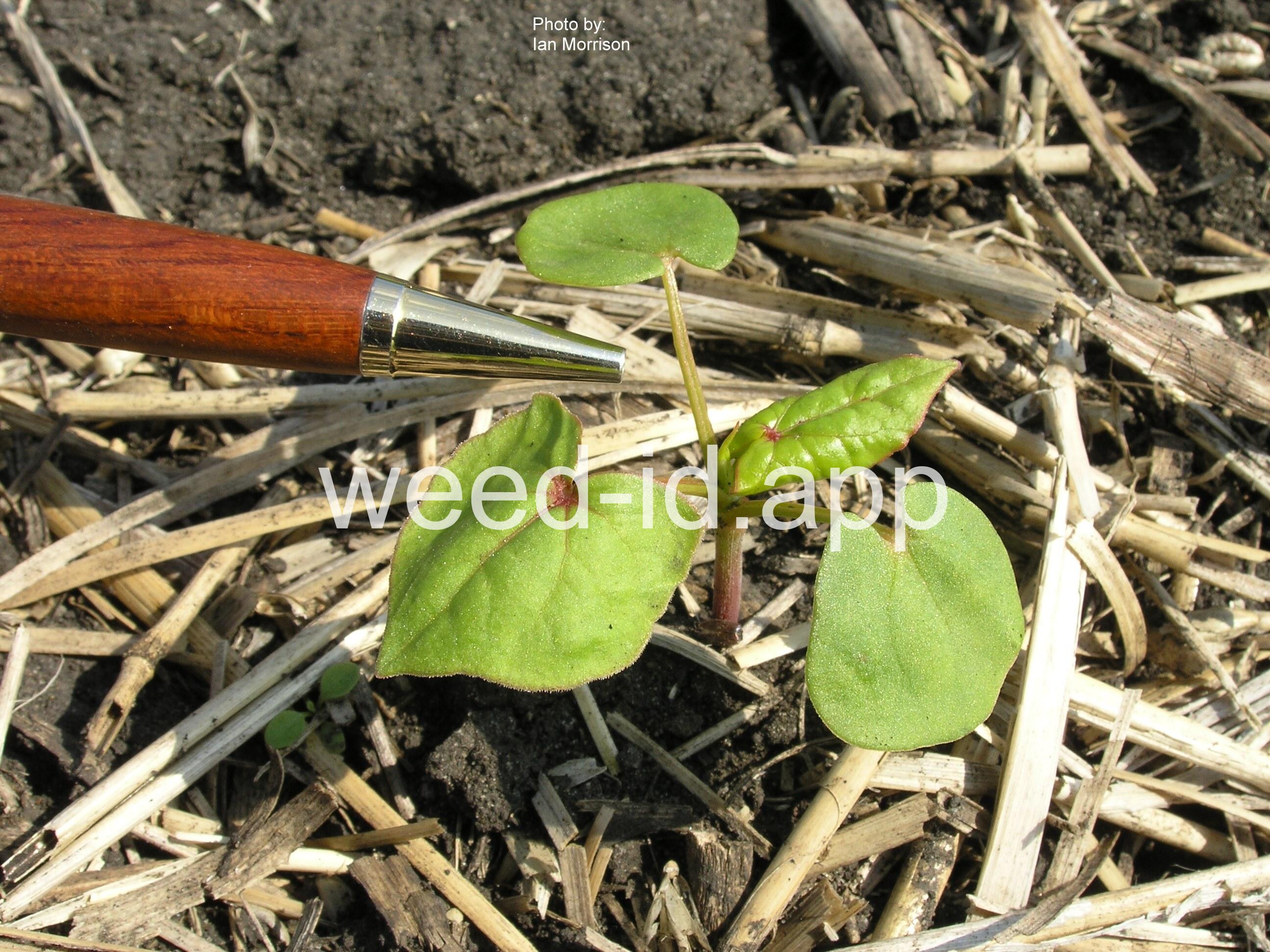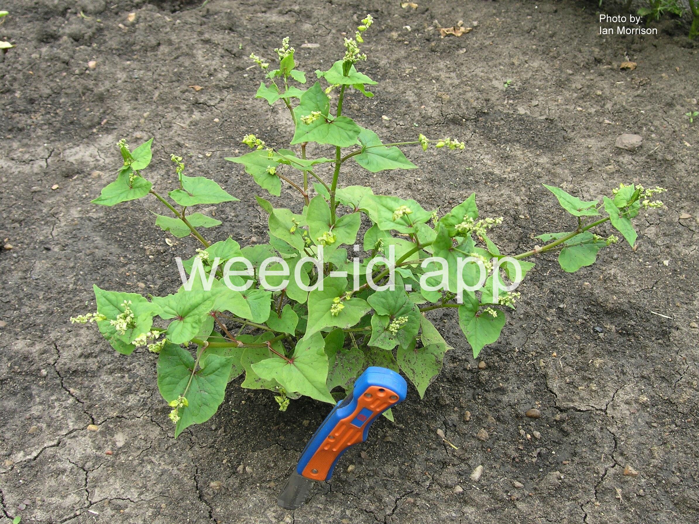 In general appearance similar to Polygonum convolvulus (wild buckwheat) but not vining in habit. The three-angled seed not clasped by the sepals.