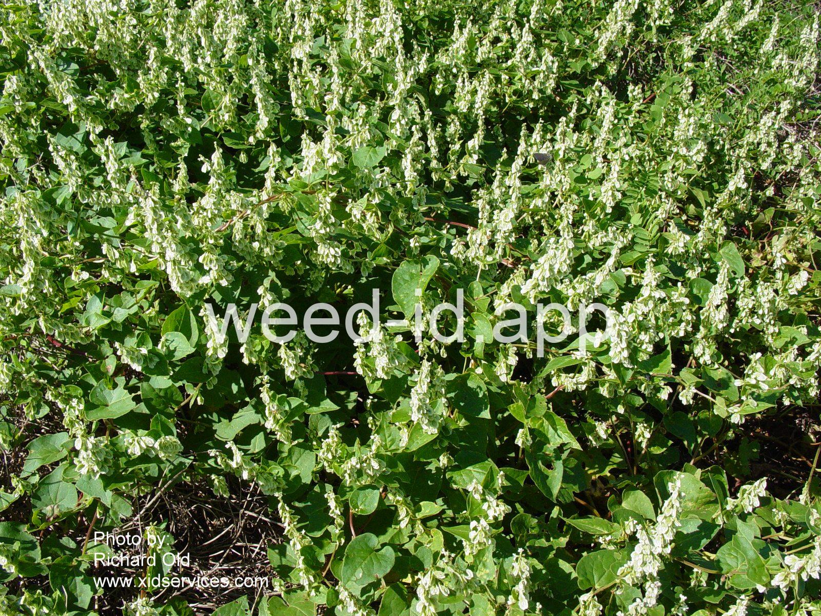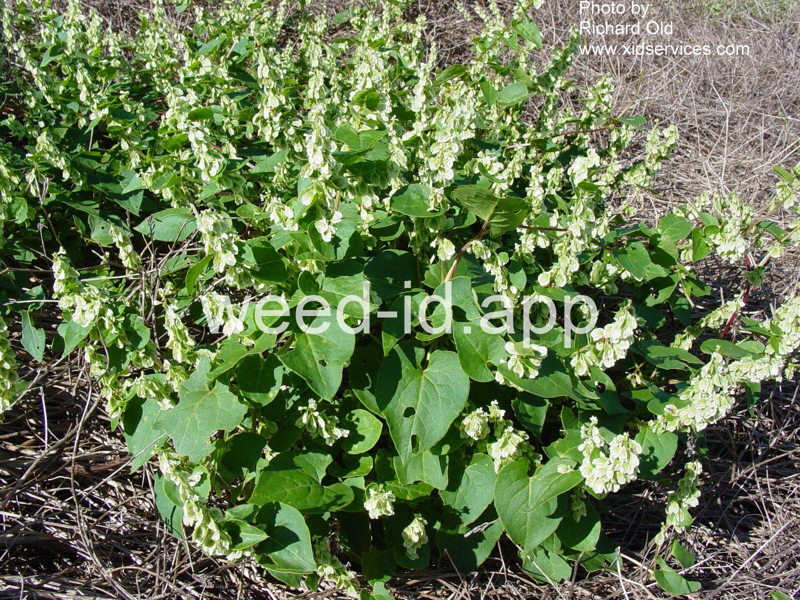 Climbing vine. Fruits winged at maturity, stems angular, leaves prominently cordate at the base.. Also known as climbing false buckwheat.