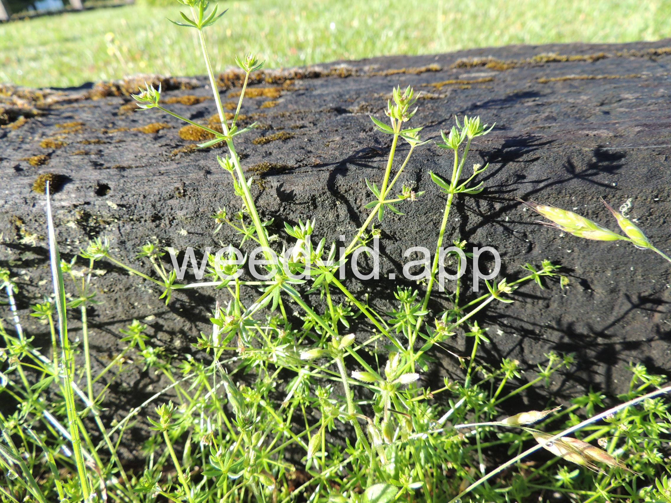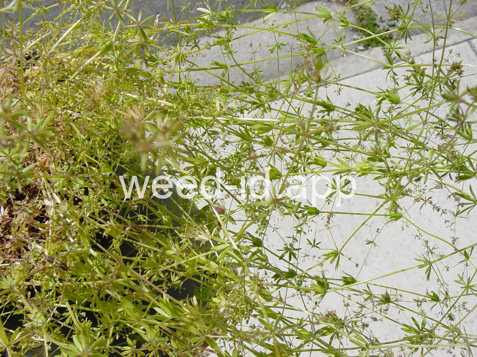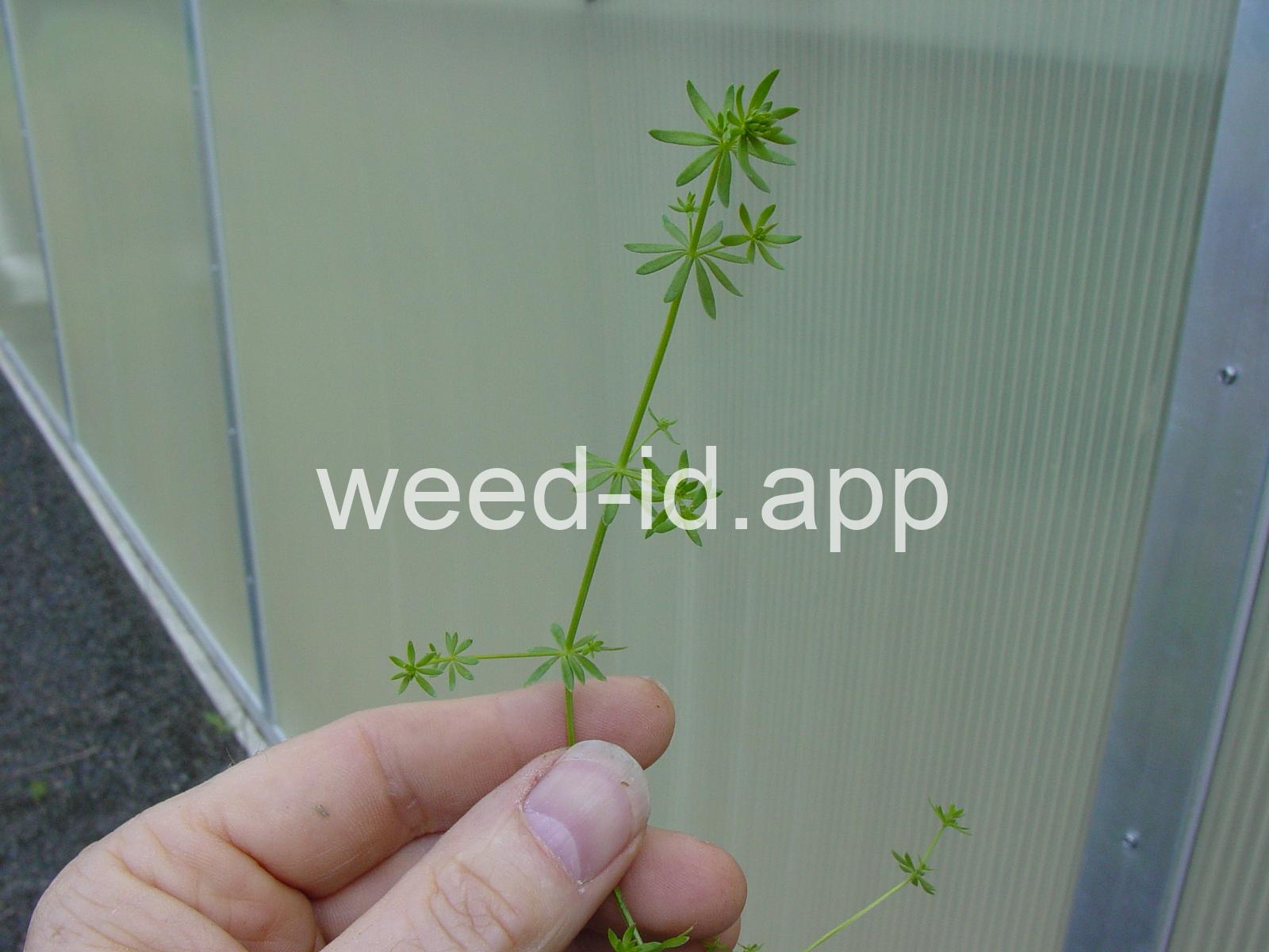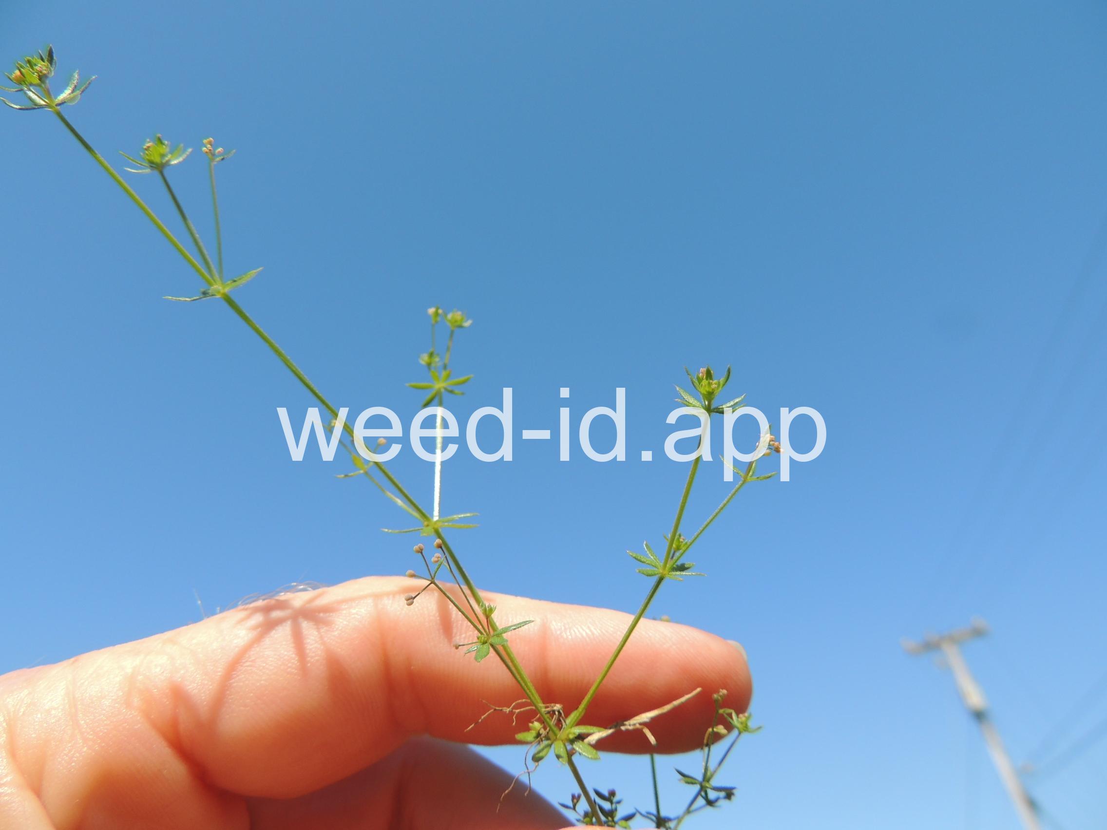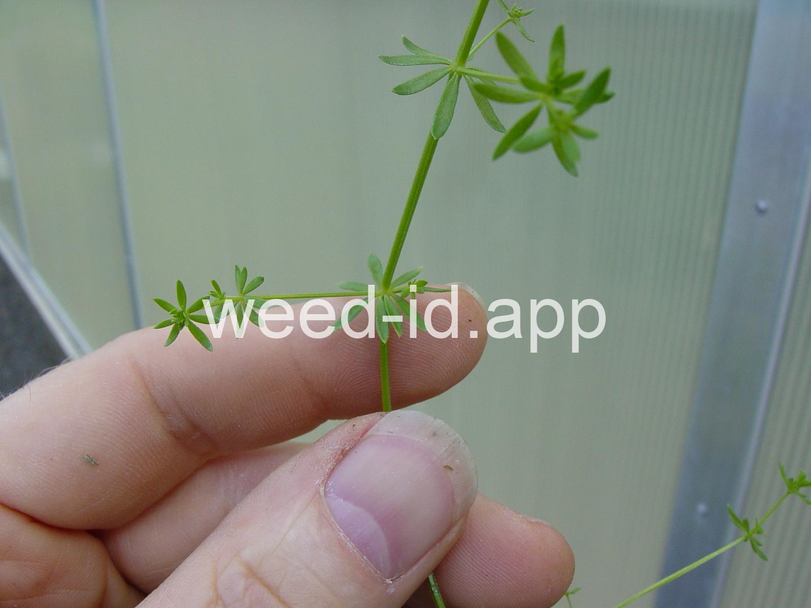 Very similar to Galium aparine (catchweed bedstraw) but more diminutive in most features. The flowers greenish and the fruits granular - roughened.