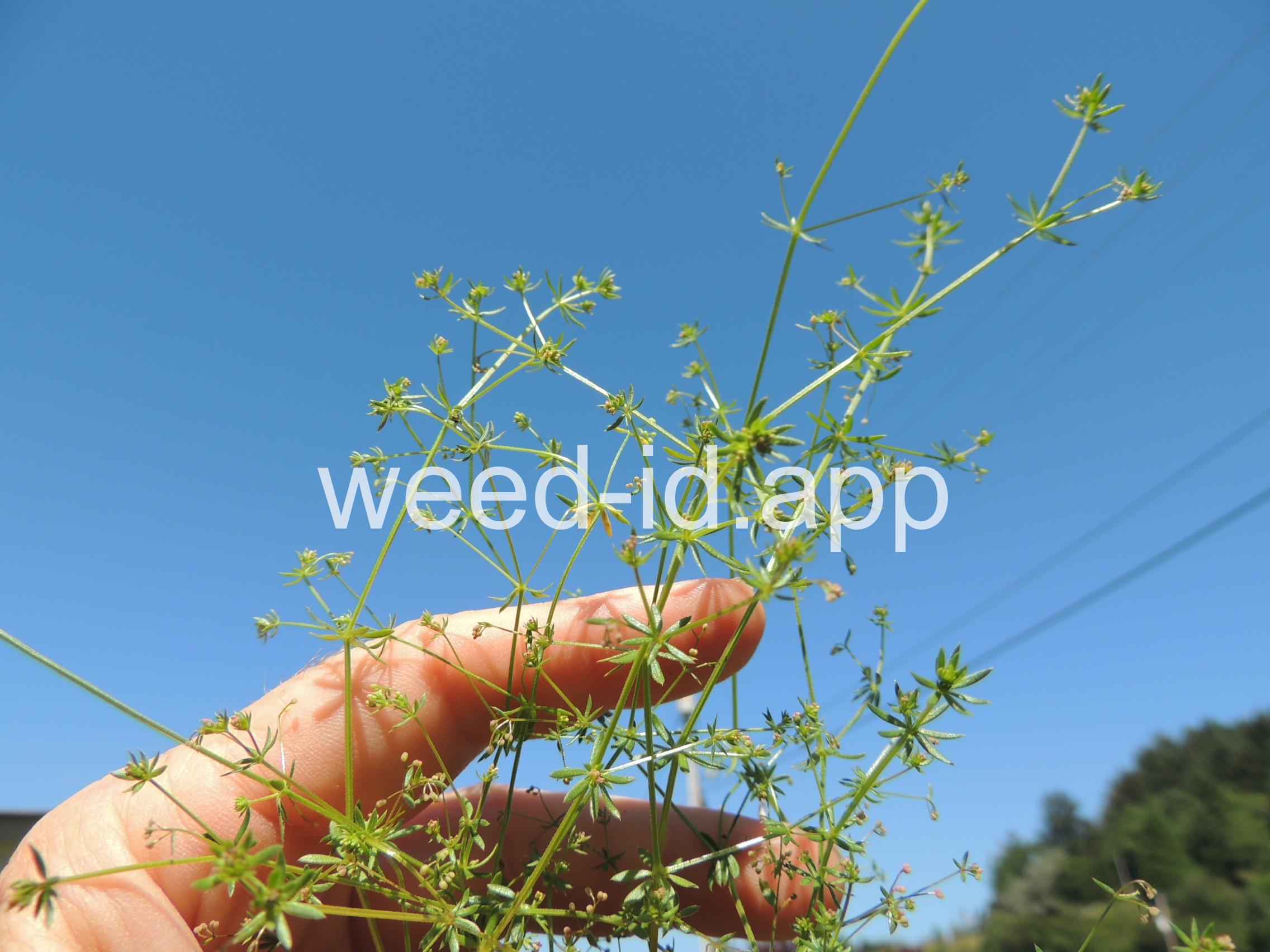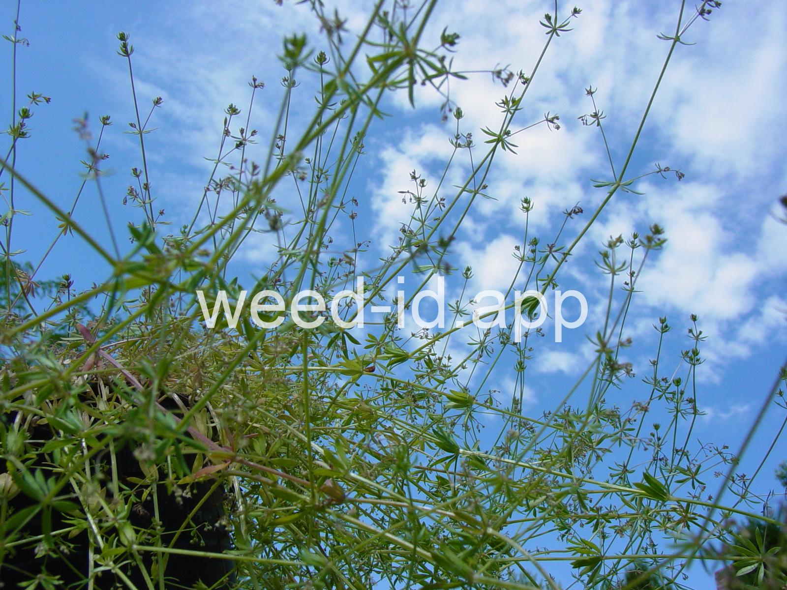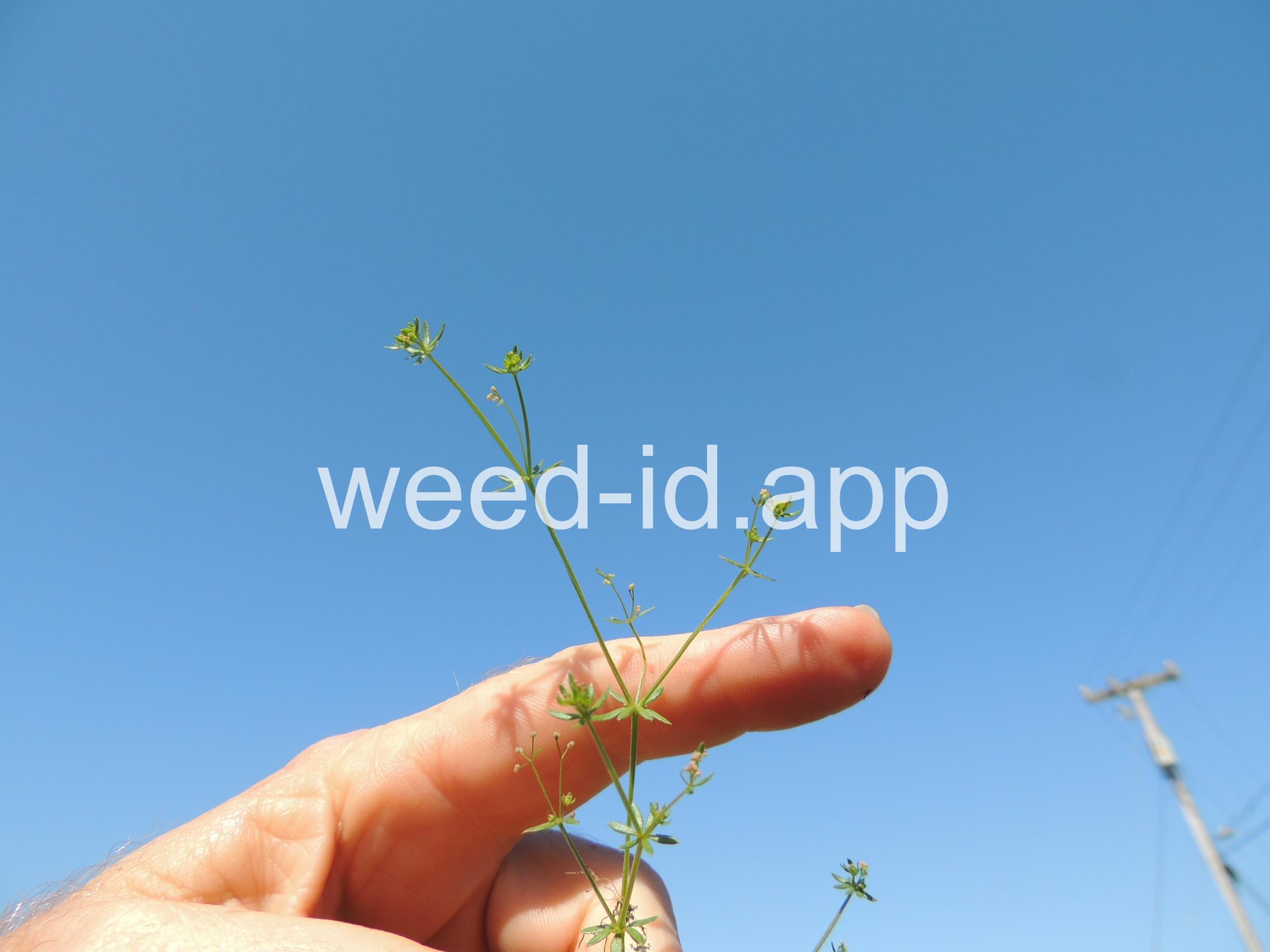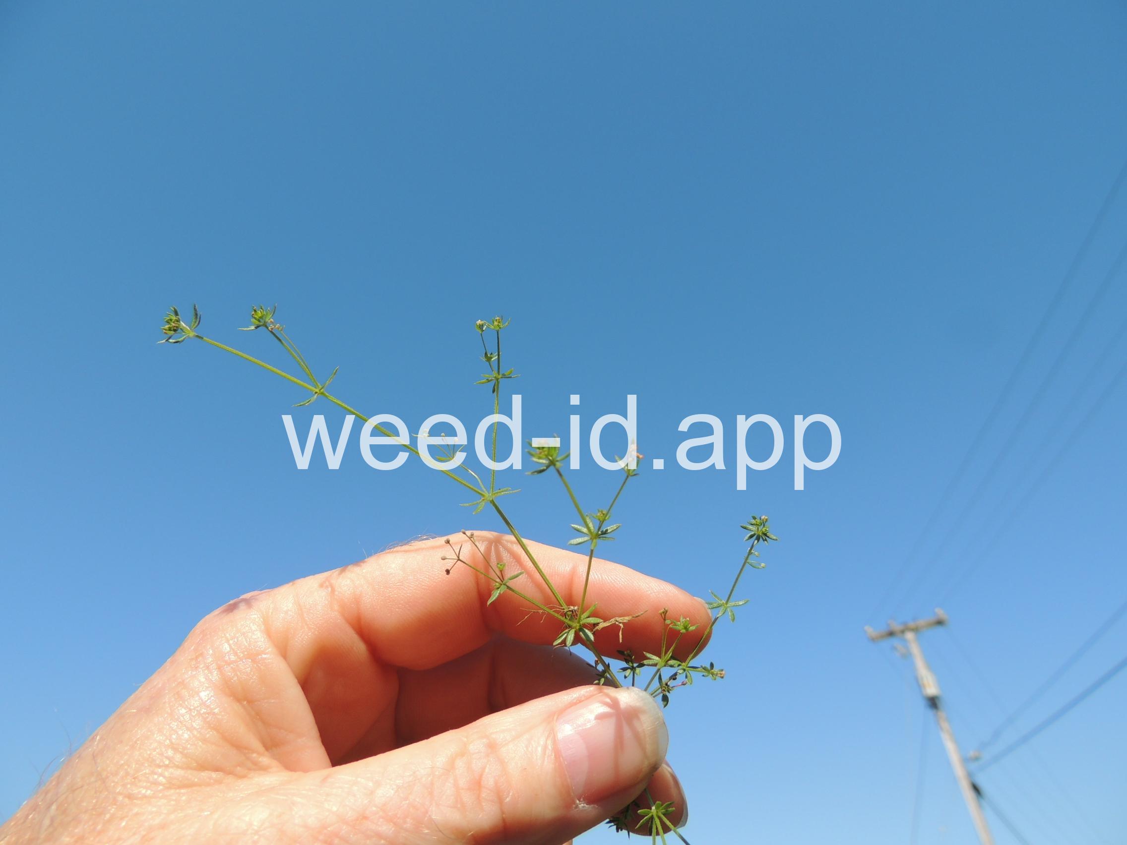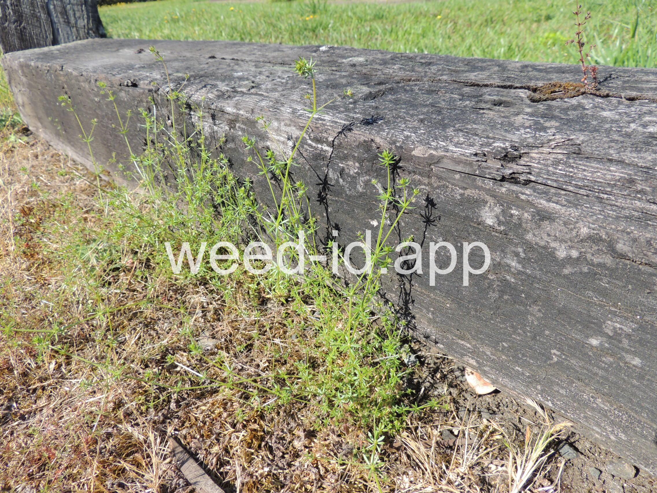 Very similar to Galium aparine (catchweed bedstraw) but more diminutive in most features. The flowers greenish and the fruits granular - roughened.