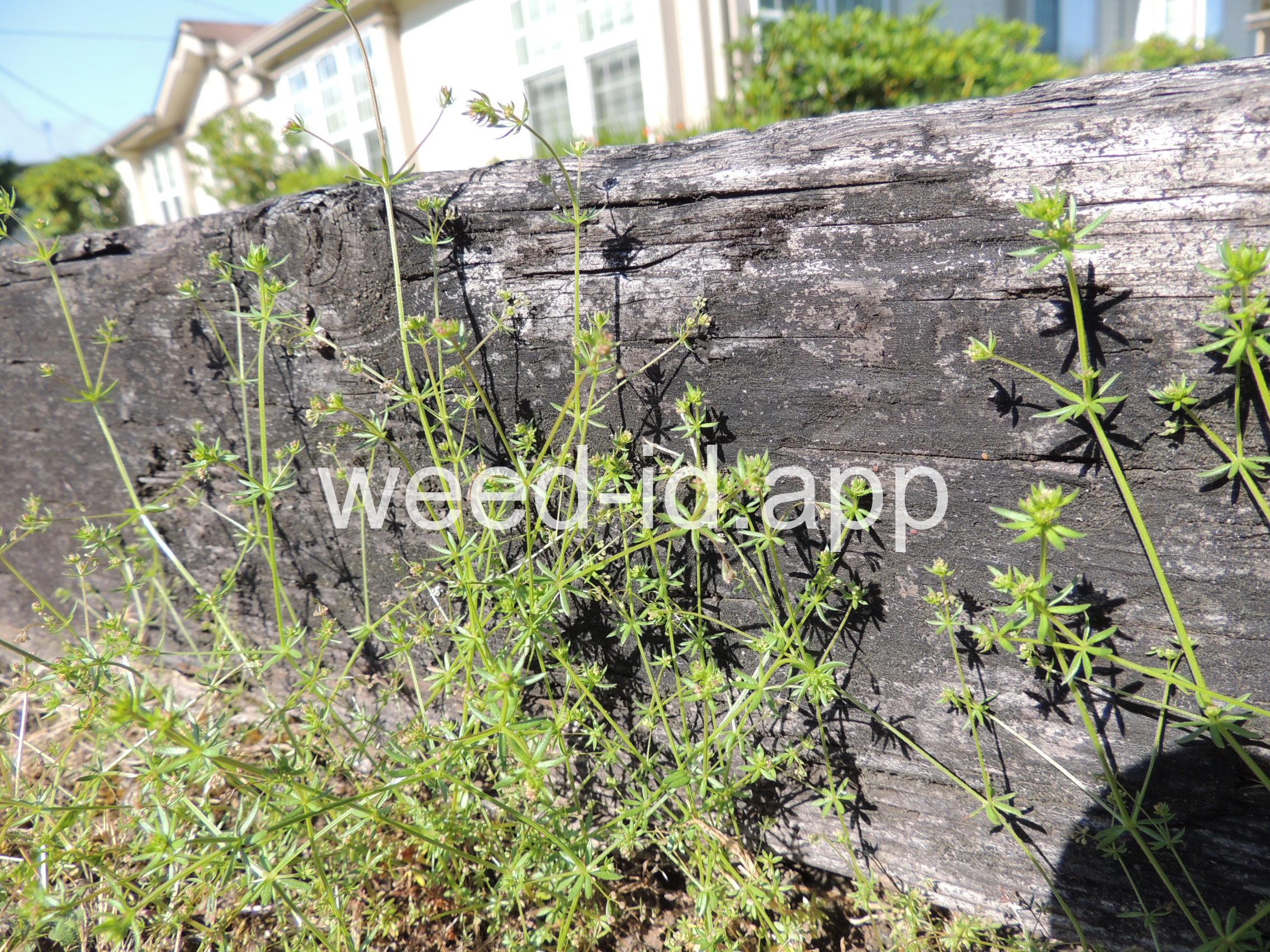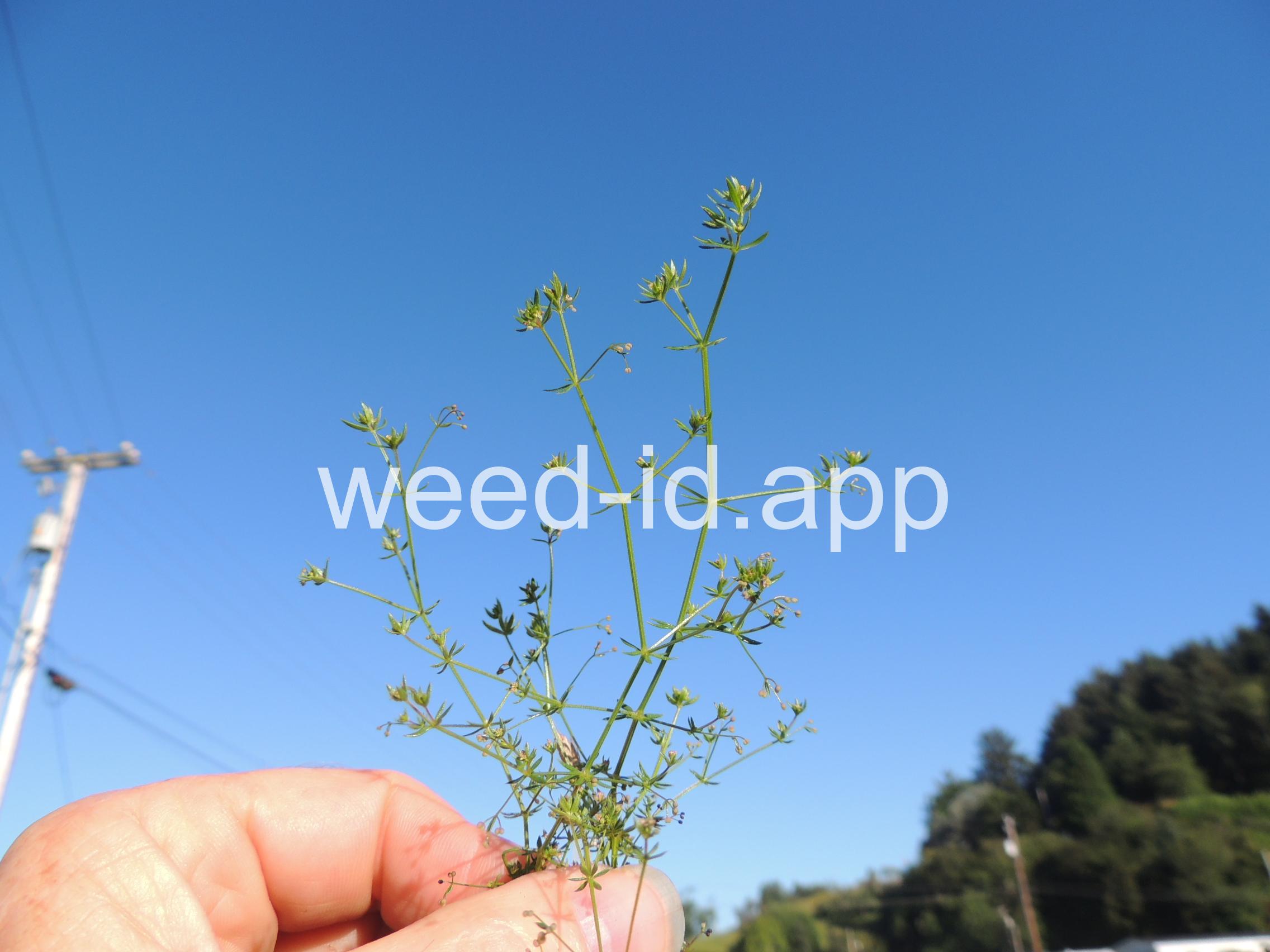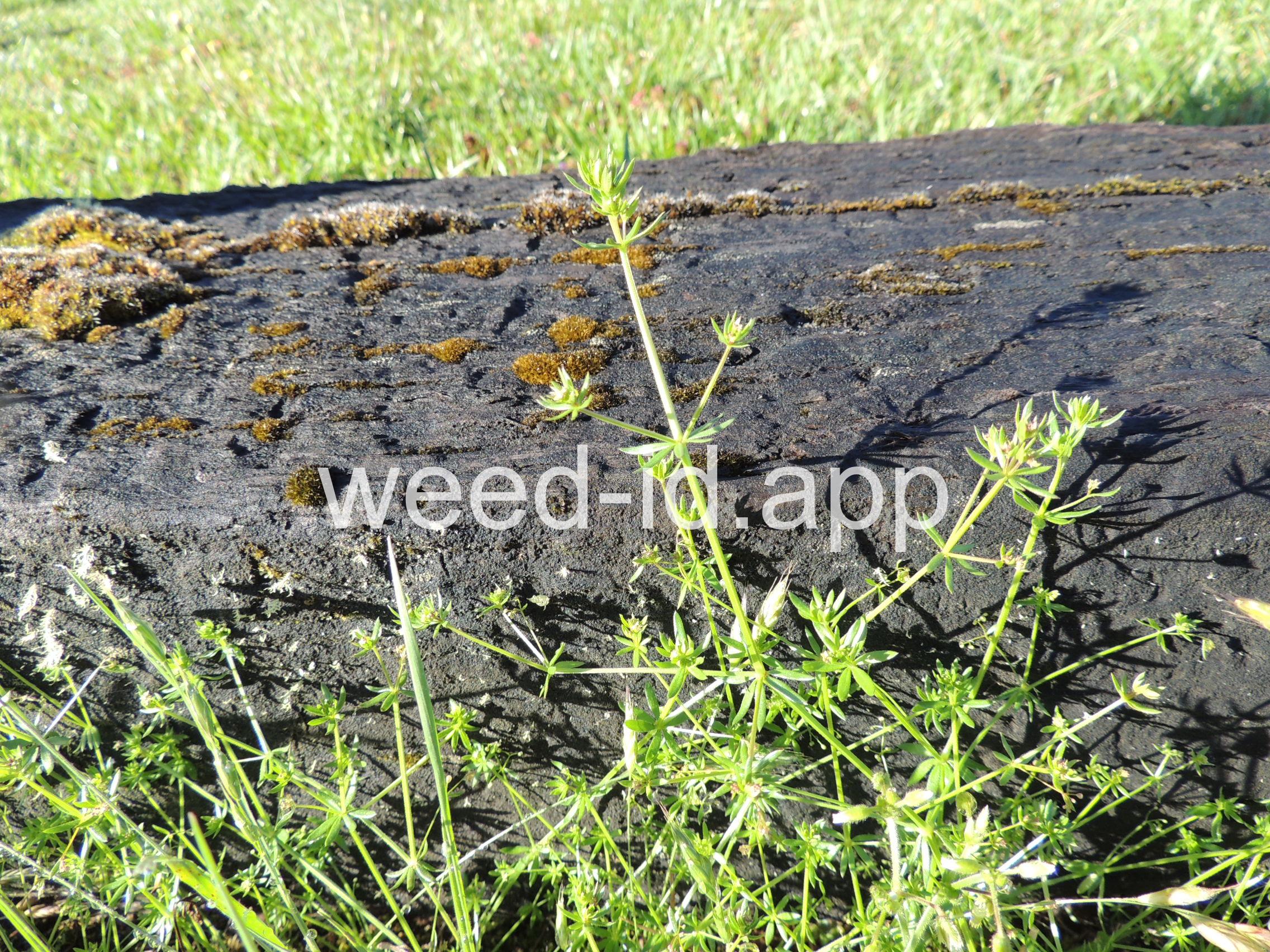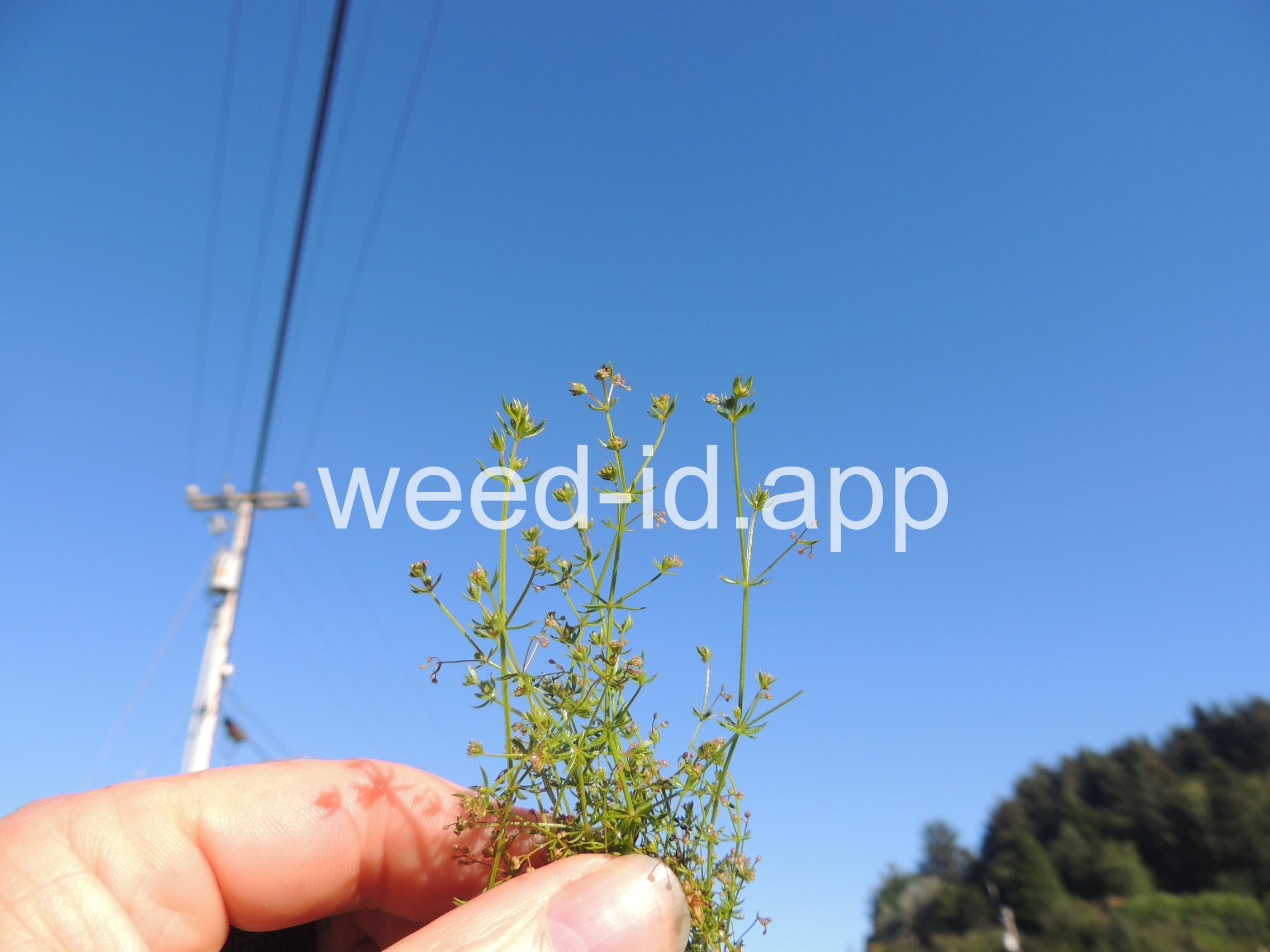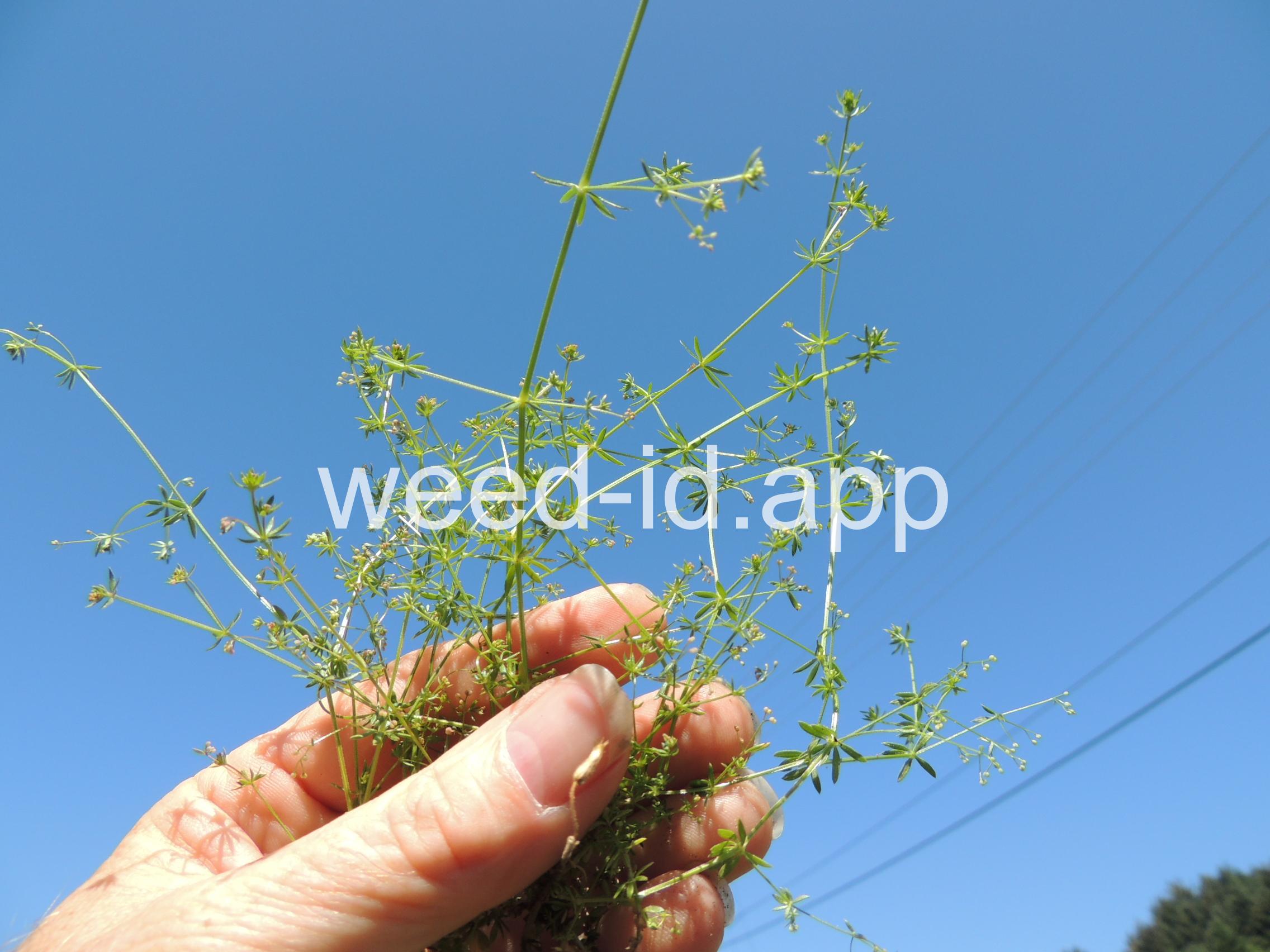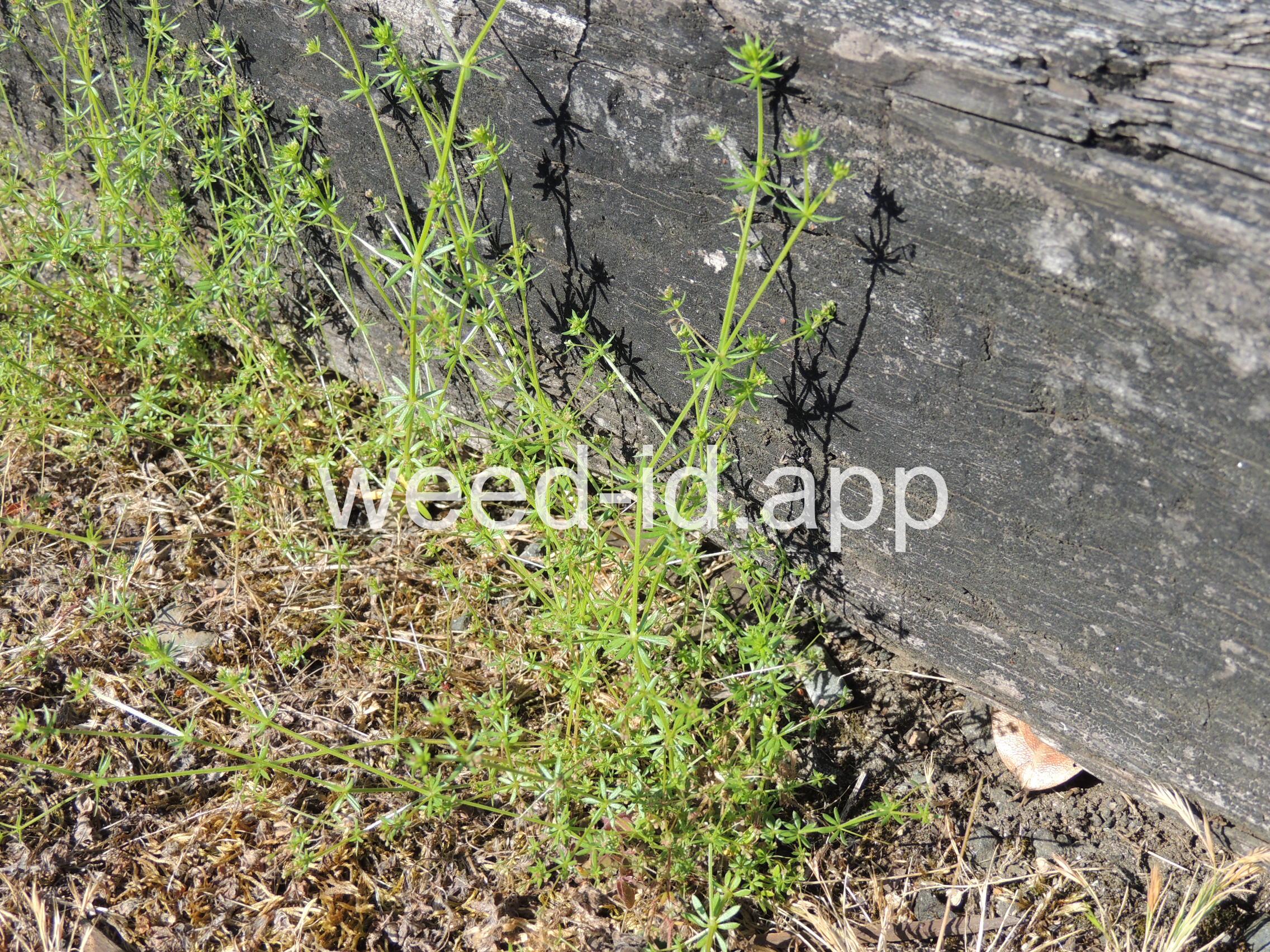 Very similar to Galium aparine (catchweed bedstraw) but more diminutive in most features. The flowers greenish and the fruits granular - roughened.