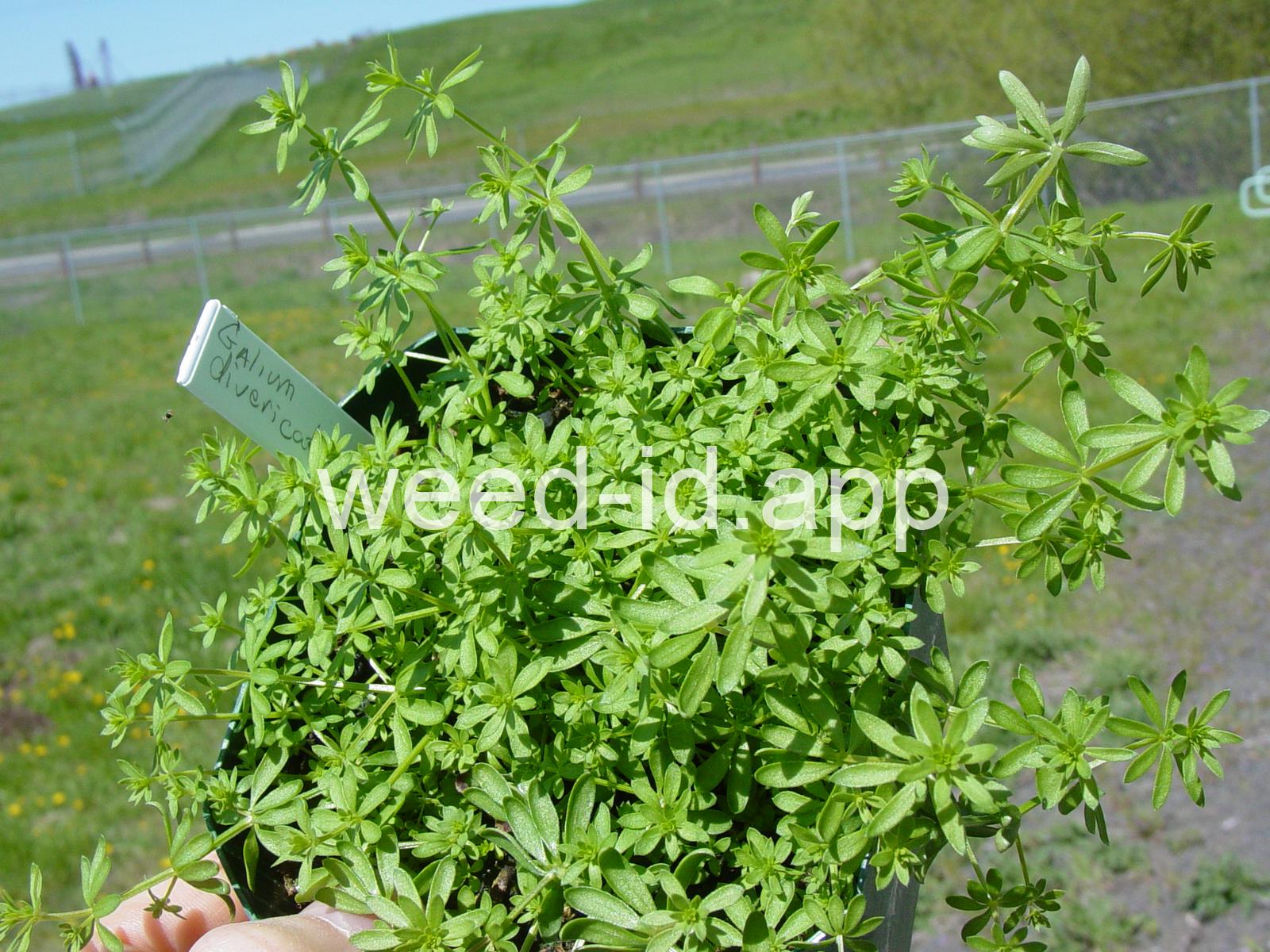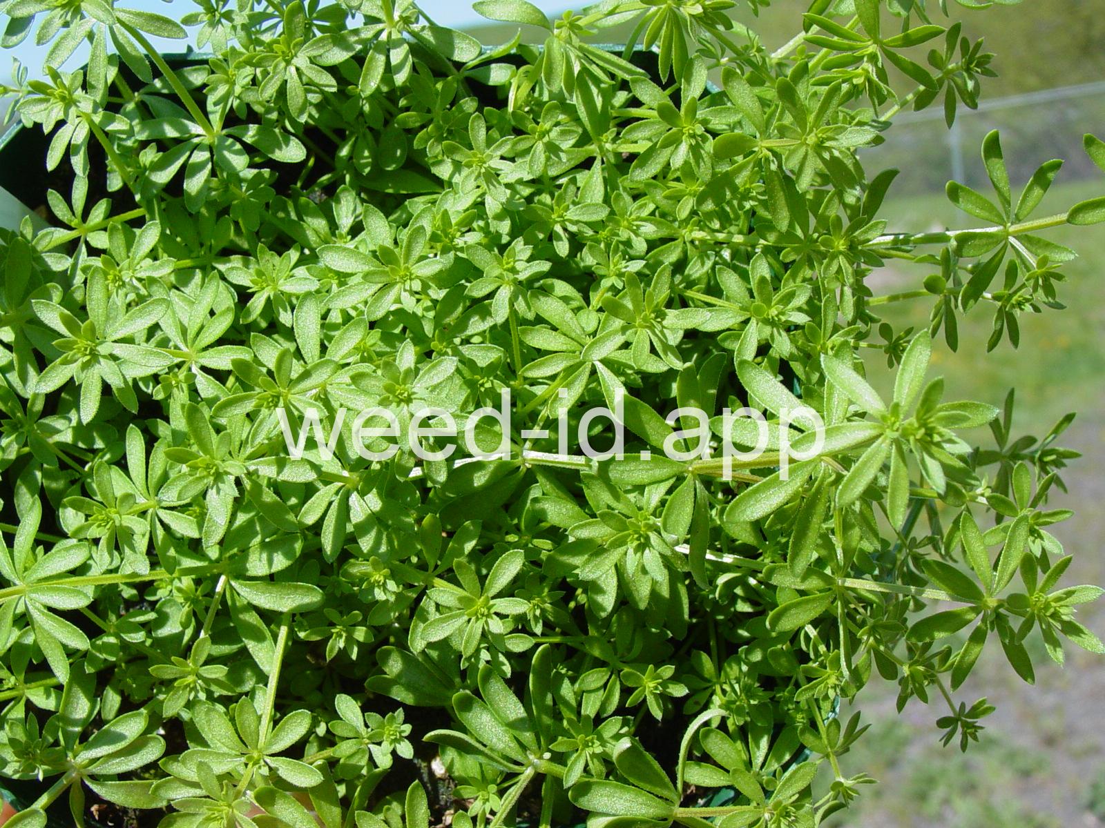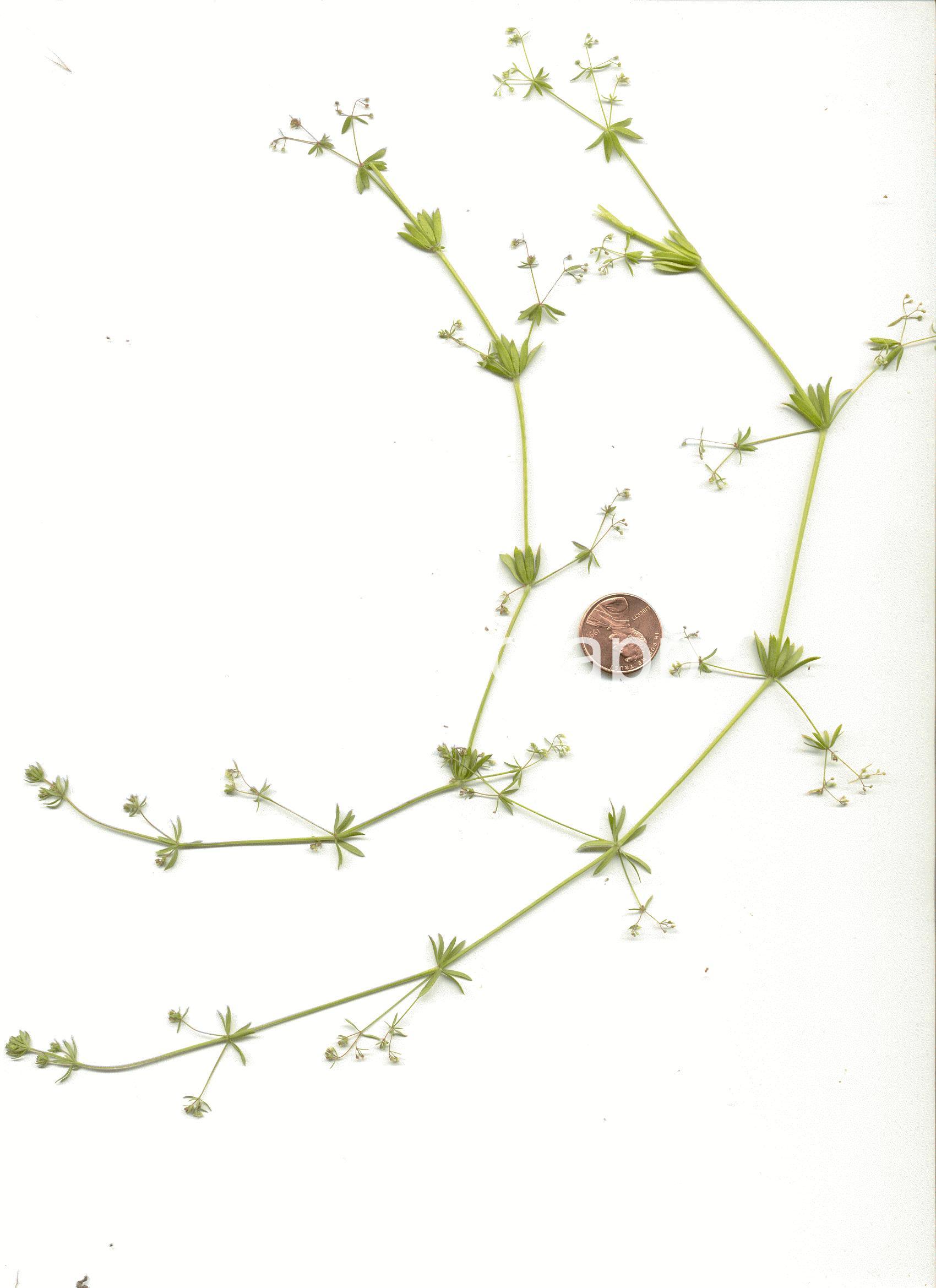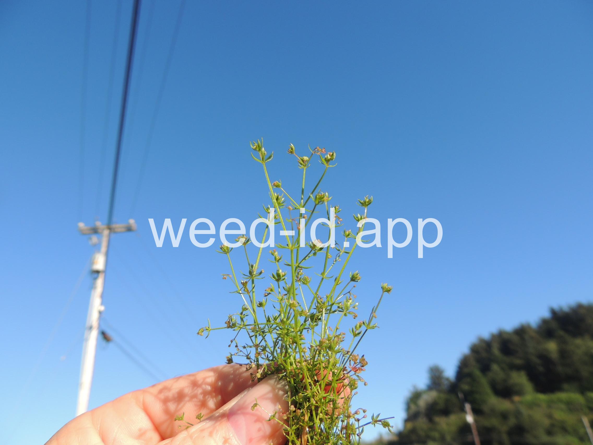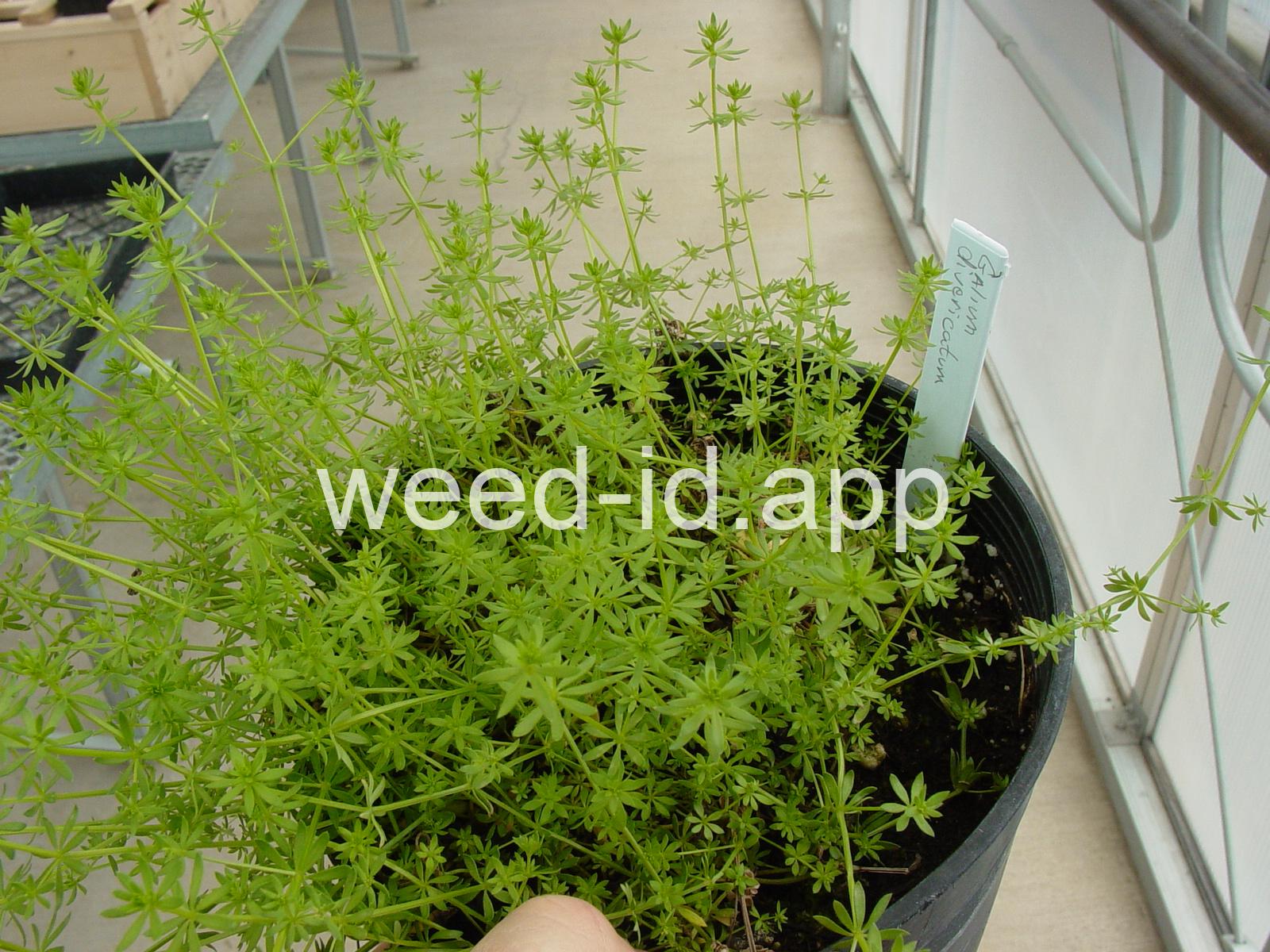 Very similar to Galium aparine (catchweed bedstraw) but more diminutive in most features. The flowers greenish and the fruits granular - roughened.