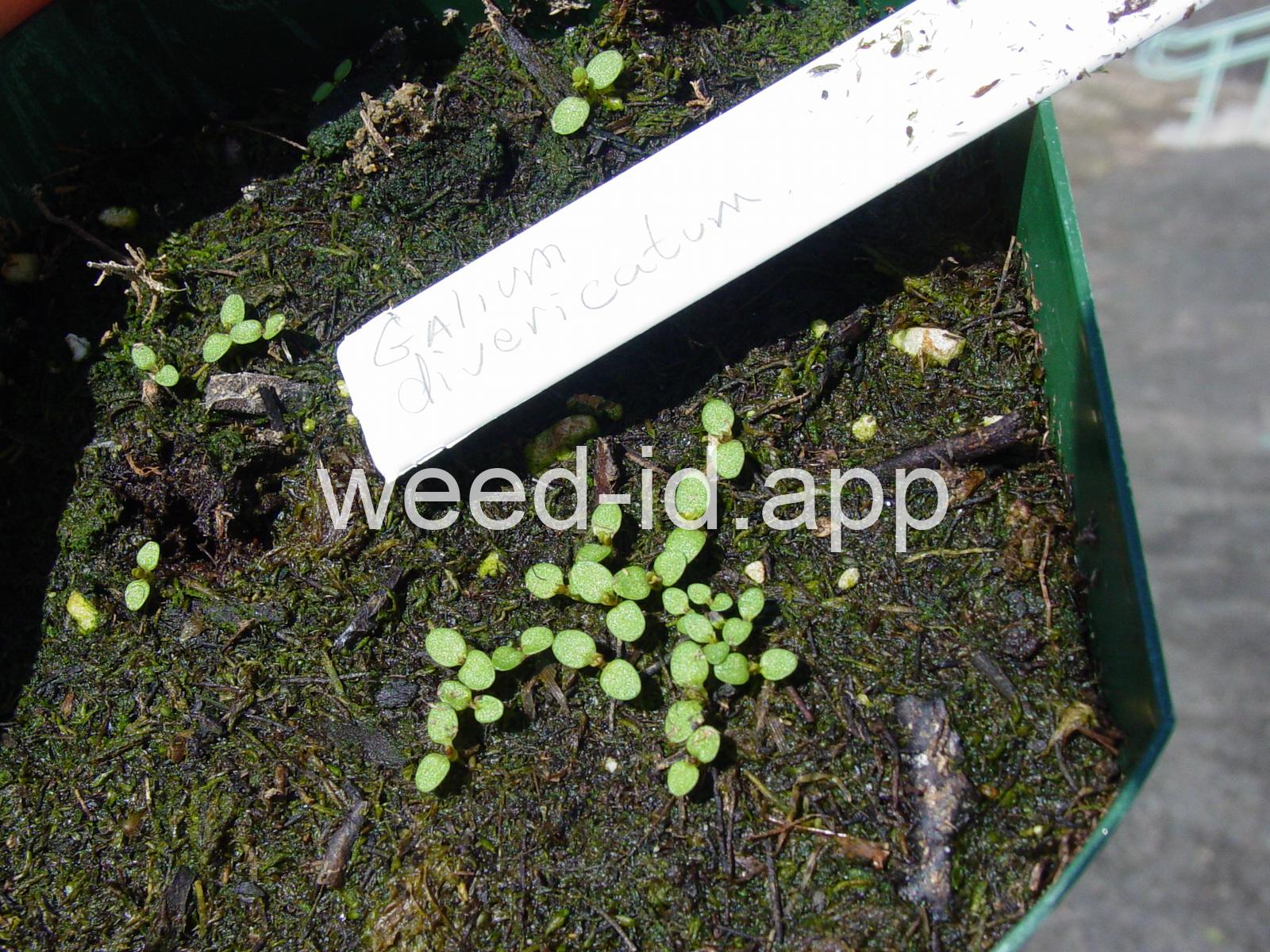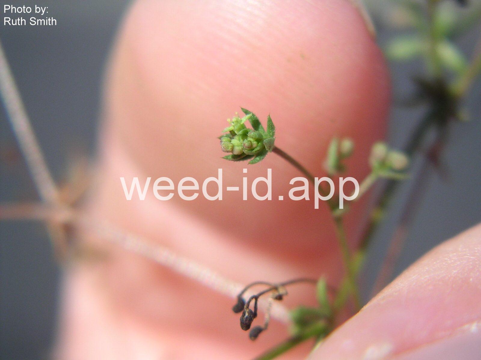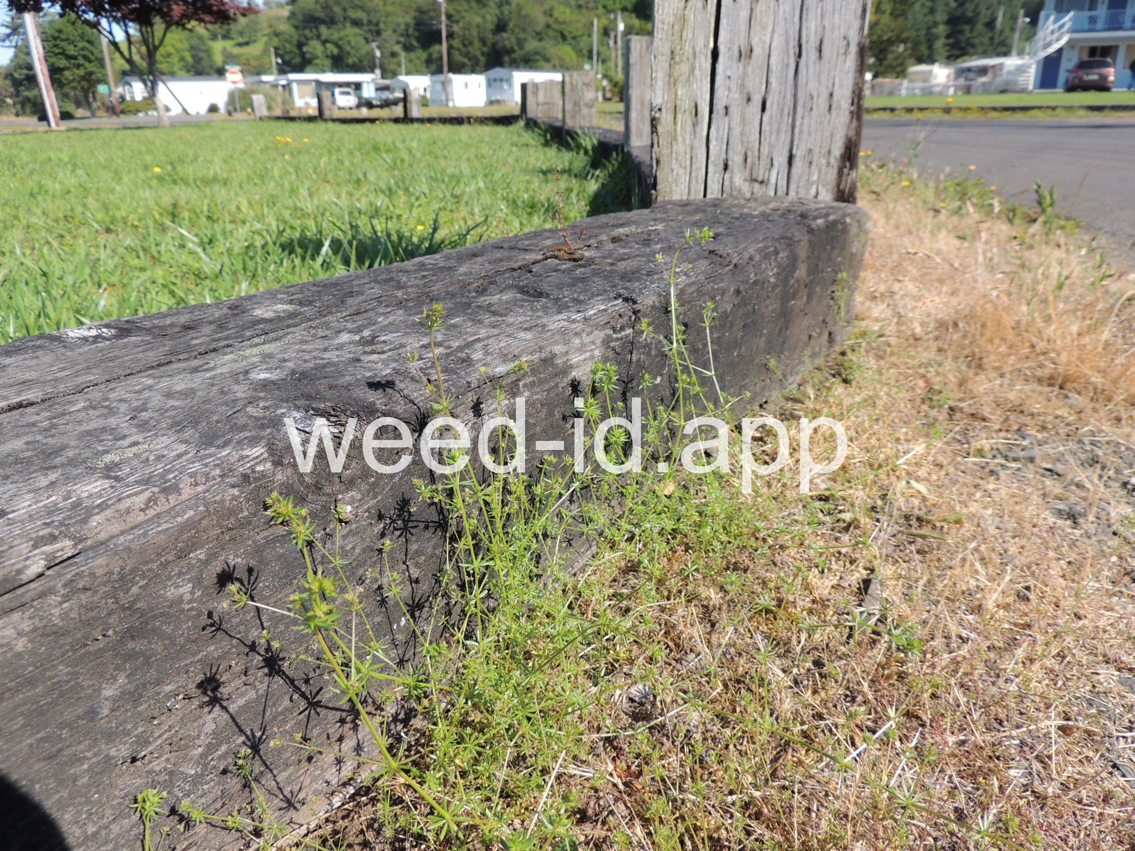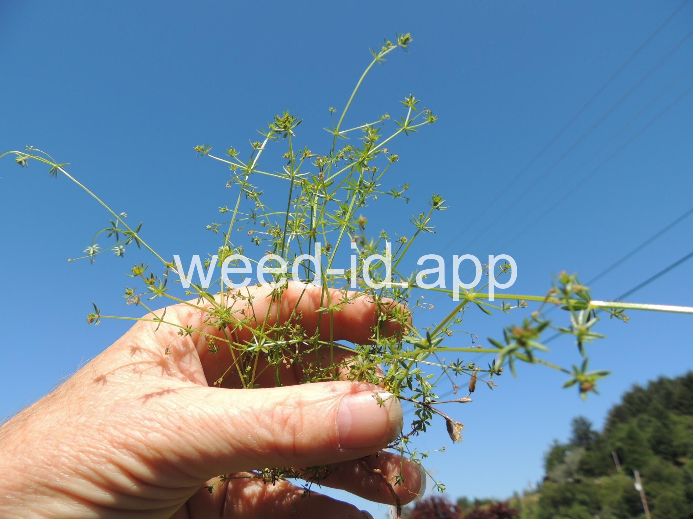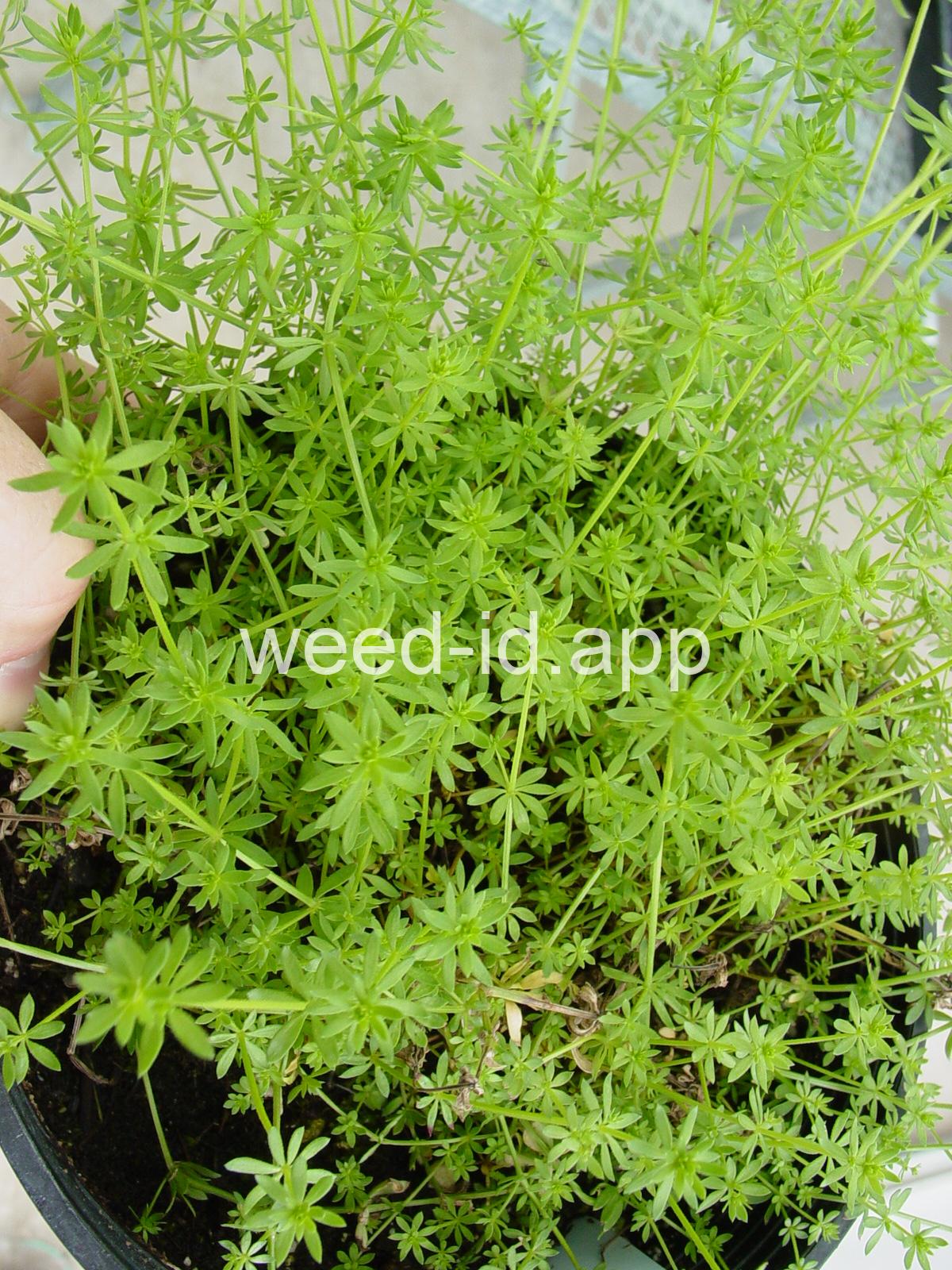 Very similar to Galium aparine (catchweed bedstraw) but more diminutive in most features. The flowers greenish and the fruits granular - roughened.