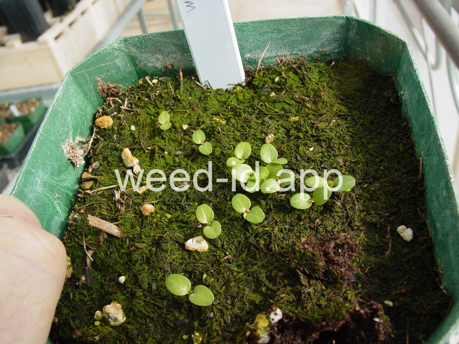 A rhizomatous perennial occurring in the eastern and western United States but currently rare or absent from the Great Plains. The fruits are roughened but not bur-like. The tiny white flowers have 4 pointed petals and the leaves are 6 - 8 per whorl.