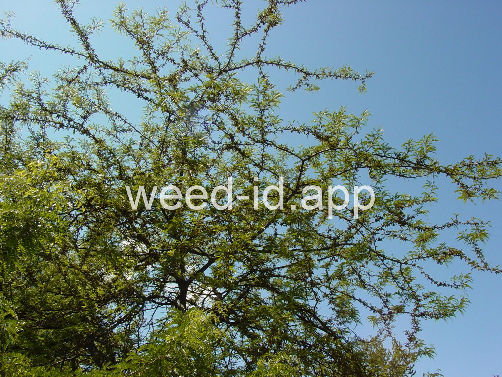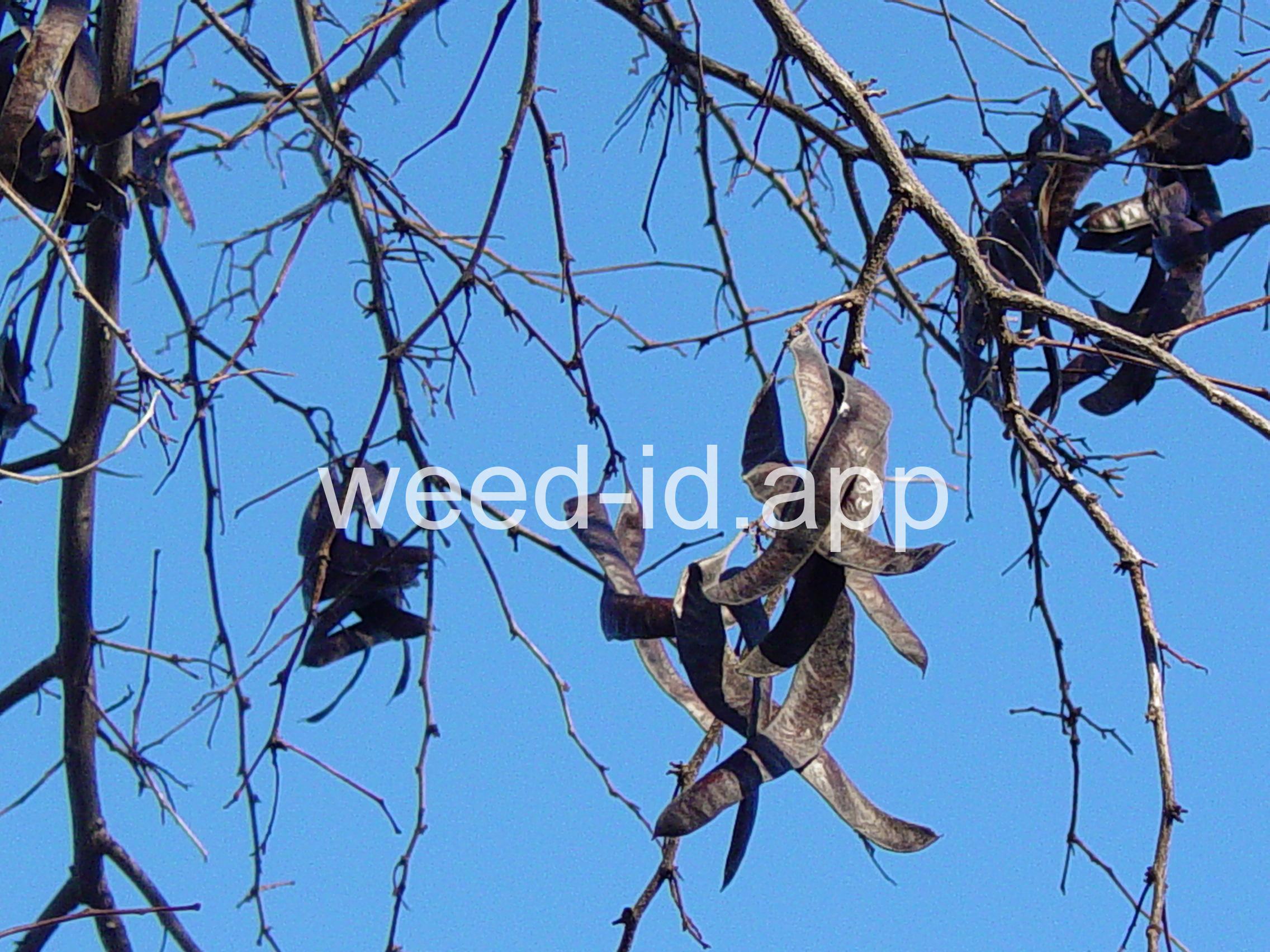 Tree, often with impressive 4-inch long, branched spines covering the trunk. An unarmed variety is grown as a horticultural variety. Pods as much as a foot long and twisted at maturity.