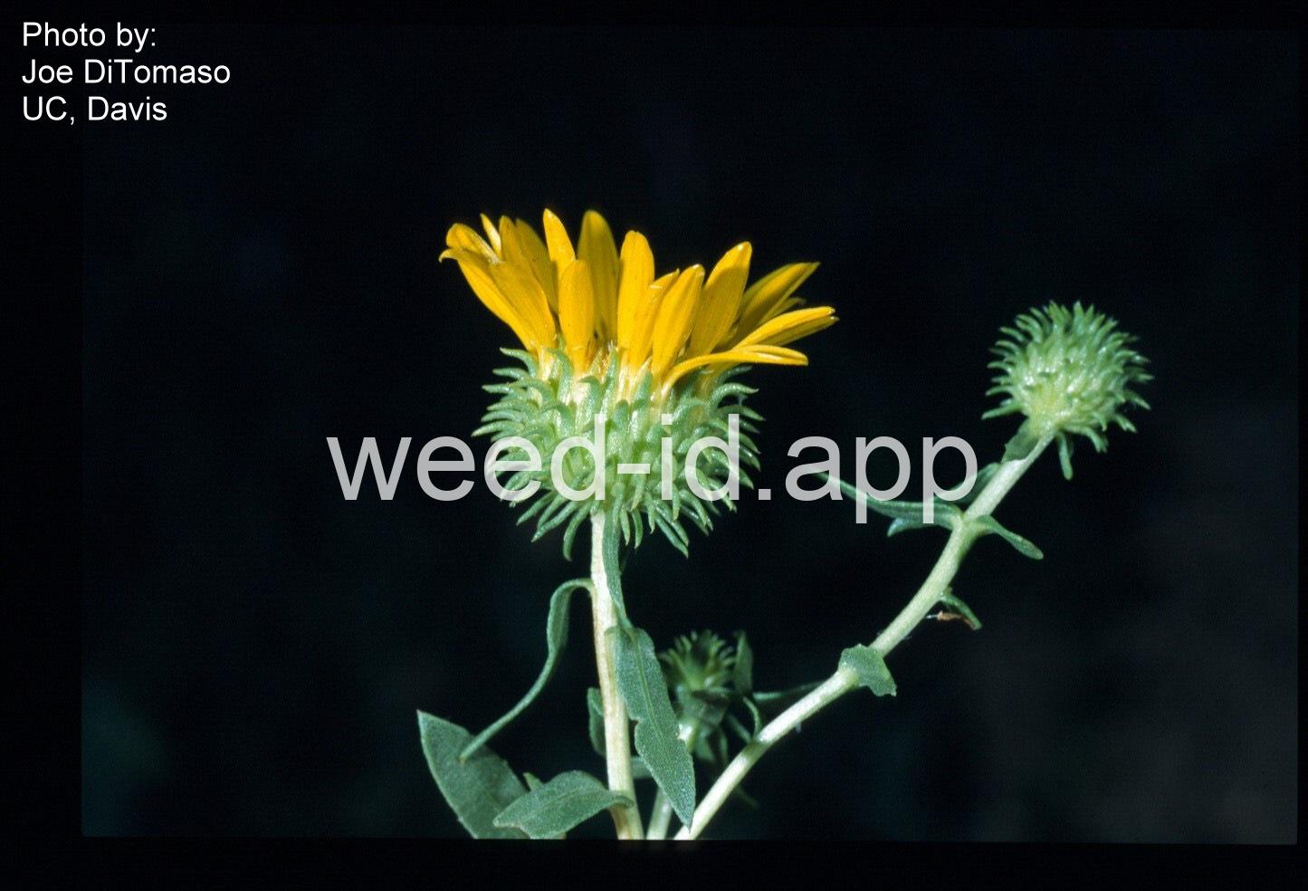 The gumweeds can be distinguished by their heads of yellow flowers surrounded by down-turned, sticky (gummy) bracts. The leaves are entire and finely serrate.