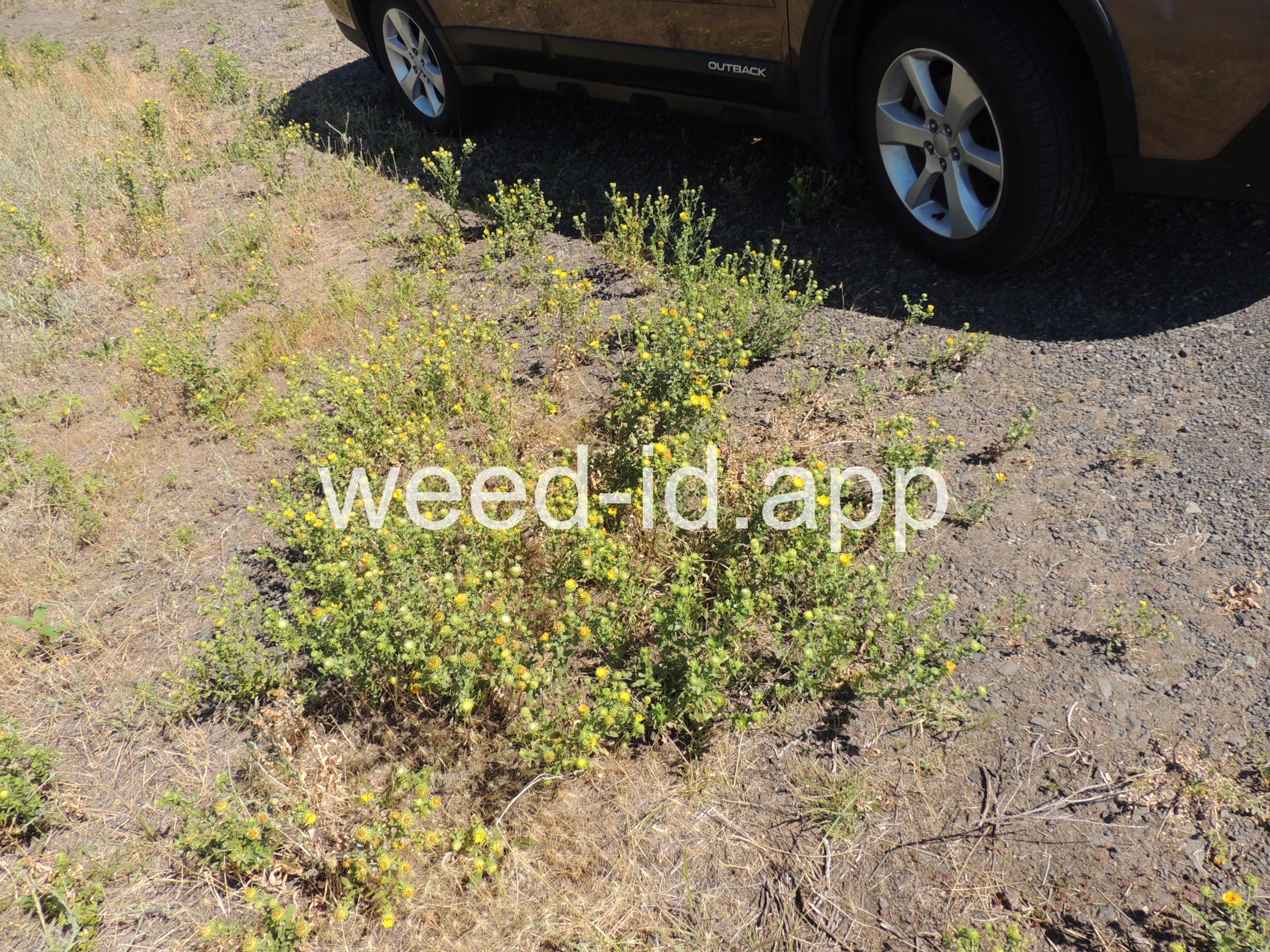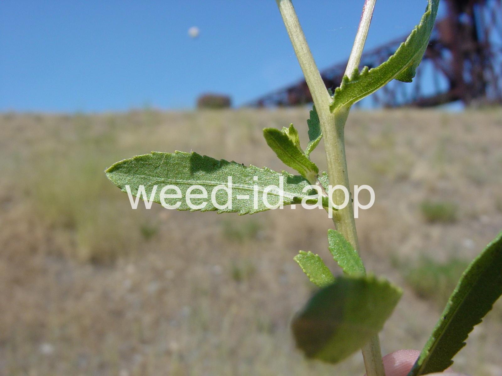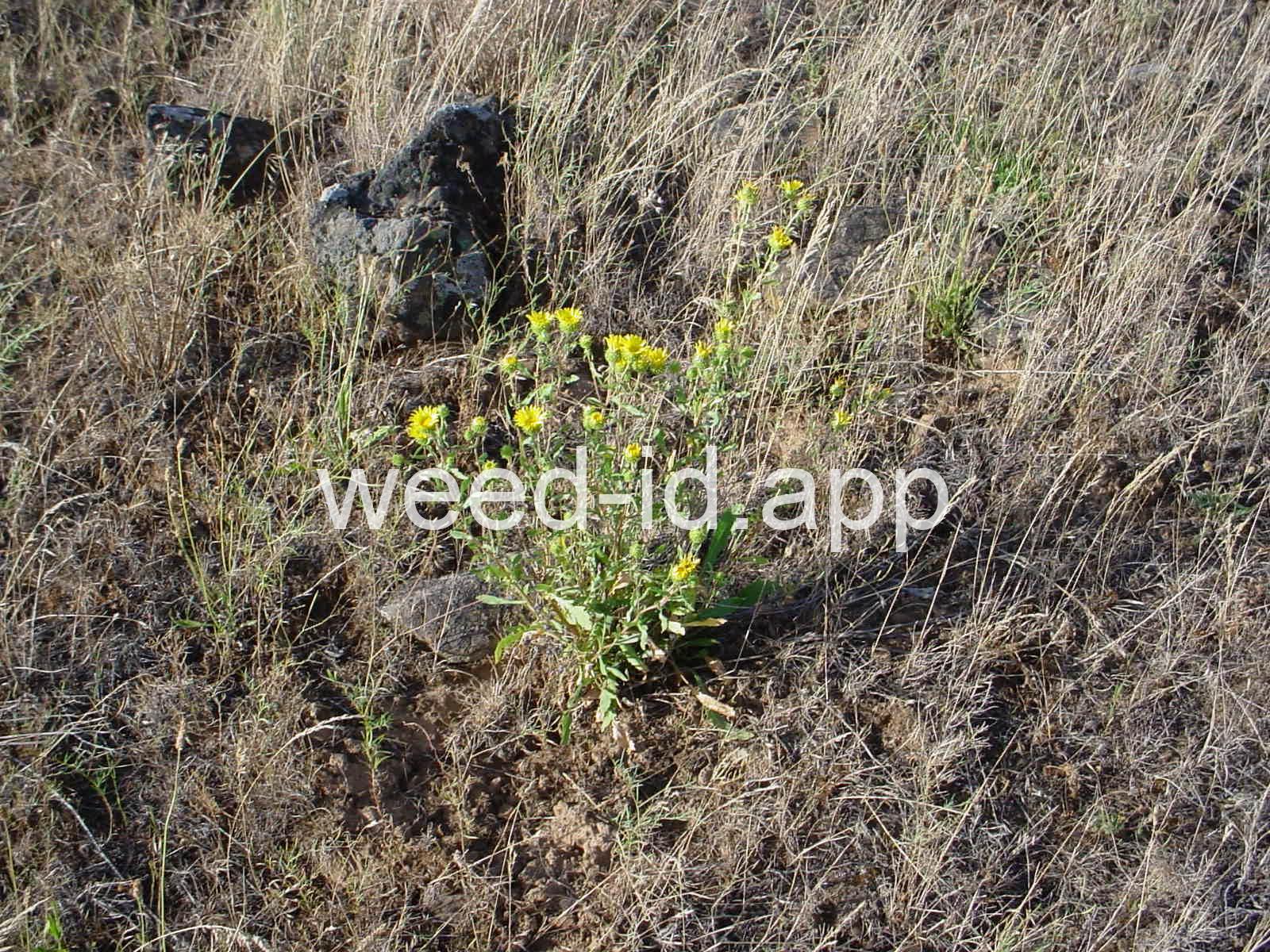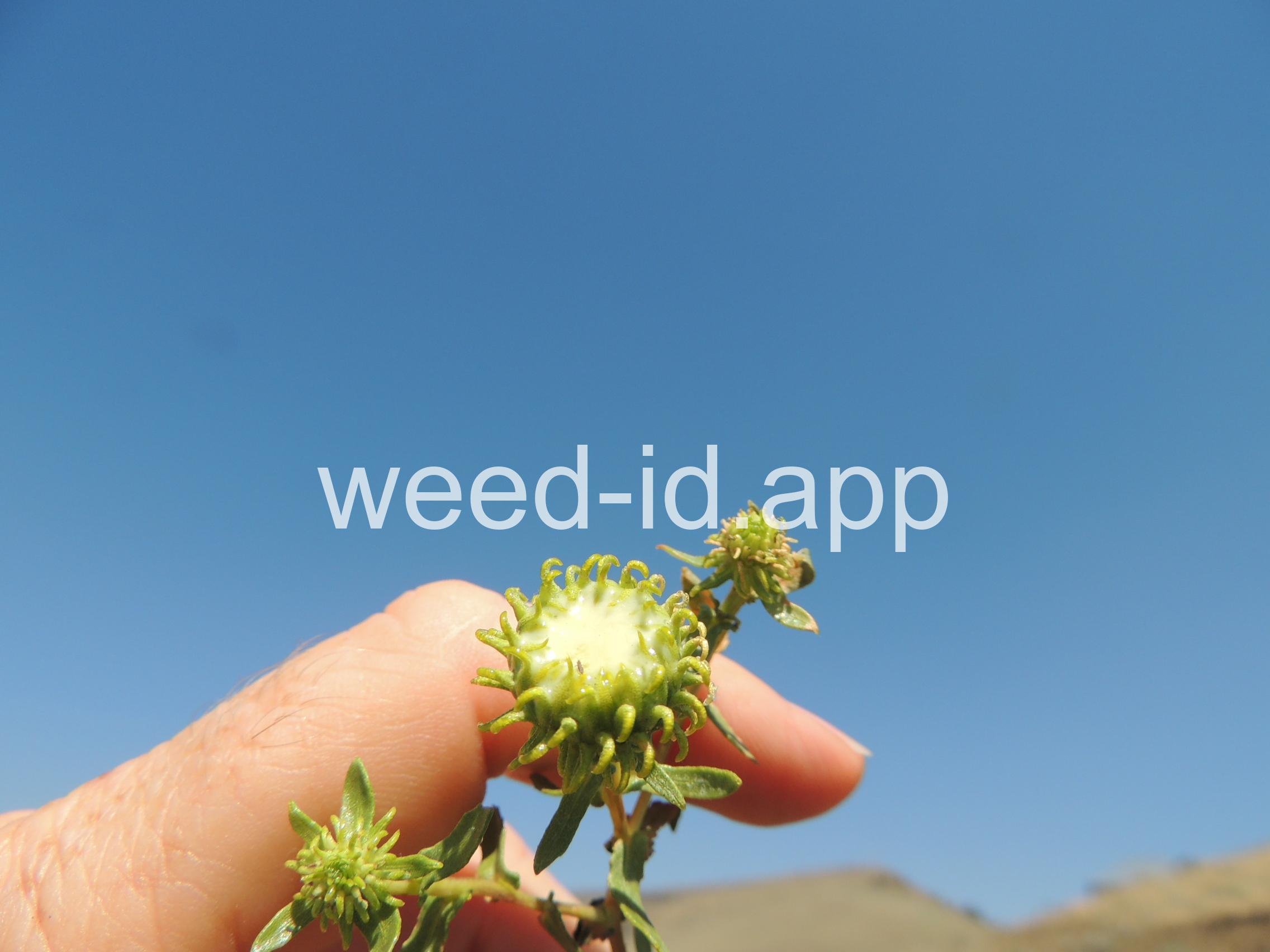 Both portions of the common name refer to the bracts beneath the yellow flower heads. The common name is `curlycup` because the bracts curl backwards around the cup-shaped base of the head, and `gumweed` due to the fact that they are covered with a sticky resin. The leaves are hairless and finely toothed.