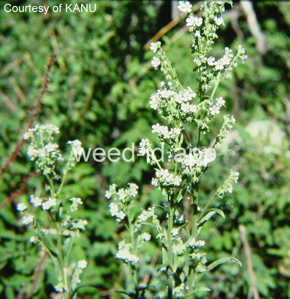 This is a native wildflower from the western edge of the Great Plains westward. The genus is very similar to the genus Lappula but can be distinguished by the fact that Lappula cymes are bracted for their entire length, and Hackelia cymes are only bracted near their base. The burs are particularly problematic for pets and livestock.