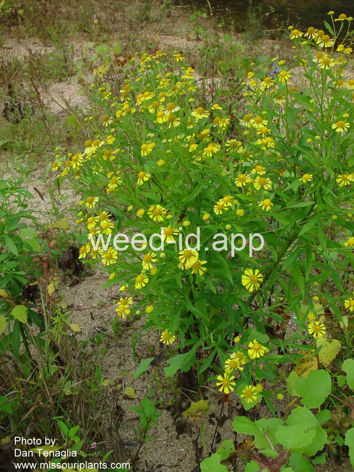 Both ray and disk flowers yellow; the center raised and rounded; the ray flowers with toothed tips. The leaf bases extending along the main stem as narrow wings. This species is commonly found along the margins of streams, often within the zone of fluctuation. It is reportedly toxic to all classes of livestock. For further information on this and other poisonous plants, see Poisonous Plants of the United States and Canada by Kingsbury.