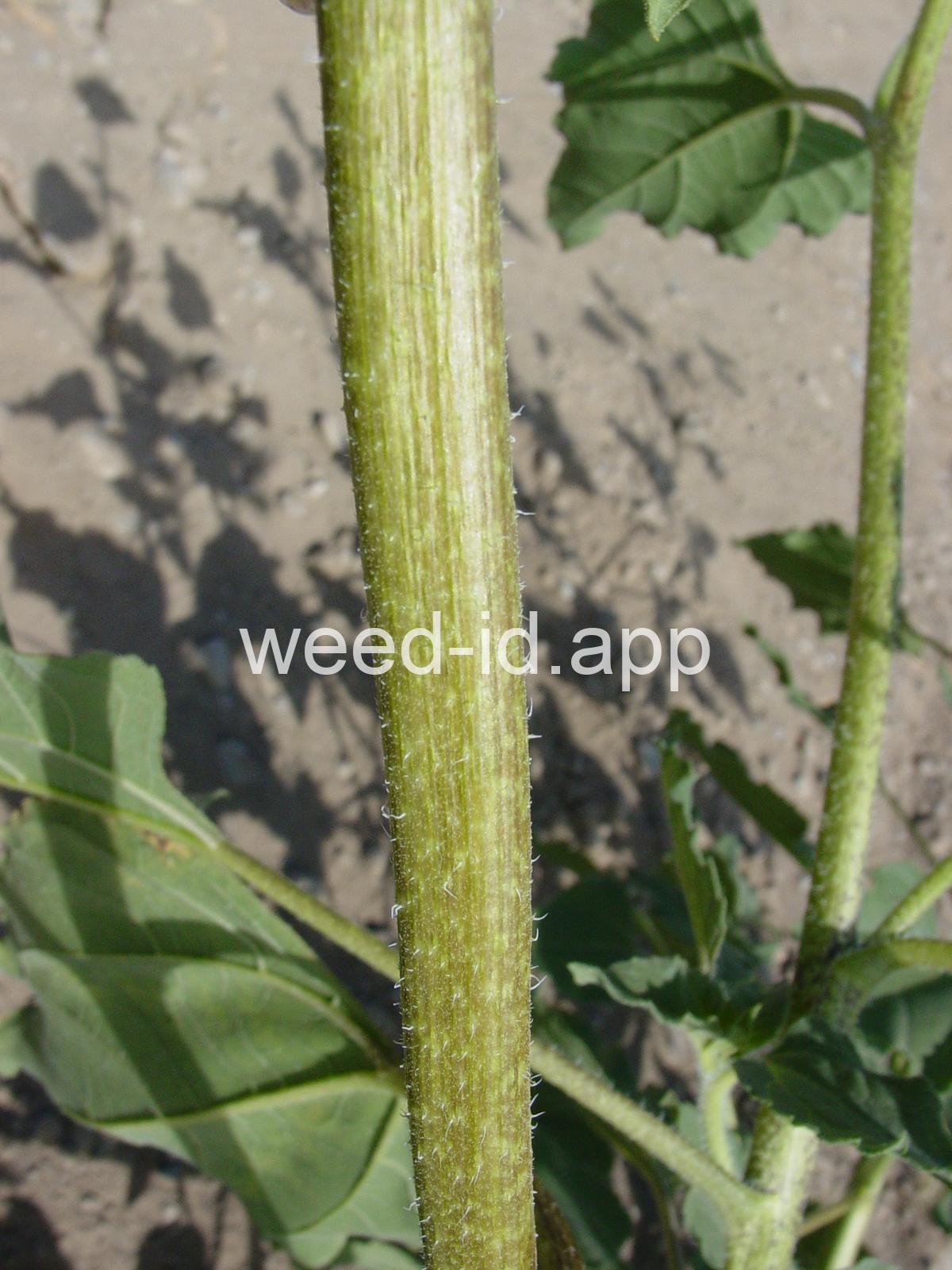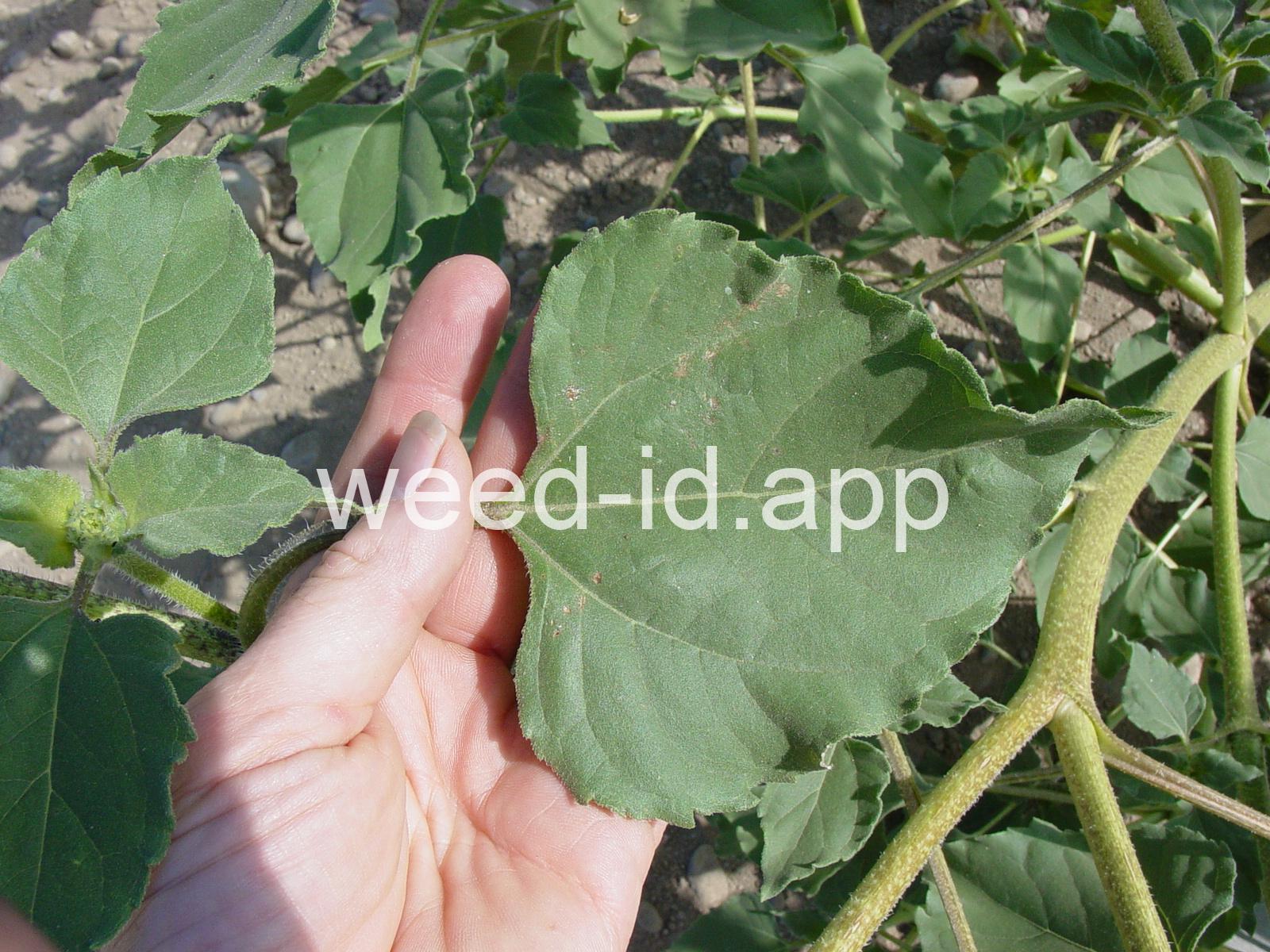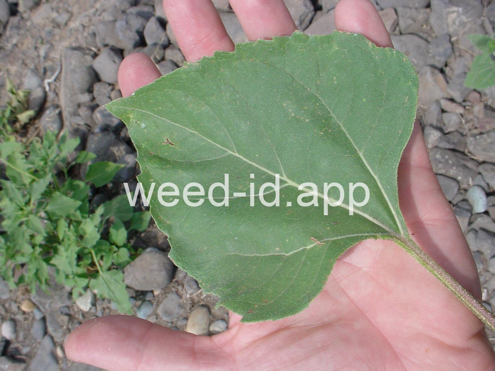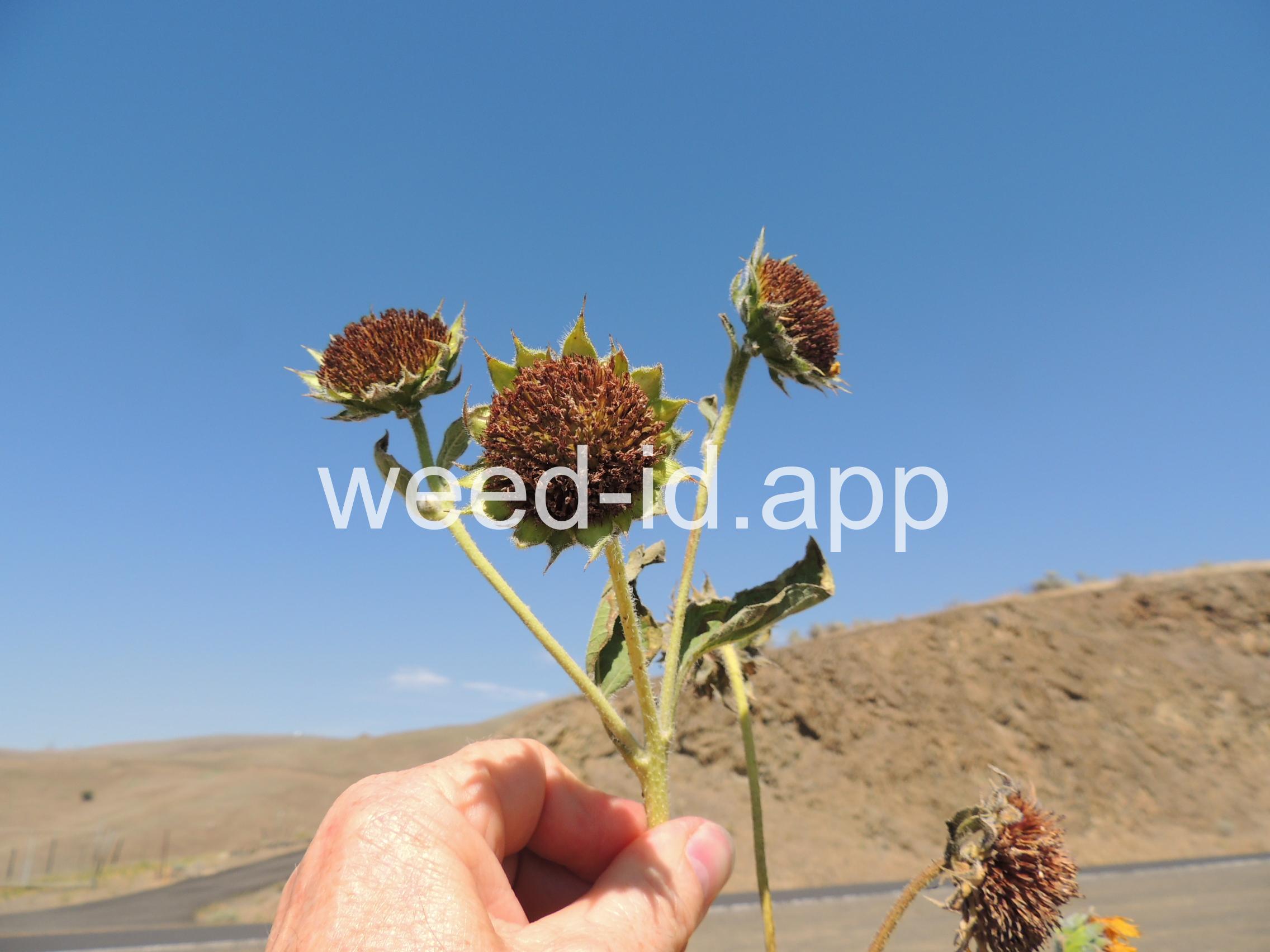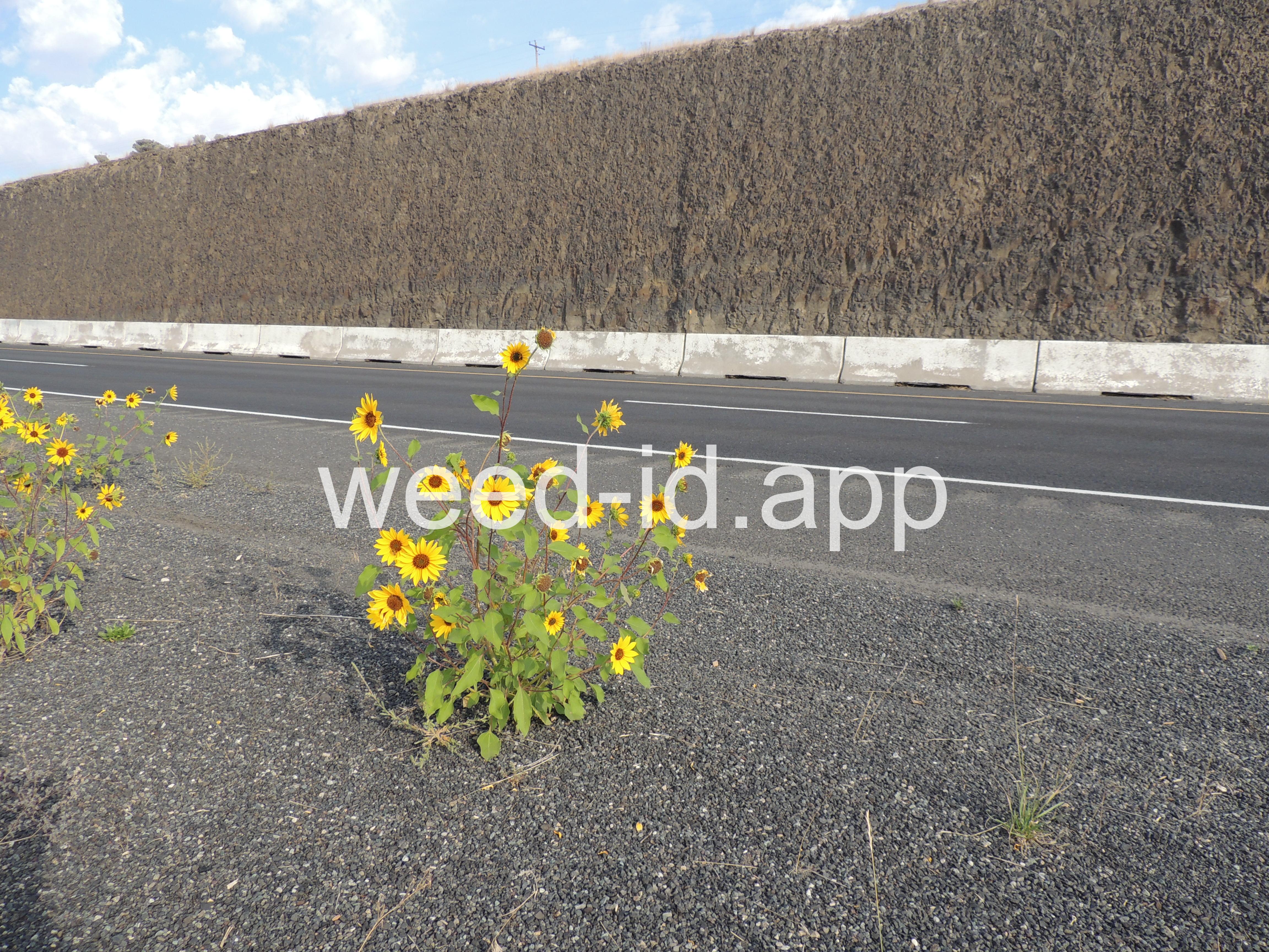 The wild ancestor of today`s cultivated sunflower. The lowest leaves are opposite but most above are alternate, and all are scabrous (rough and scratchy). The flowers are in large heads with yellow ray flowers and brownish disk flowers. This species is common in dry wasteland and natural areas, blooming from mid to late summer.