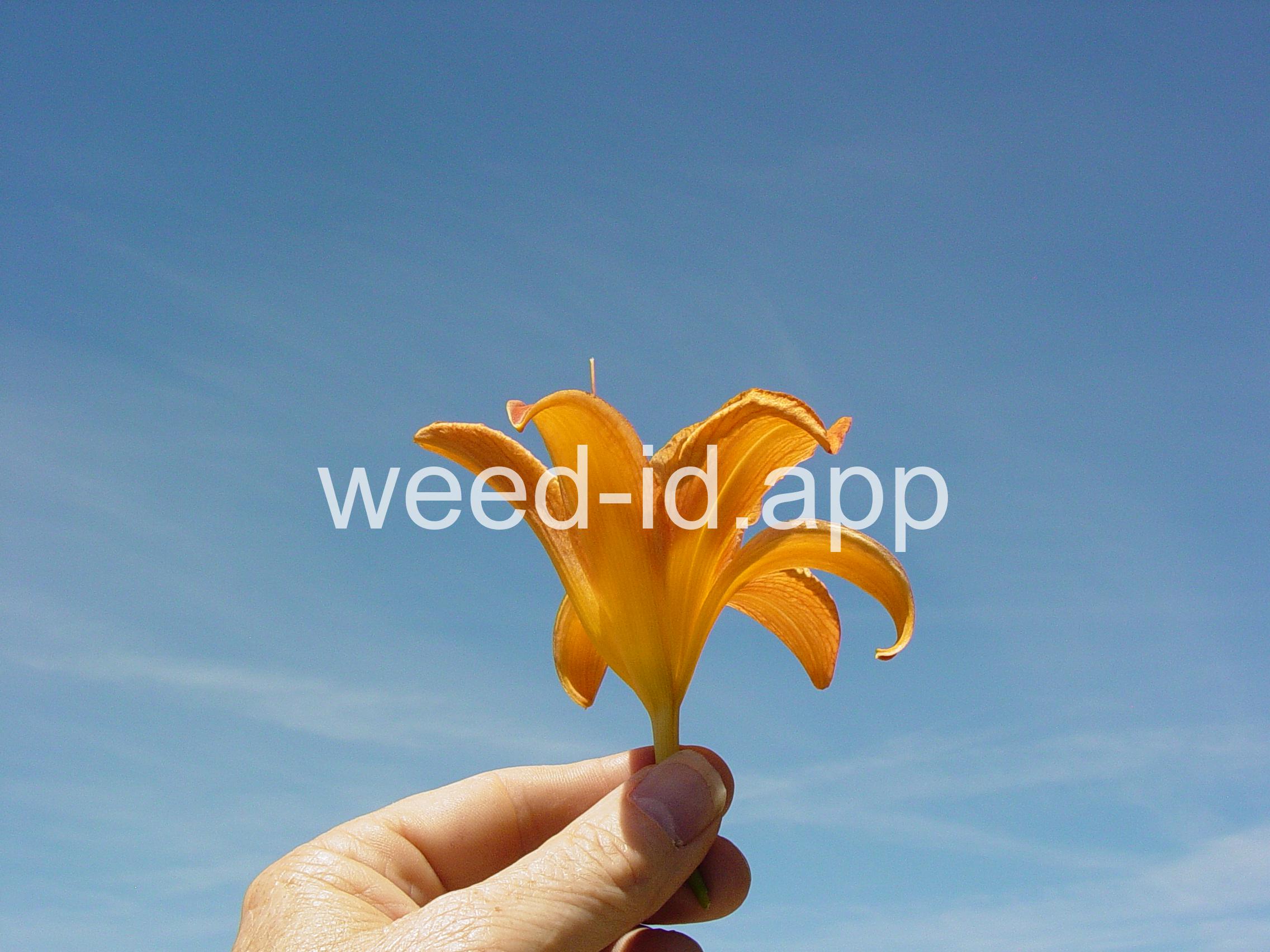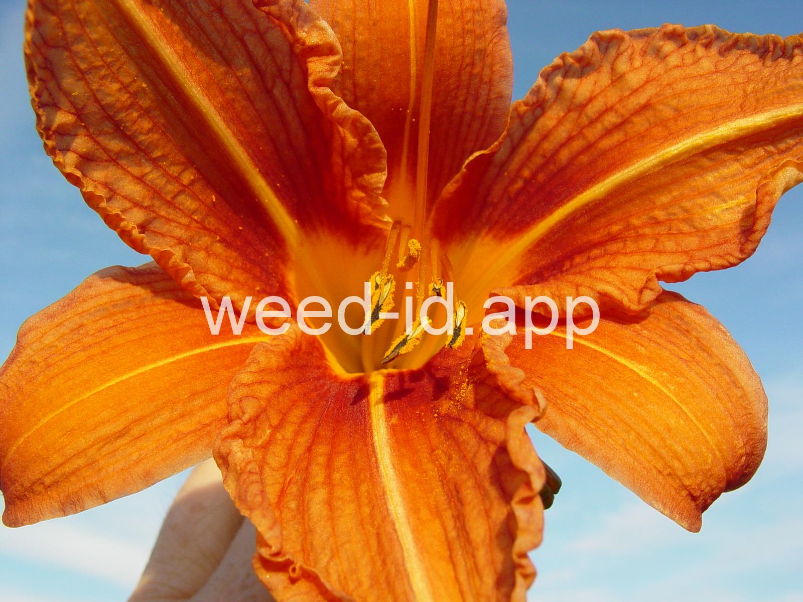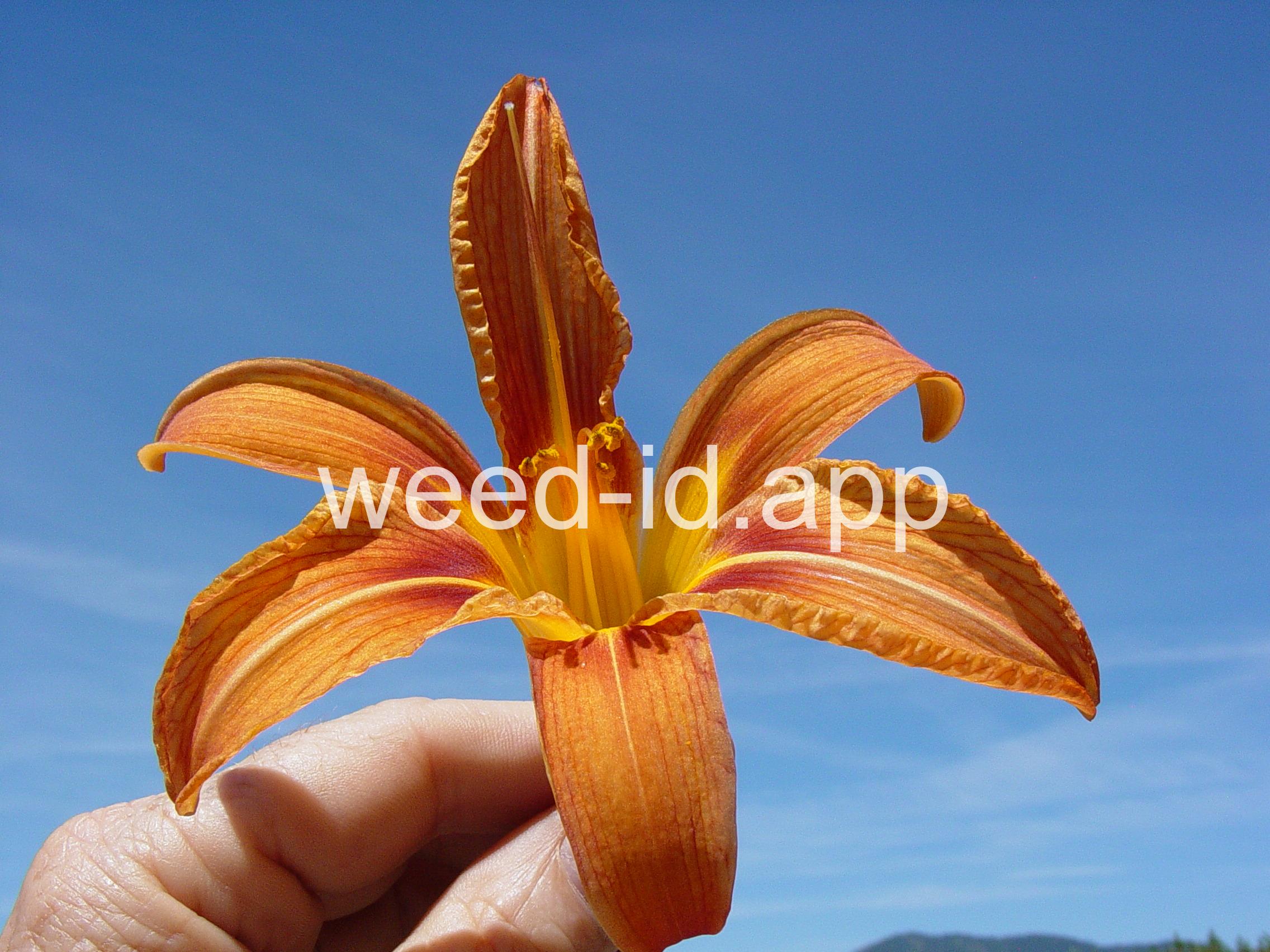 An escaped ornamental, often as much as 3 - 5 feet tall with large, orange flowers with six segments.