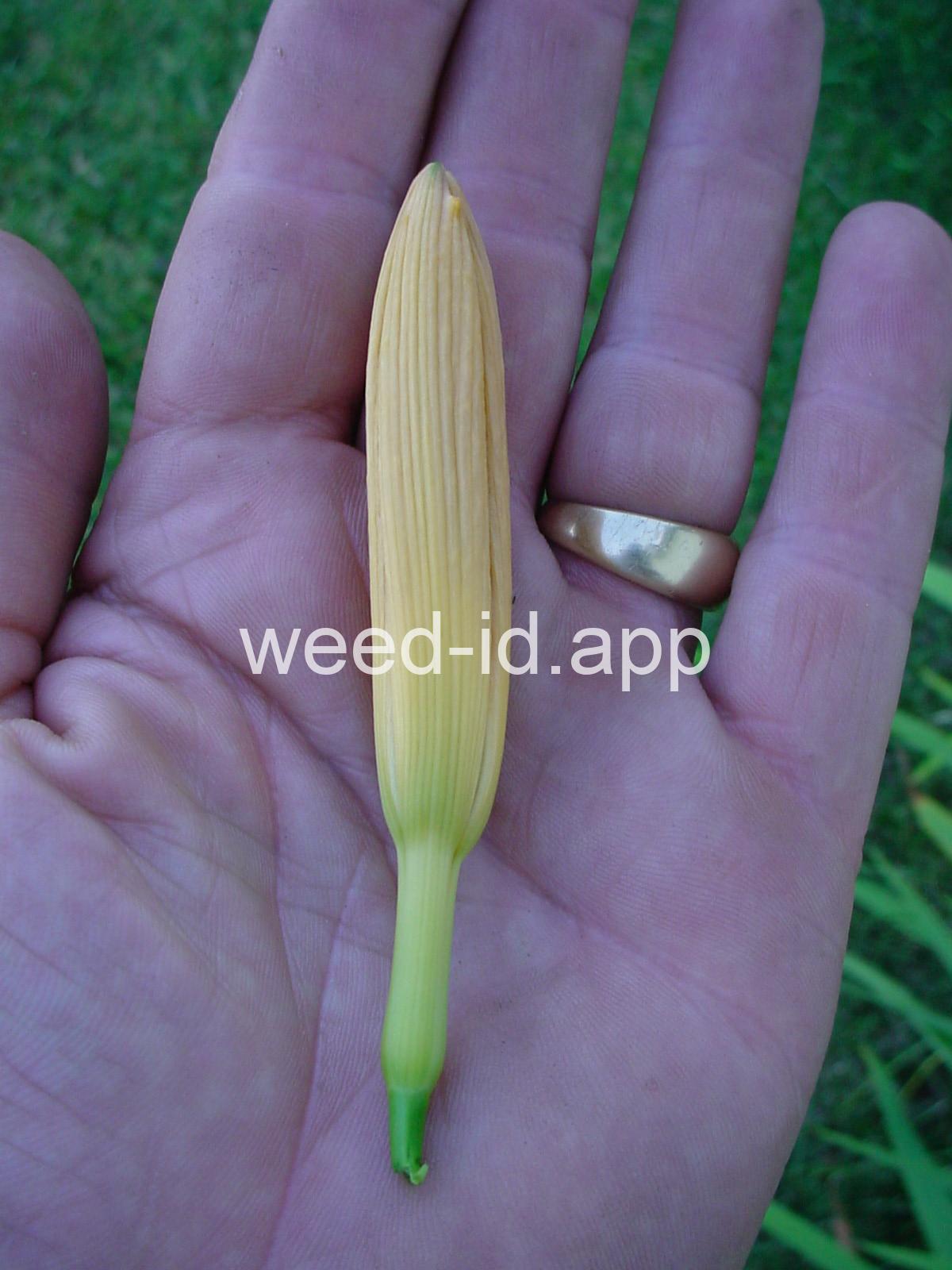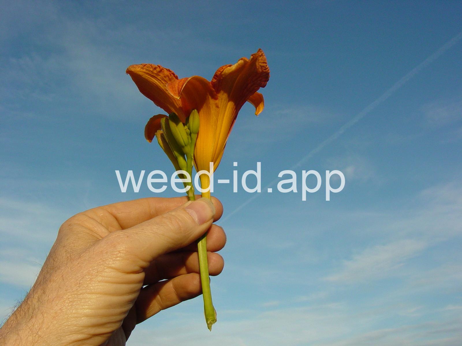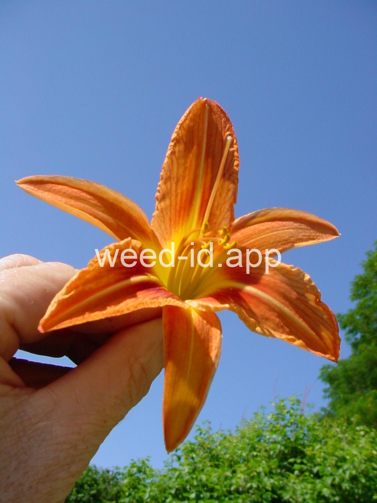 An escaped ornamental, often as much as 3 - 5 feet tall with large, orange flowers with six segments.