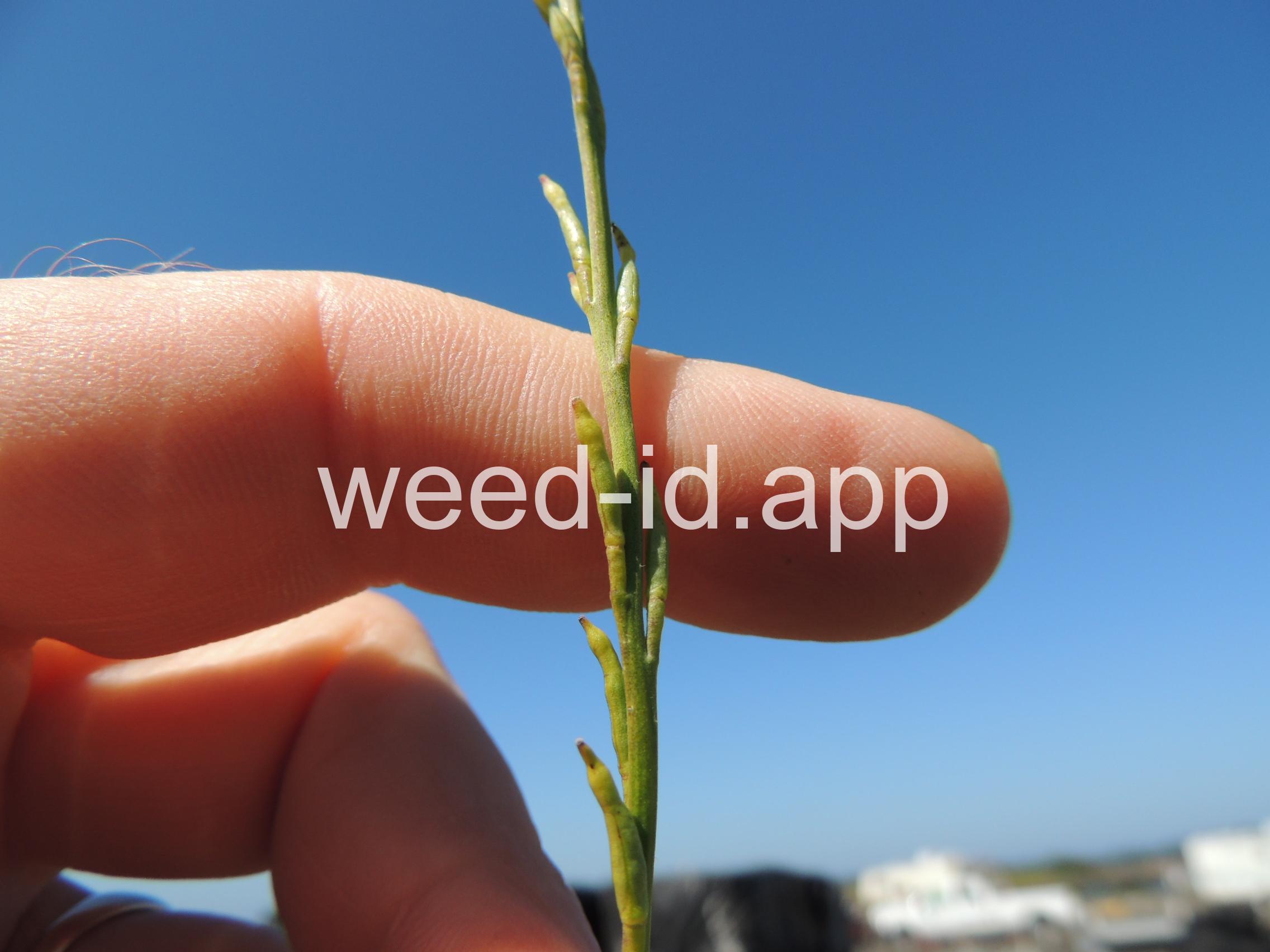 The pods erect and closely appressed to the flowering stem. The beak of the pod 3-4 mm long and usually containing one seed.