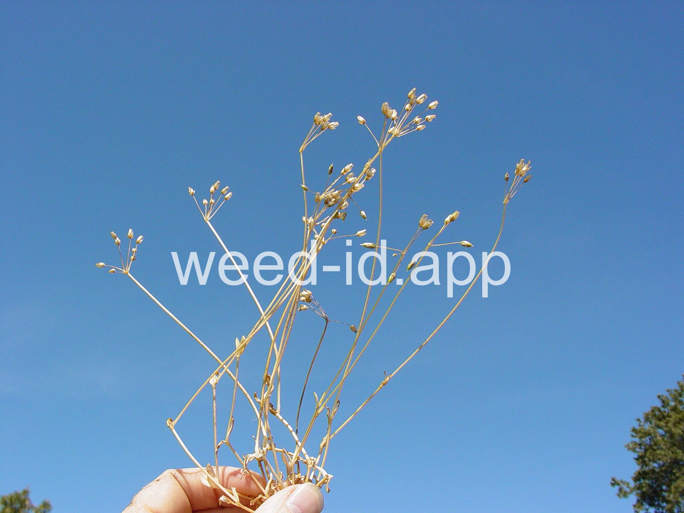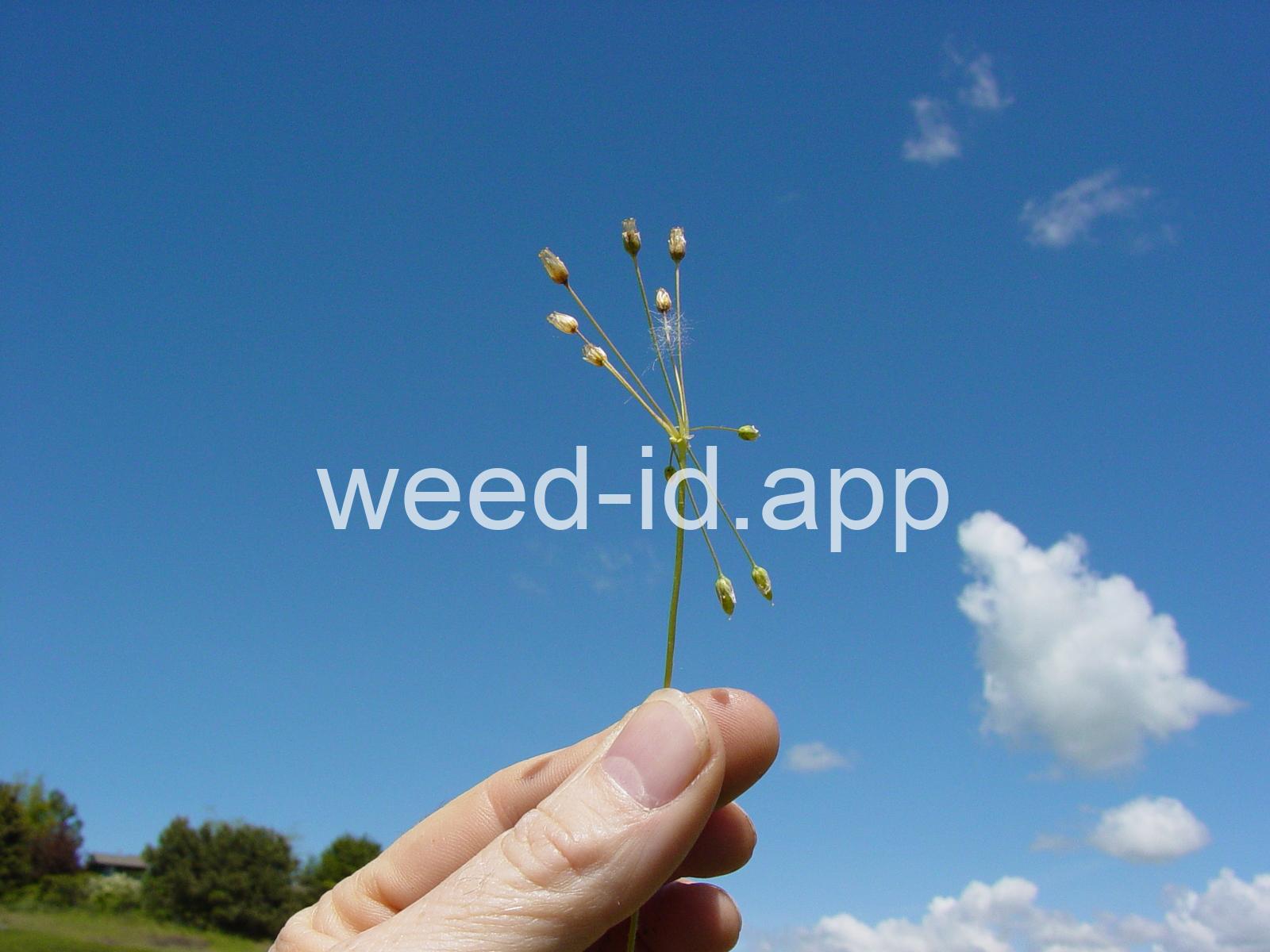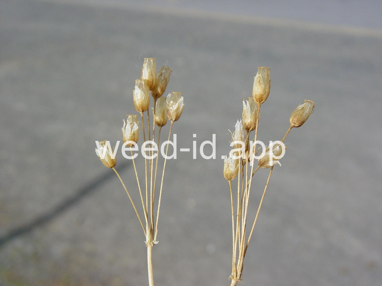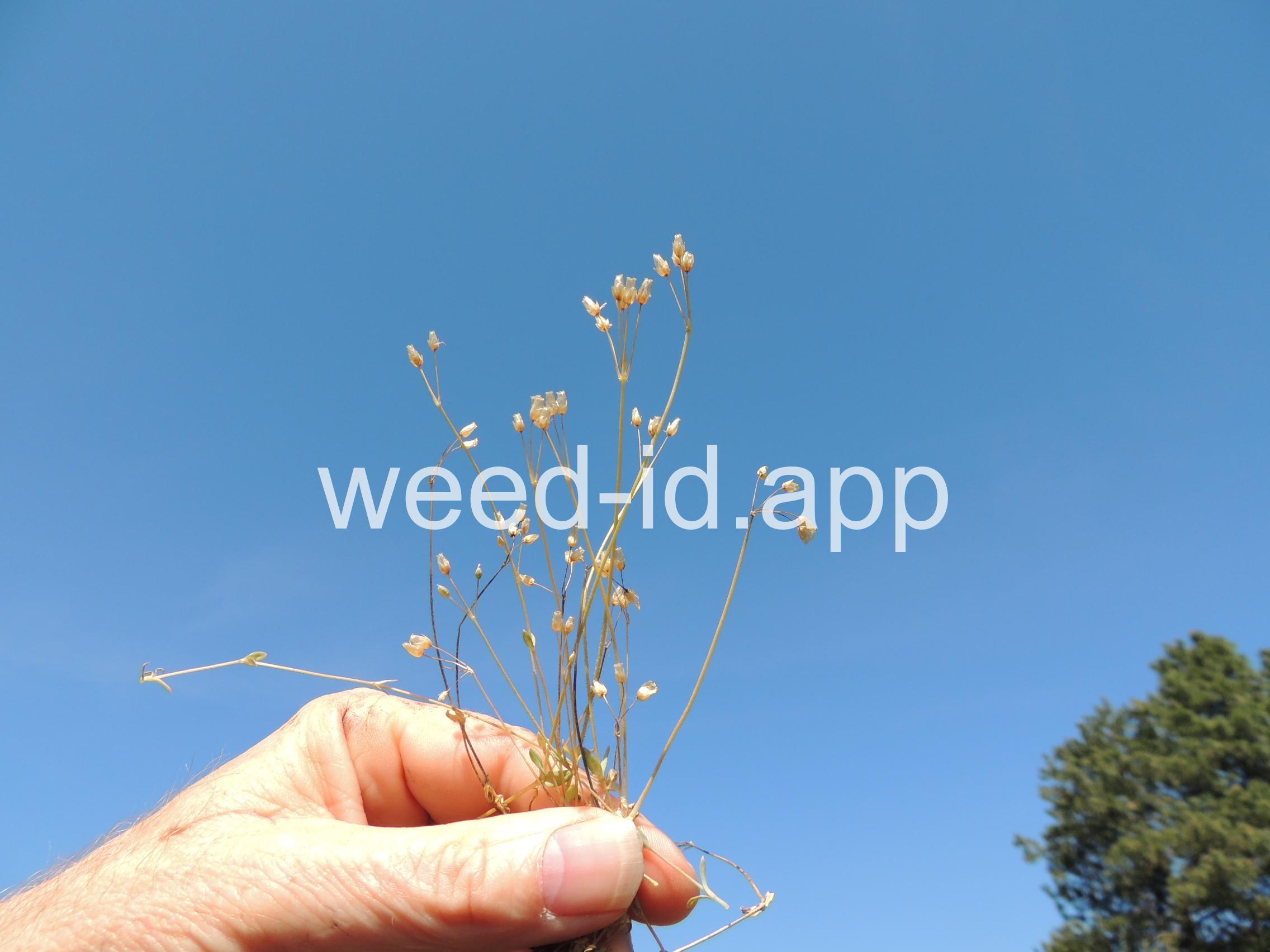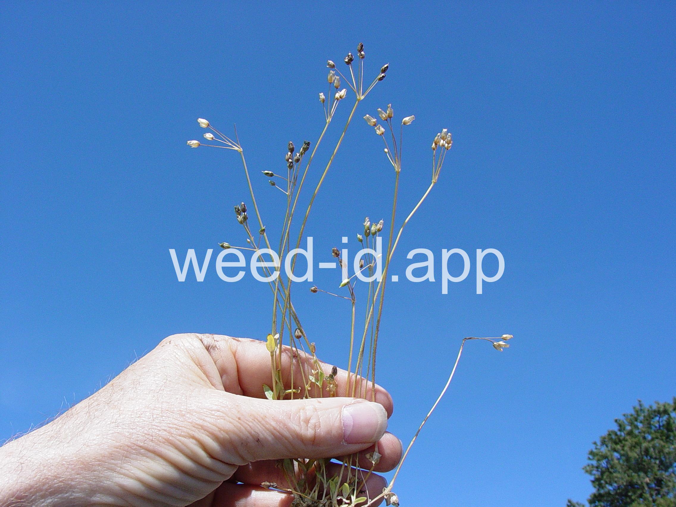 Also known as `jagged chickweed.` The opposite leaves and simple umbel inflorescence make this a very distinctive annual. The leaves are hairless except for their ciliate margins. It is often one of the first species to flower in the spring.