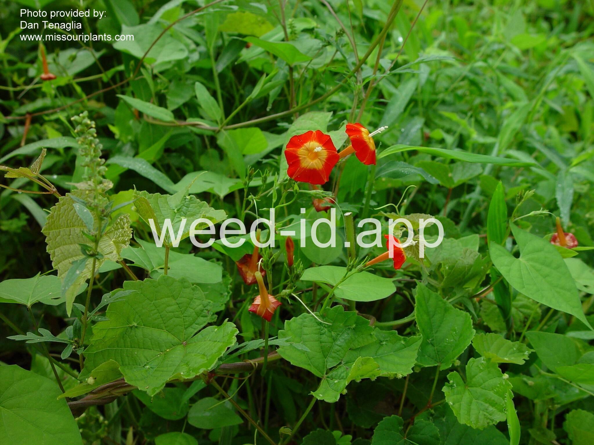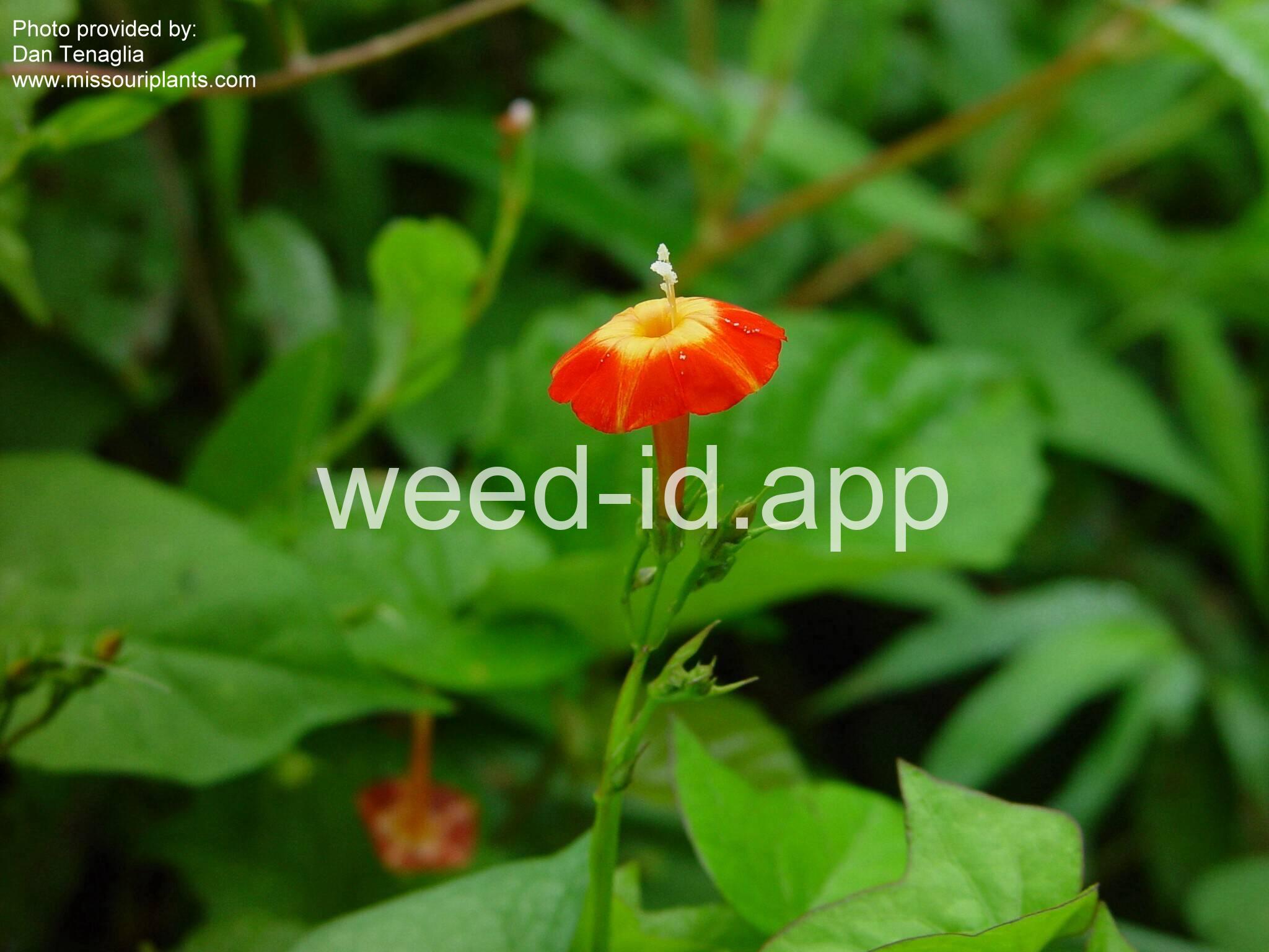 A twining annual with heart-shaped leaves and bright red, tubular flowers. The points on the leaf margin seems to be a variable character, present in some parts of the plants range and not others.
