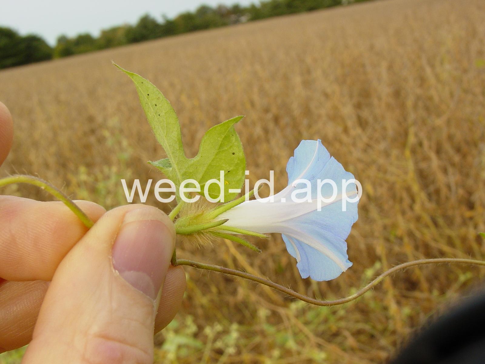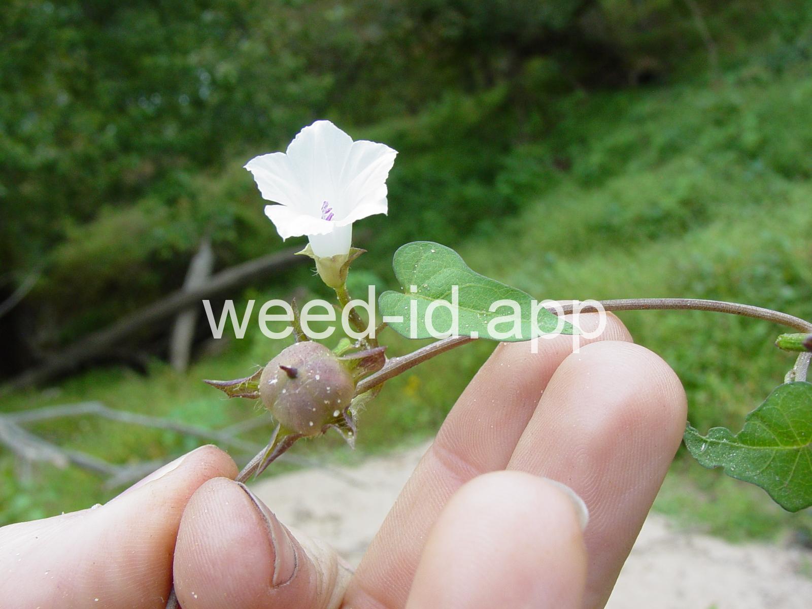 An annual vine with ovate, heart-shaped, or lobed leaves. Peculiar characteristics of this species include its extremely hairy fruit and the stamens which often have white filaments and purple anthers.