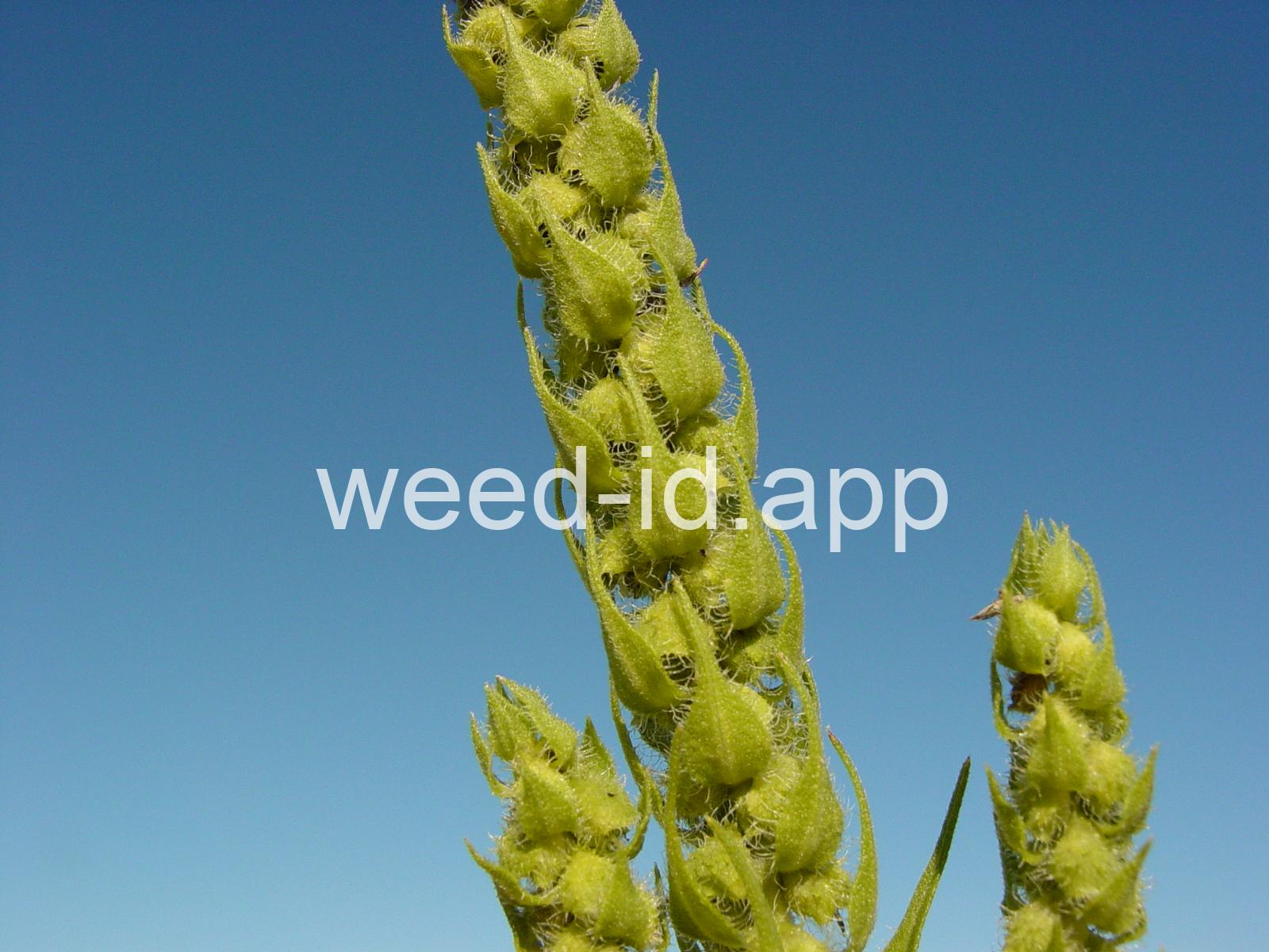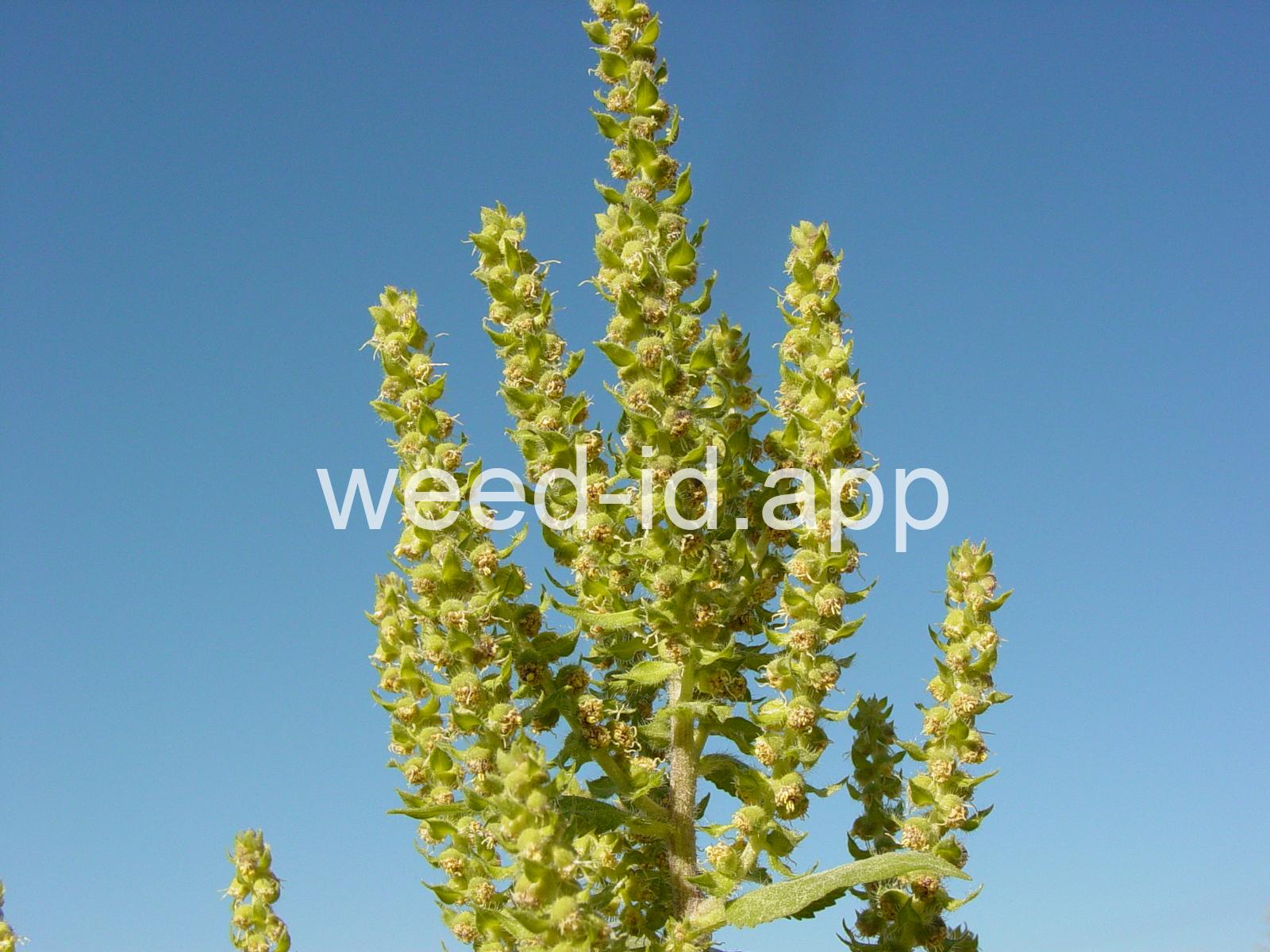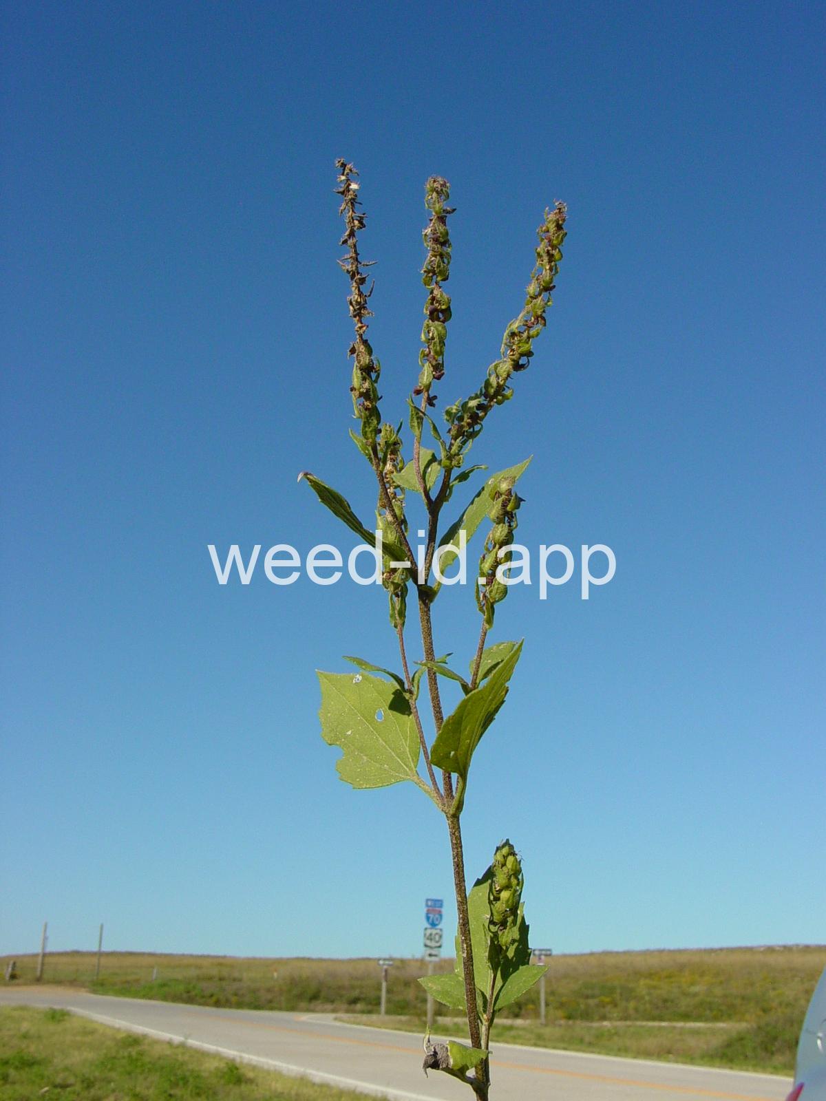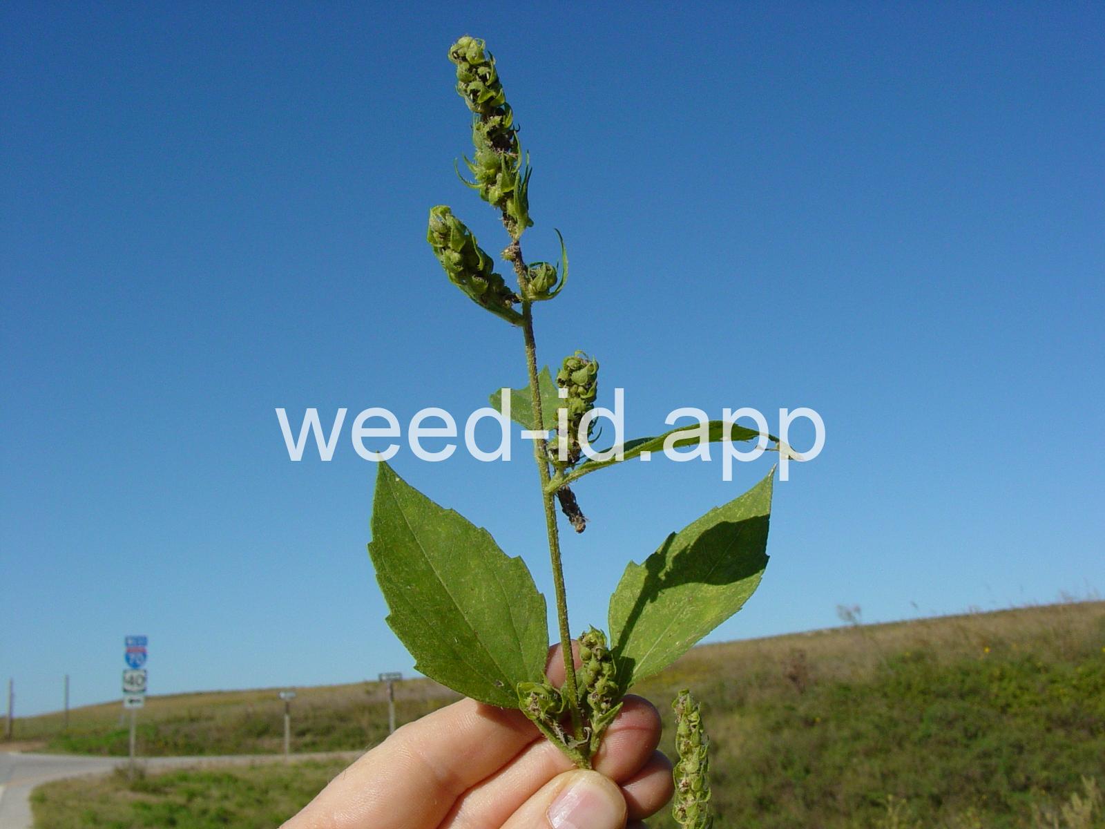 Differing from Iva xanthifolia in being a much smaller plant, mostly less than 2 feet tall, with the flower heads are in elongate terminal spikes subtended by conspicuous narrow bracts. Often confused with some Ambrosia species. The photos on pages 156, 157 of Weeds of Nebraska and the Great Plains 1994 are actually this species rather than Iva xanthifolia as listed.