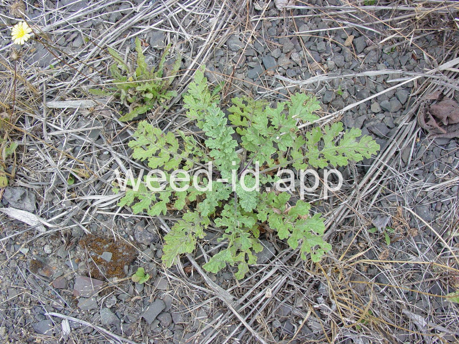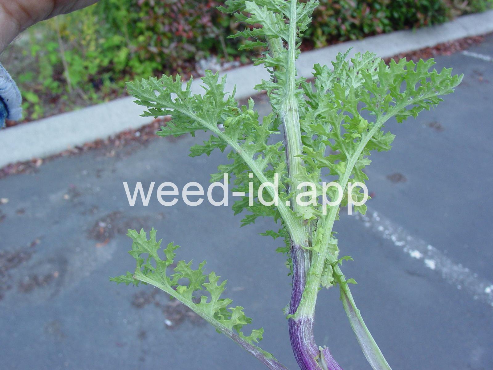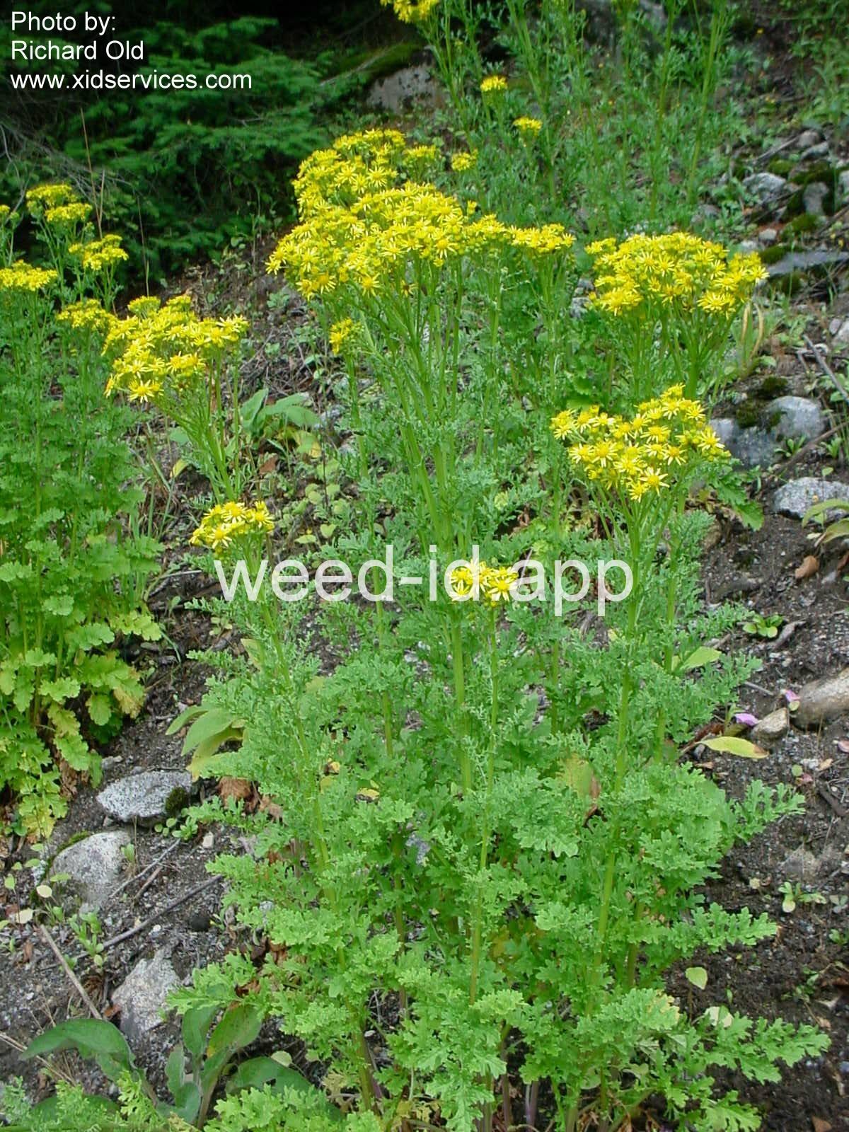 One of the most poisonous plants to horses. This erect, fibrous-rooted biennial is very competitive in pastures. The leaves are irregularly dissected, and the small flower heads often have 13 ray flowers. The bracts beneath the flowers have the small, black tips typical of the genus.