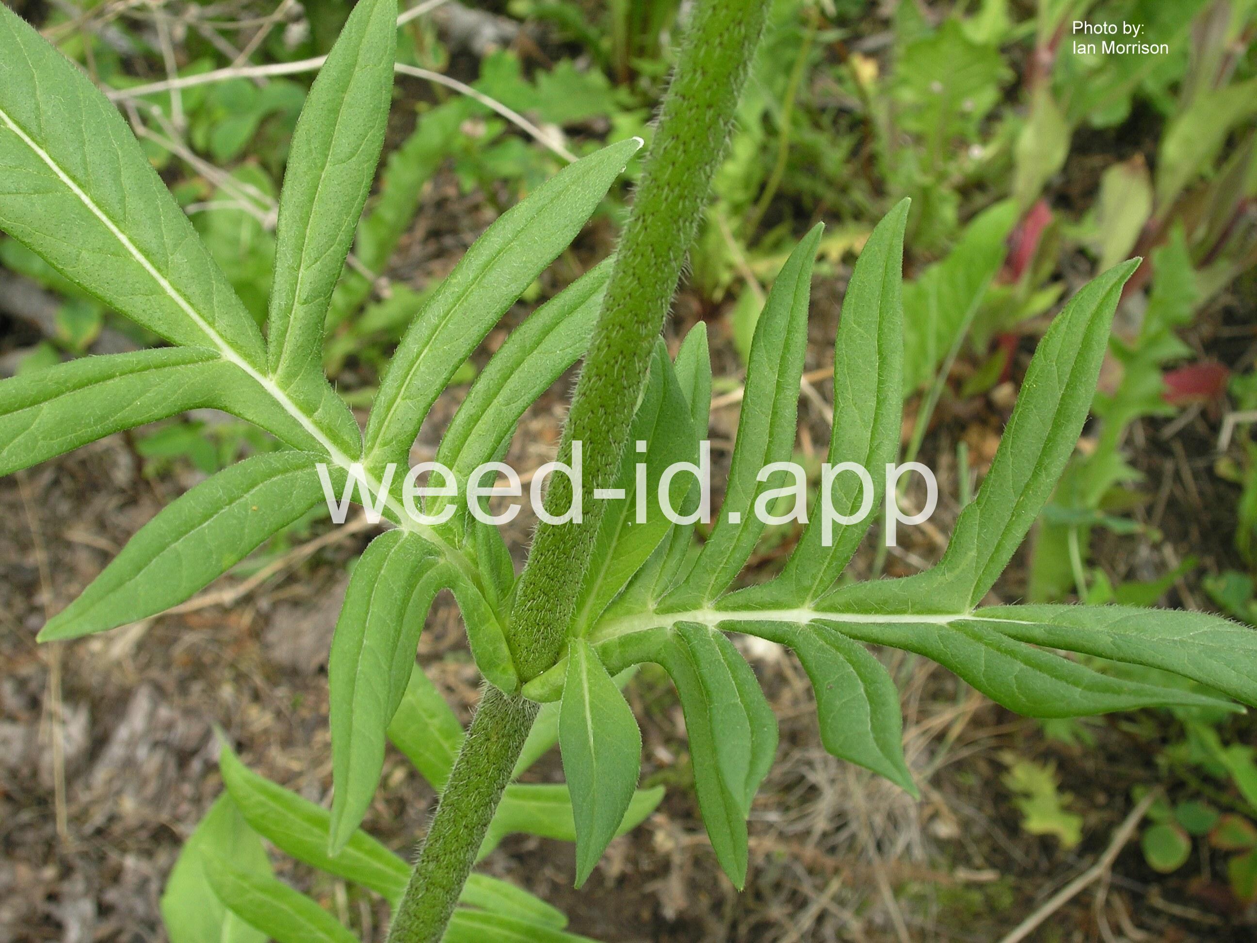 An escaped ornamental perennial which is very invasive in pastures and rangeland. The lower leaves simple, the upper leaves pinnately lobed to parted. The flowers in terminal heads.