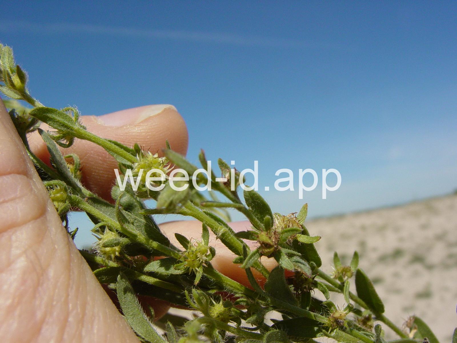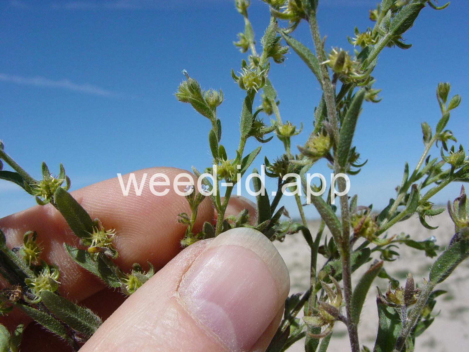 Very similar to western sticktight (Lappula occidentalis) but with hairier leaves and the bristles of the nutlets in >1 row.