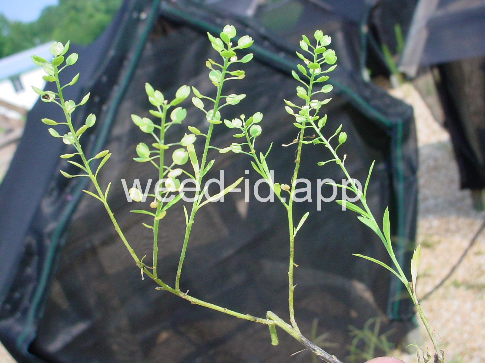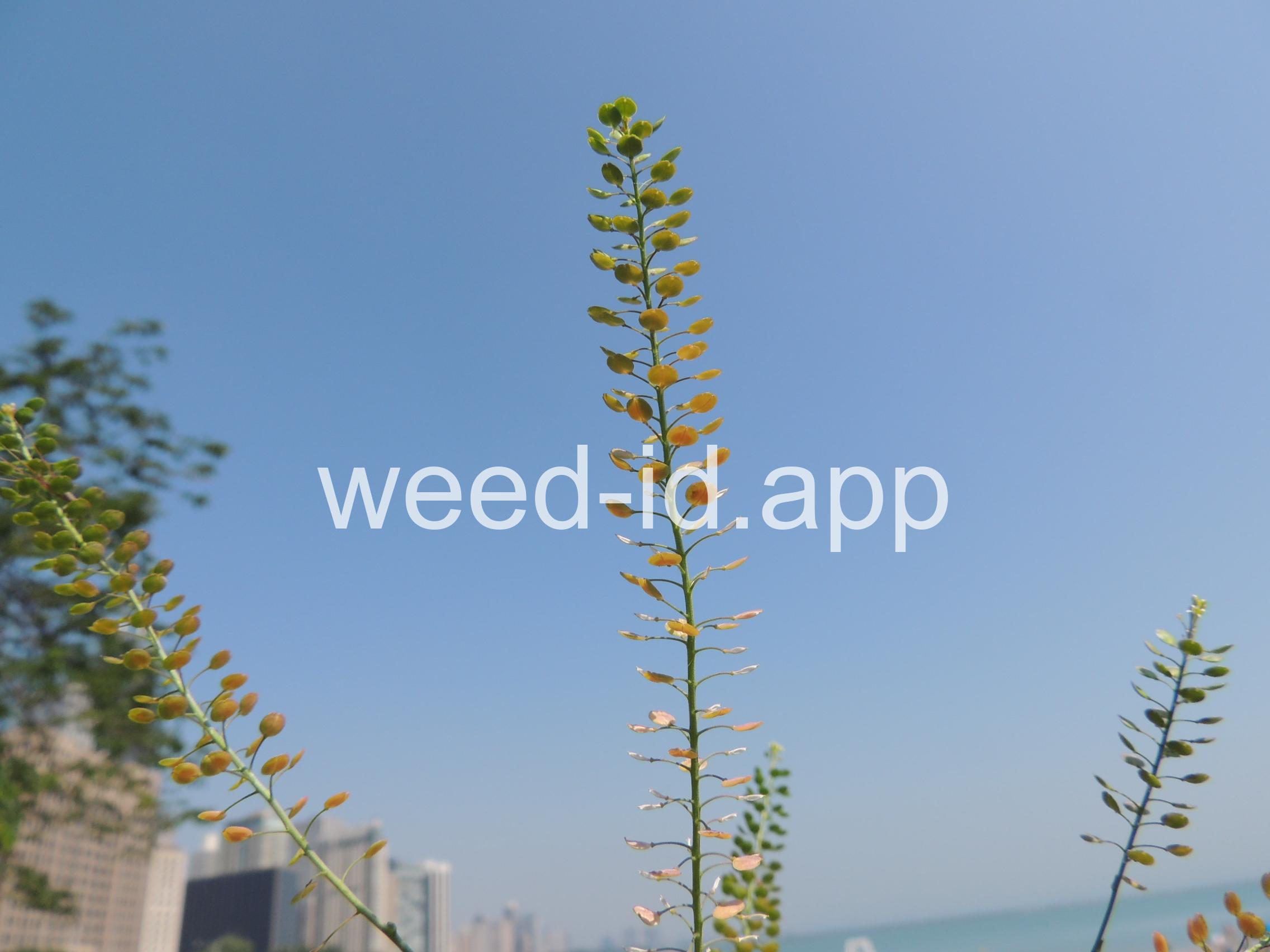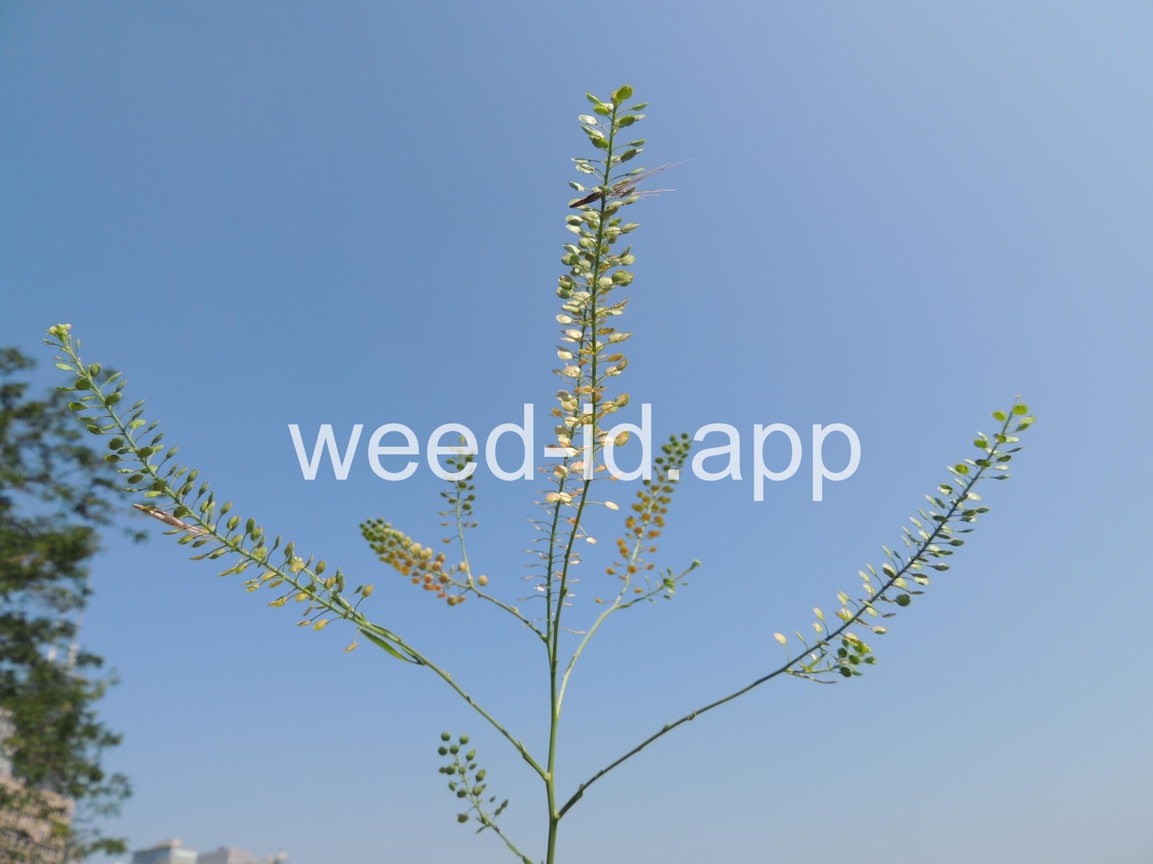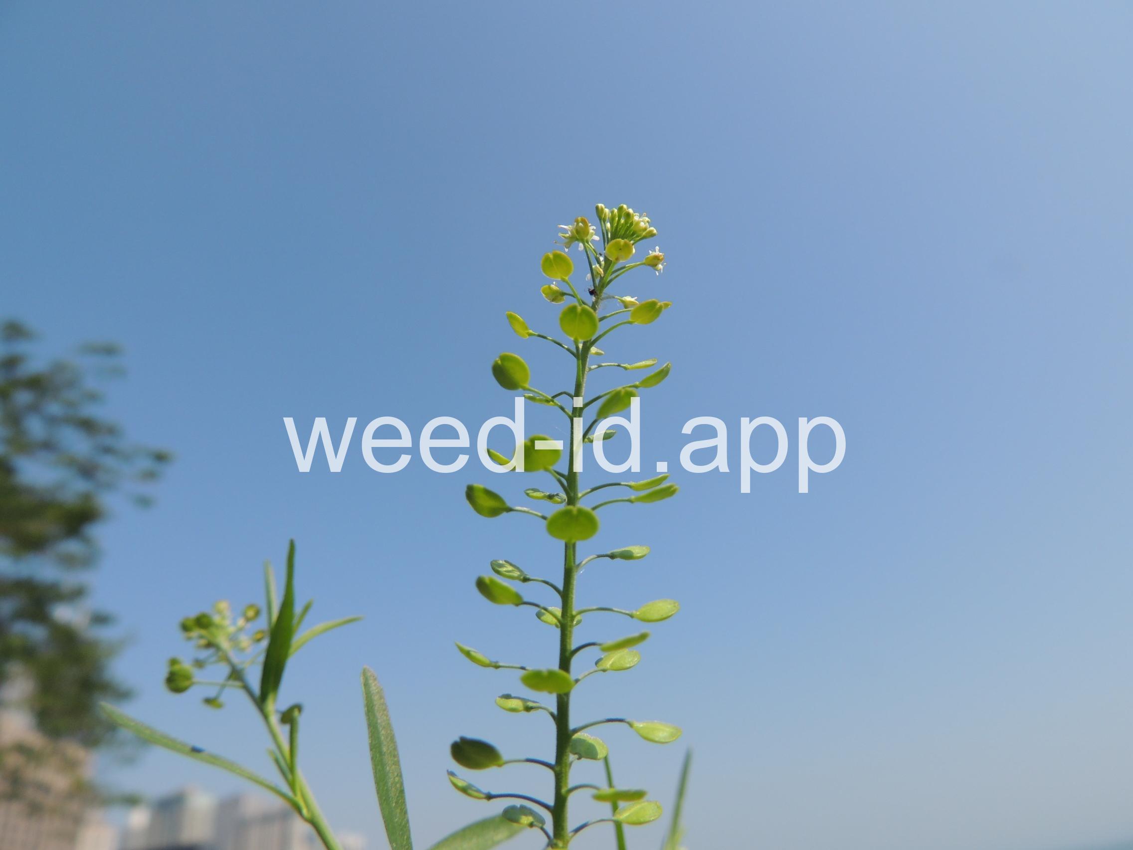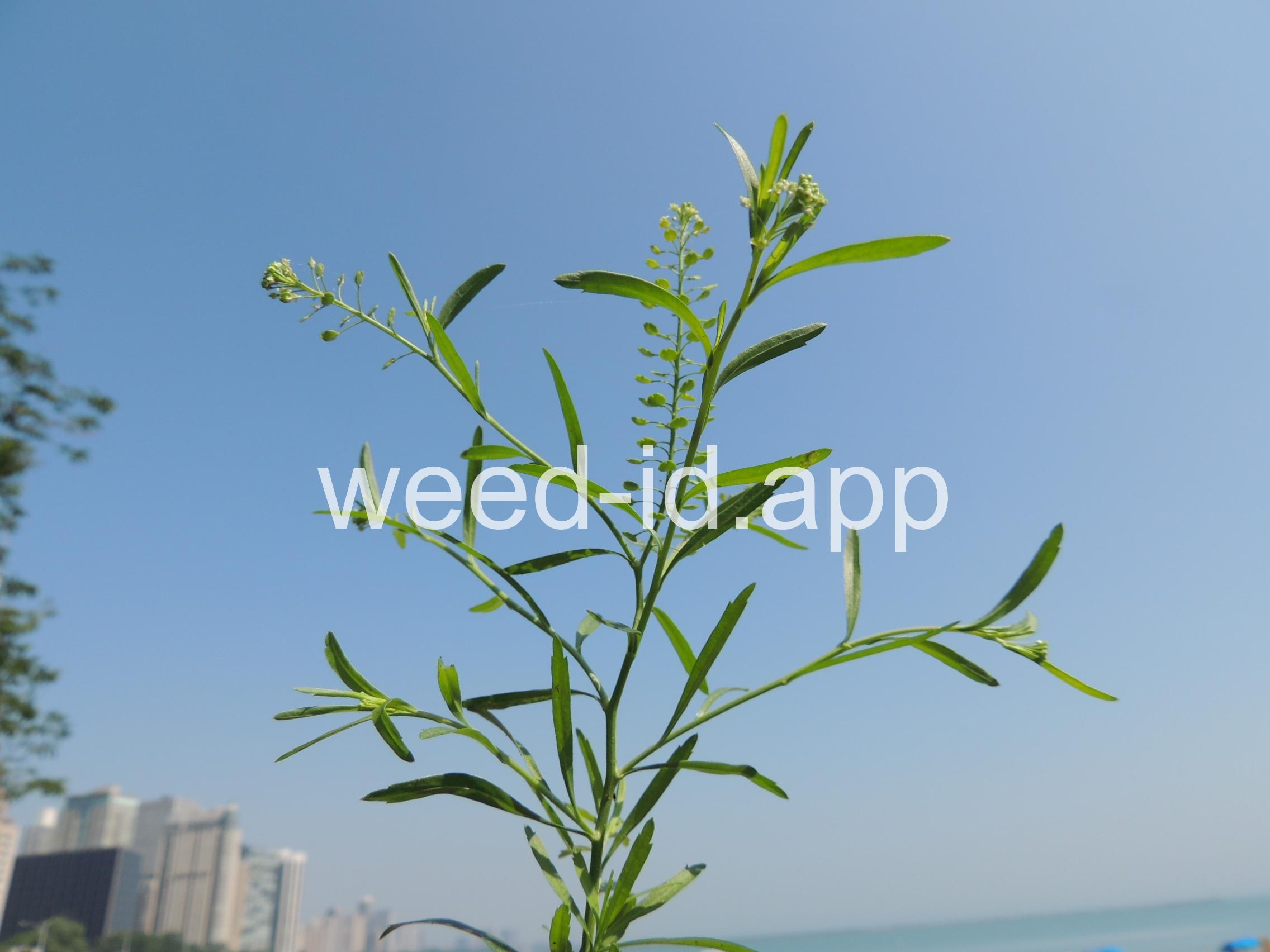 An extremely variable annual weed resembling Lepidium campestre but without clasping stem leaves. Chew the seeds to see why the common name is `pepperweed.`