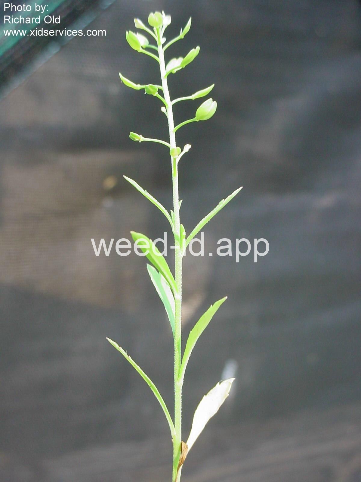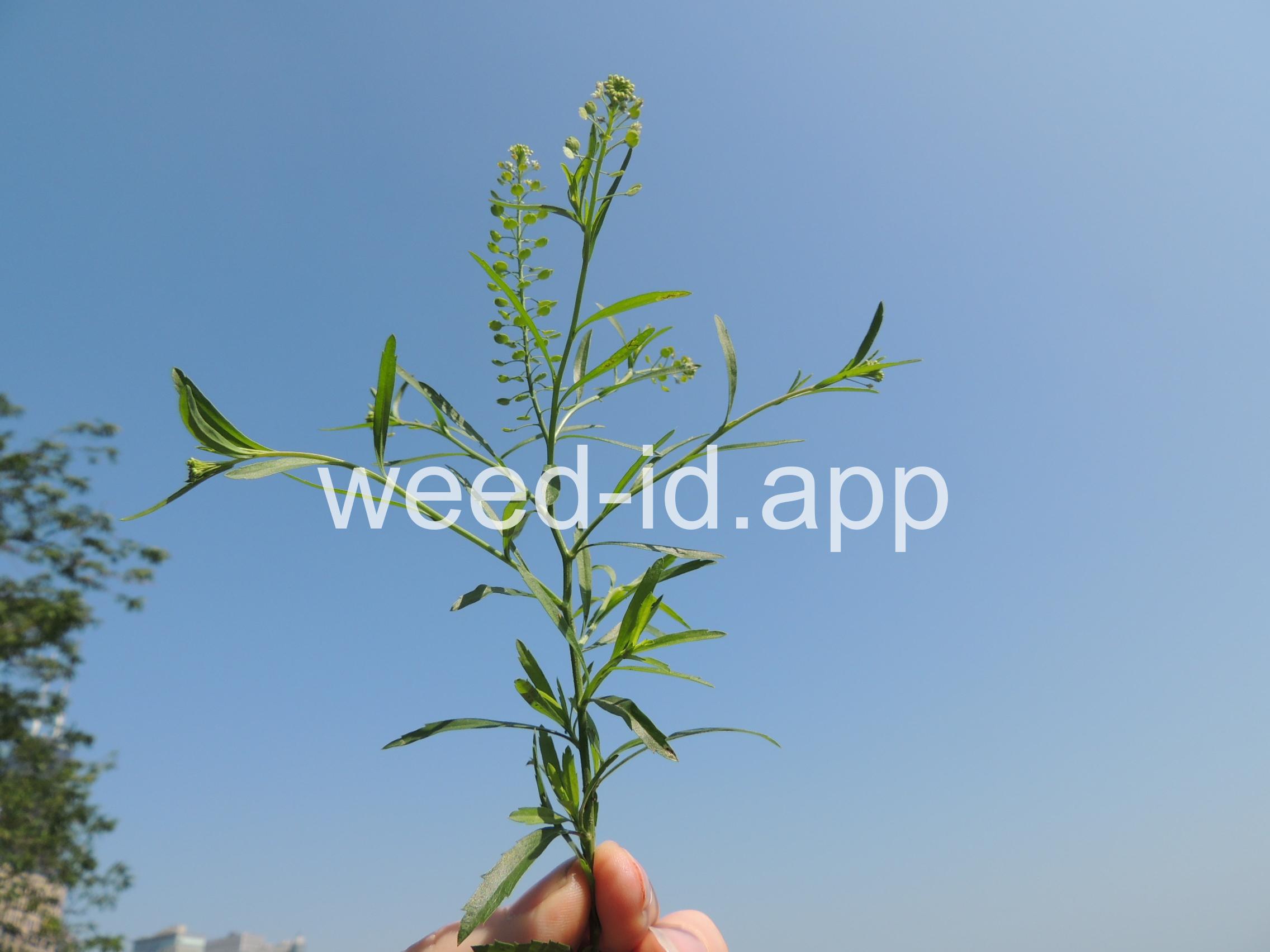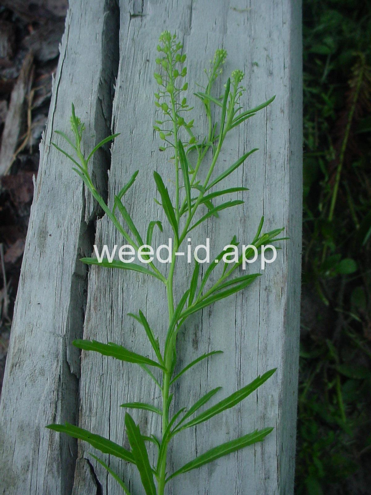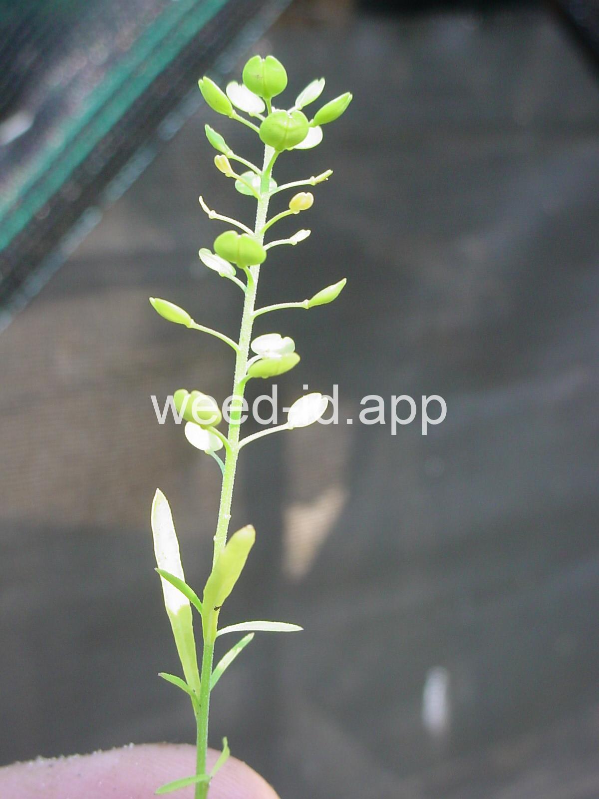 An extremely variable annual weed resembling Lepidium campestre but without clasping stem leaves. Chew the seeds to see why the common name is `pepperweed.`