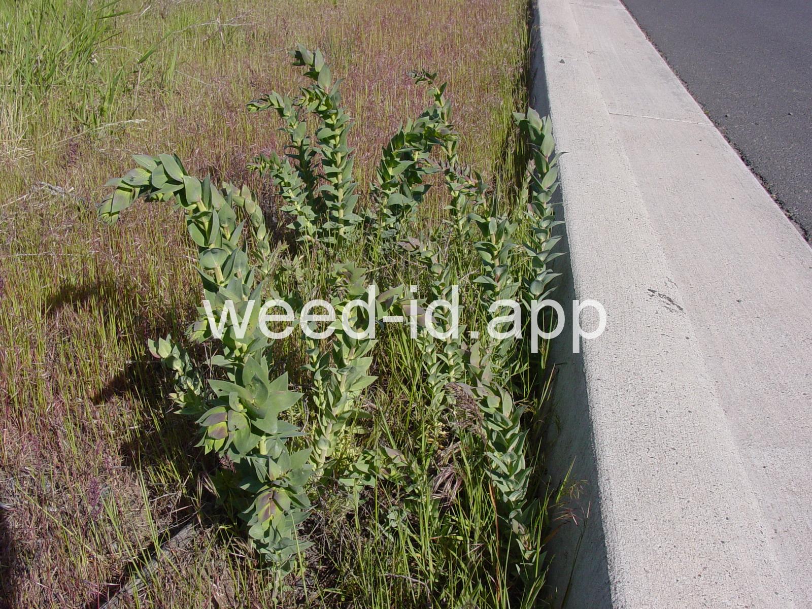 This rhizomatous perennial usually occurs on dry, sandy, or gravelly soils. It was originally introduced as an ornamental and produces a spike of yellow, snapdragon-like flowers with a long, narrow spur at the back of each flower. The leaves are bluish-green and hairless with a waxy feel. The winter growth is often prostrate, but the flowering stems are erect.