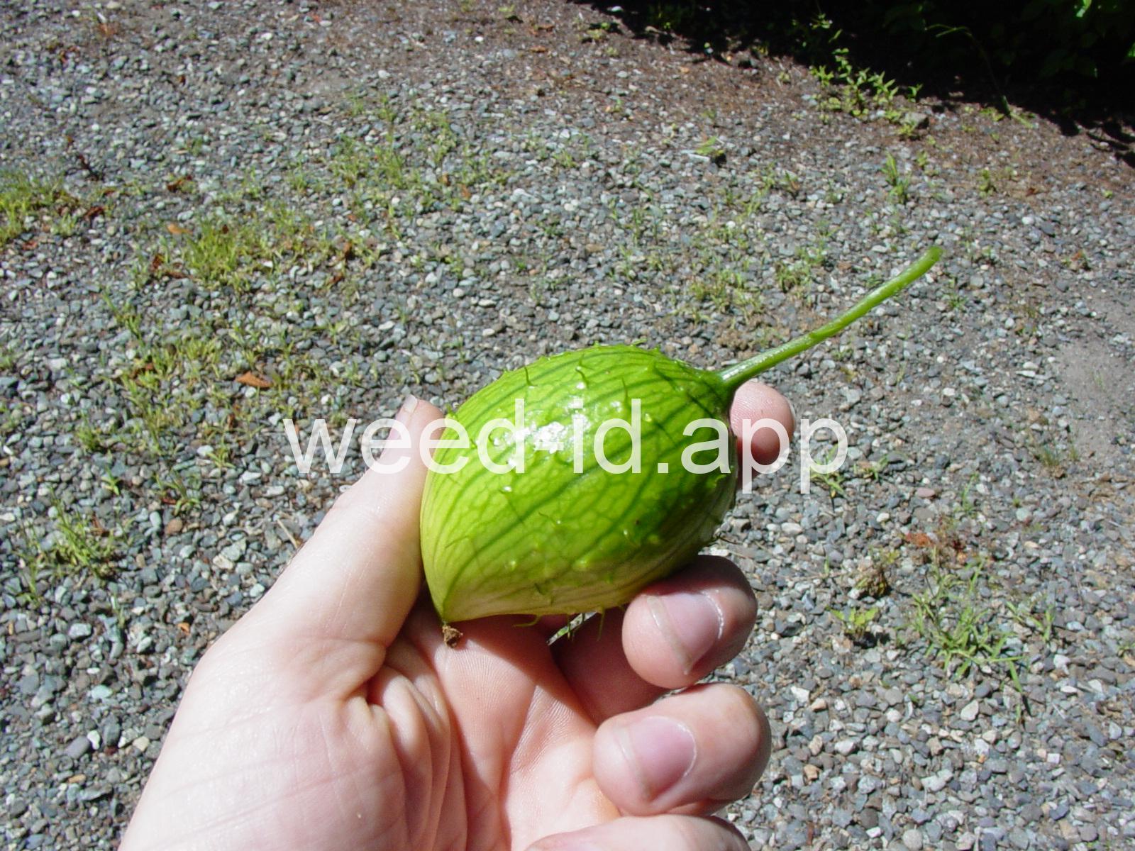 A native perennial which often persists from its tuberous root but is not invasive. The fruits and roots extremely bitter. Note the scratchy leaves and tendrils typical of the squash family.