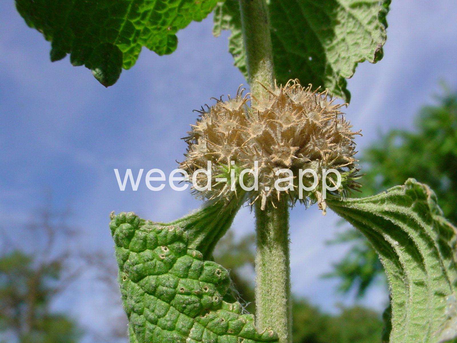 The most evident feature of this plant is the long, tangled, cobweb-like hair which covers the leaves and stem. The flowers occur in whorls near the top of the plant, and at maturity the sepals form a bur which helps to disseminate the seed. This is an escaped herb, originally used as a flavoring agent for medicines and horehound candy. Due to the volatile oils common in the mint family, livestock will not graze this species, and it is often found around feedlots and on over-grazed, dry rangeland.