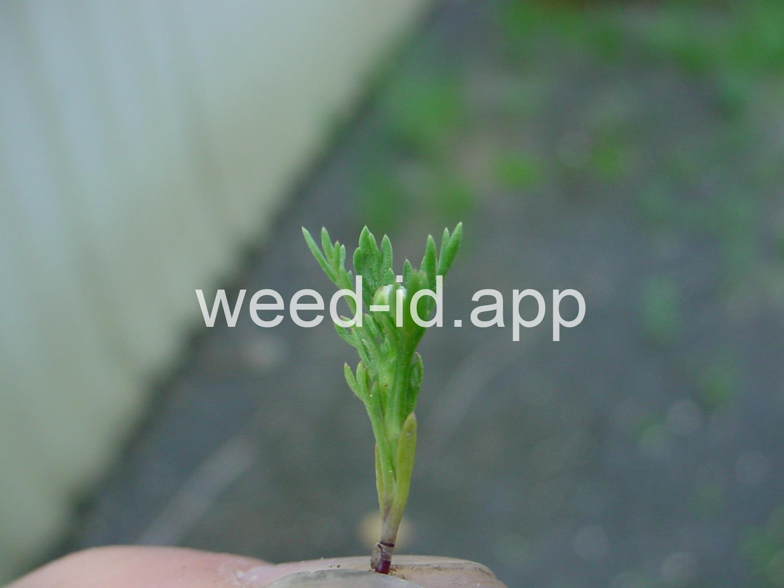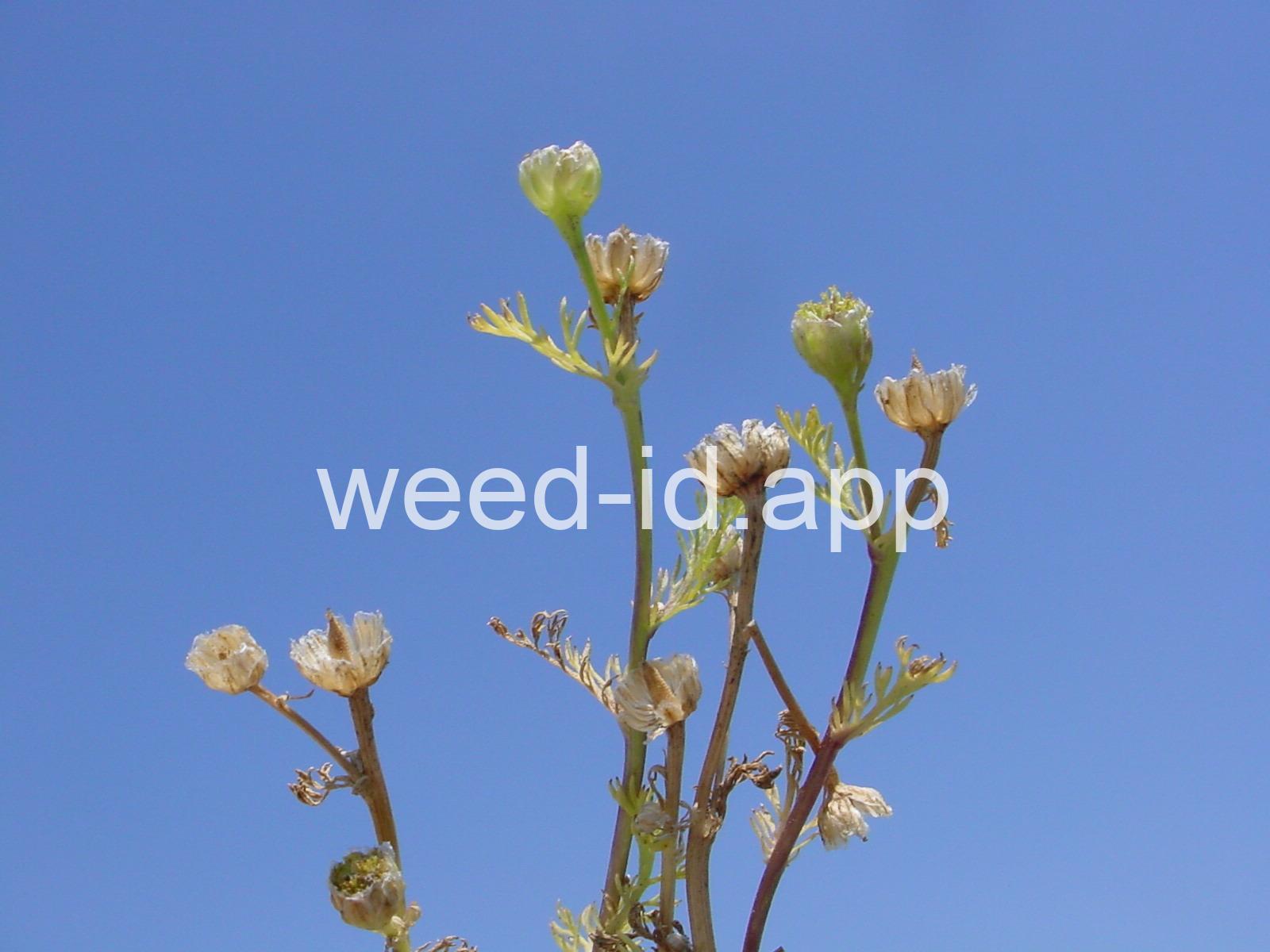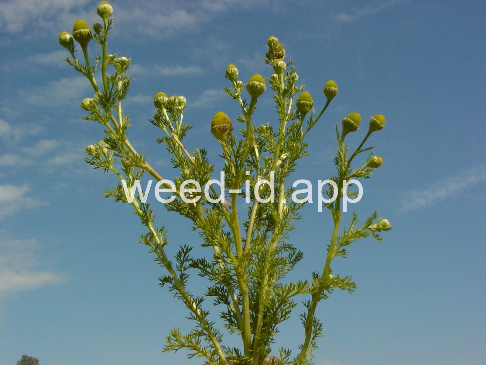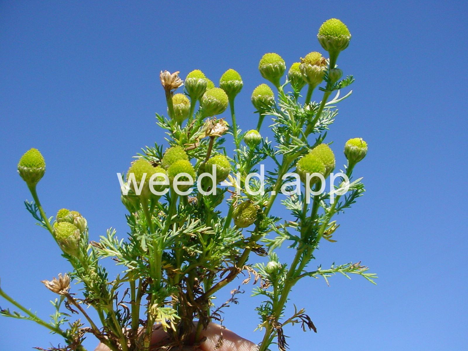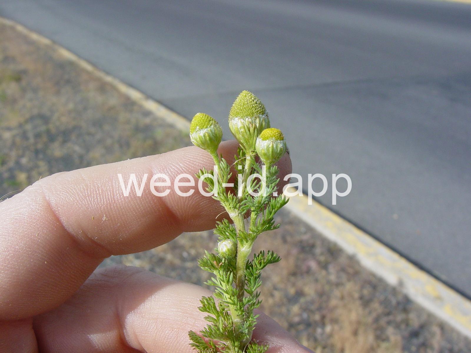 This low growing annual is often confused with mayweed (Anthemis cotula) but can easily be distinguished by its pleasant, sweet odor and lack of ray flowers. It is often found in compacted soils, such as paths and driveways, with prostrate knotweed.