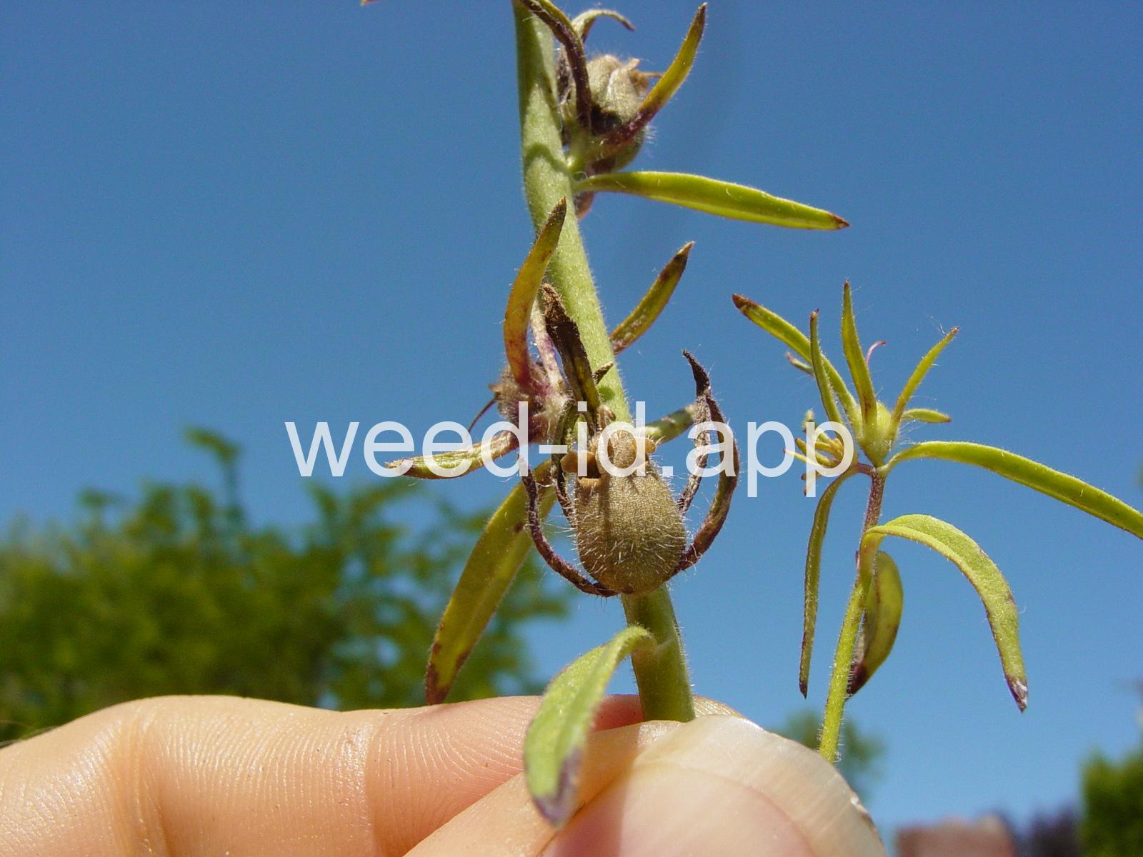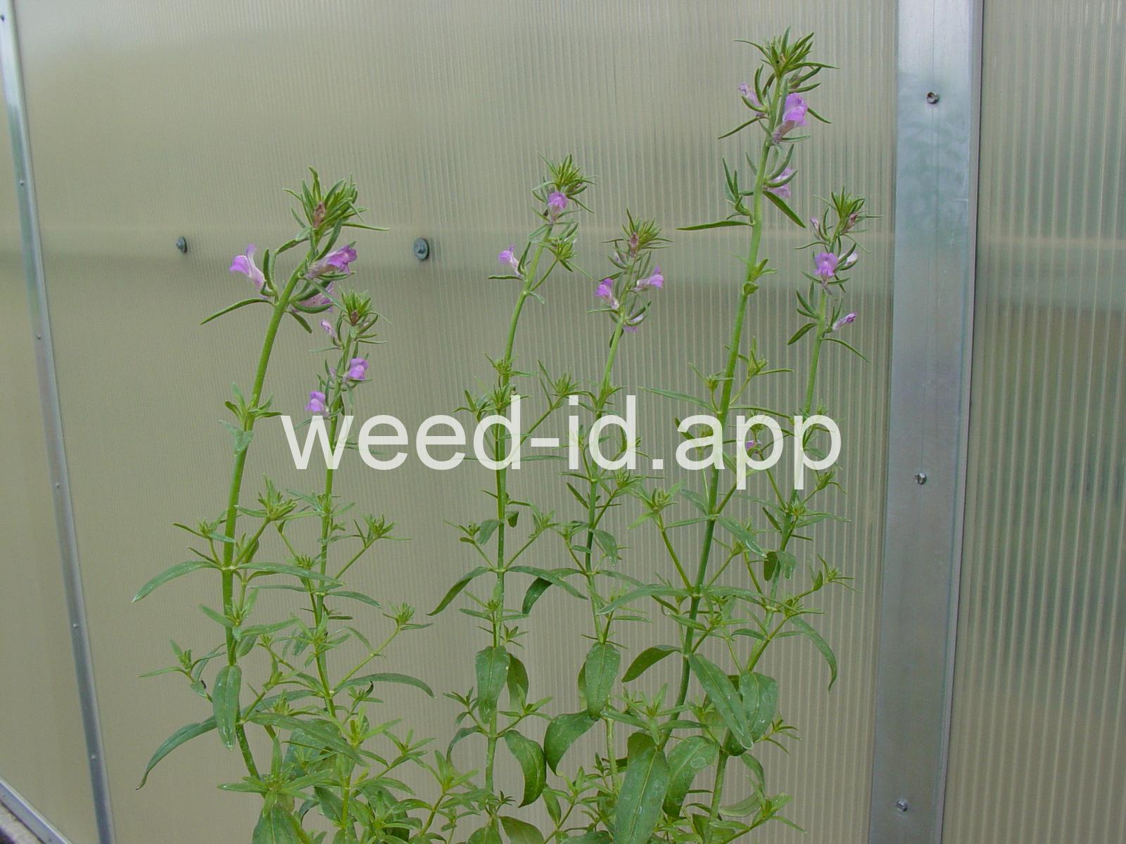 The fruit of this annual opens by 2 pores at the tip which give rise to the common names of hogs-snout and weasel-snout. The flowers are small, light purple, and strongly irregular. Species list