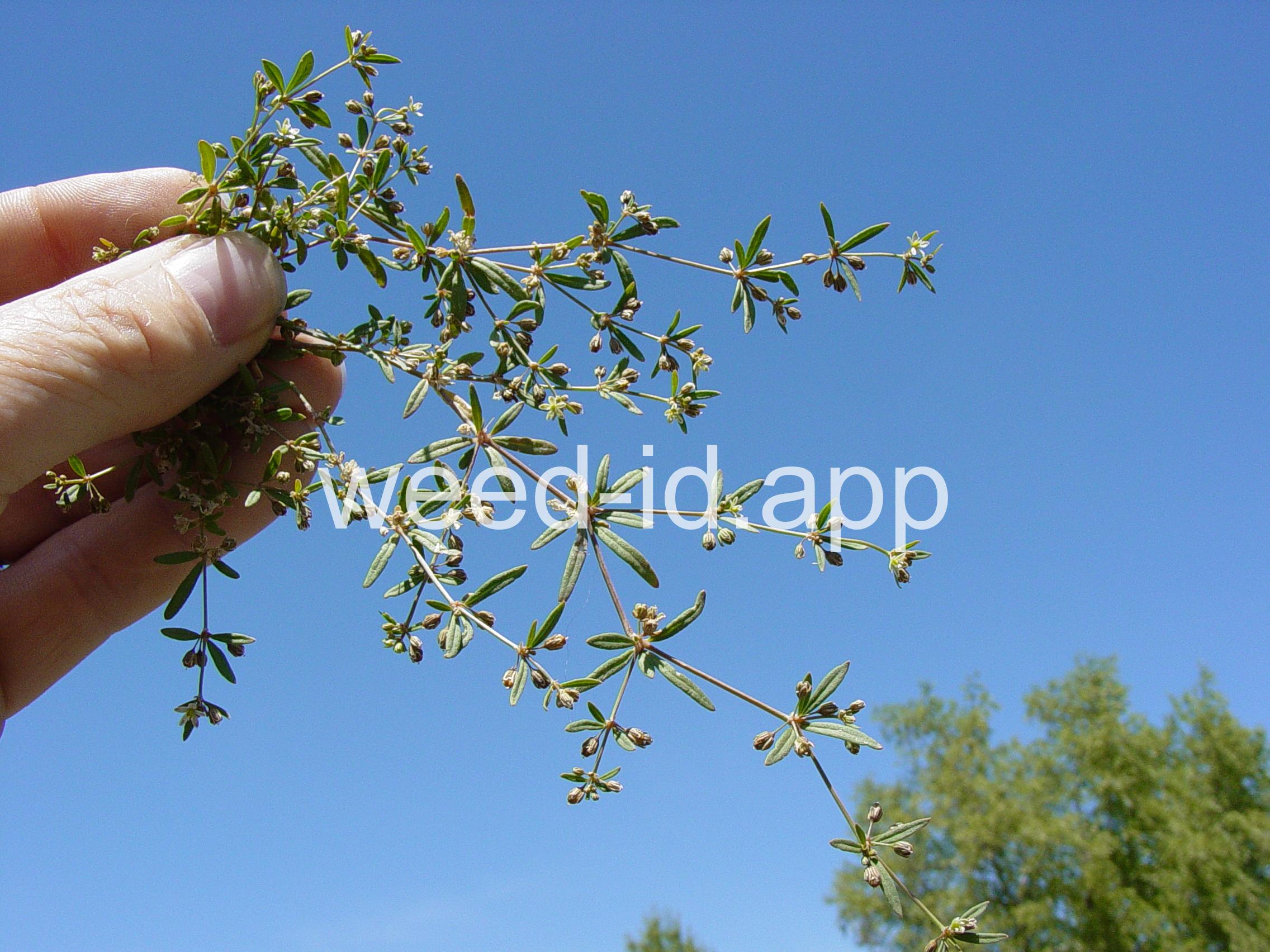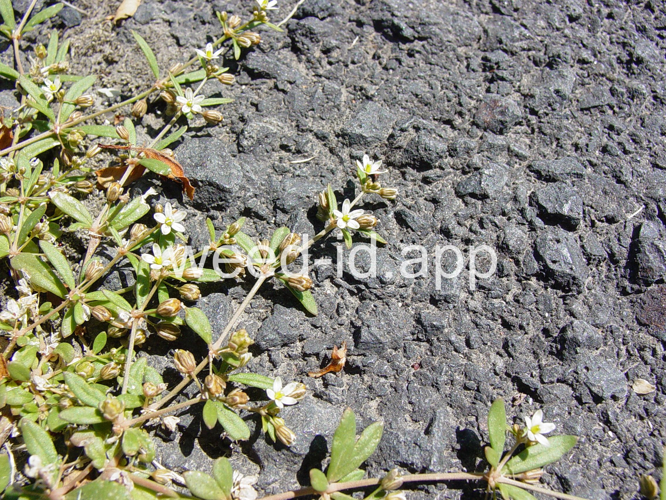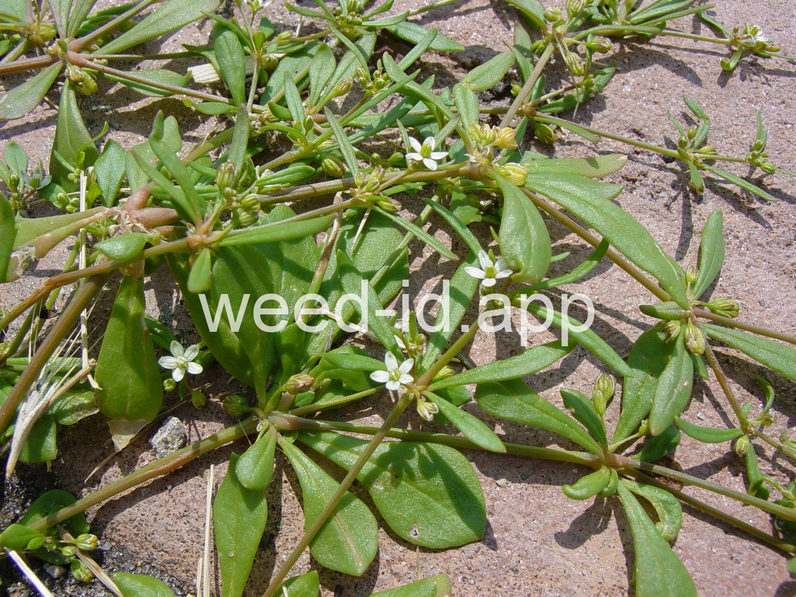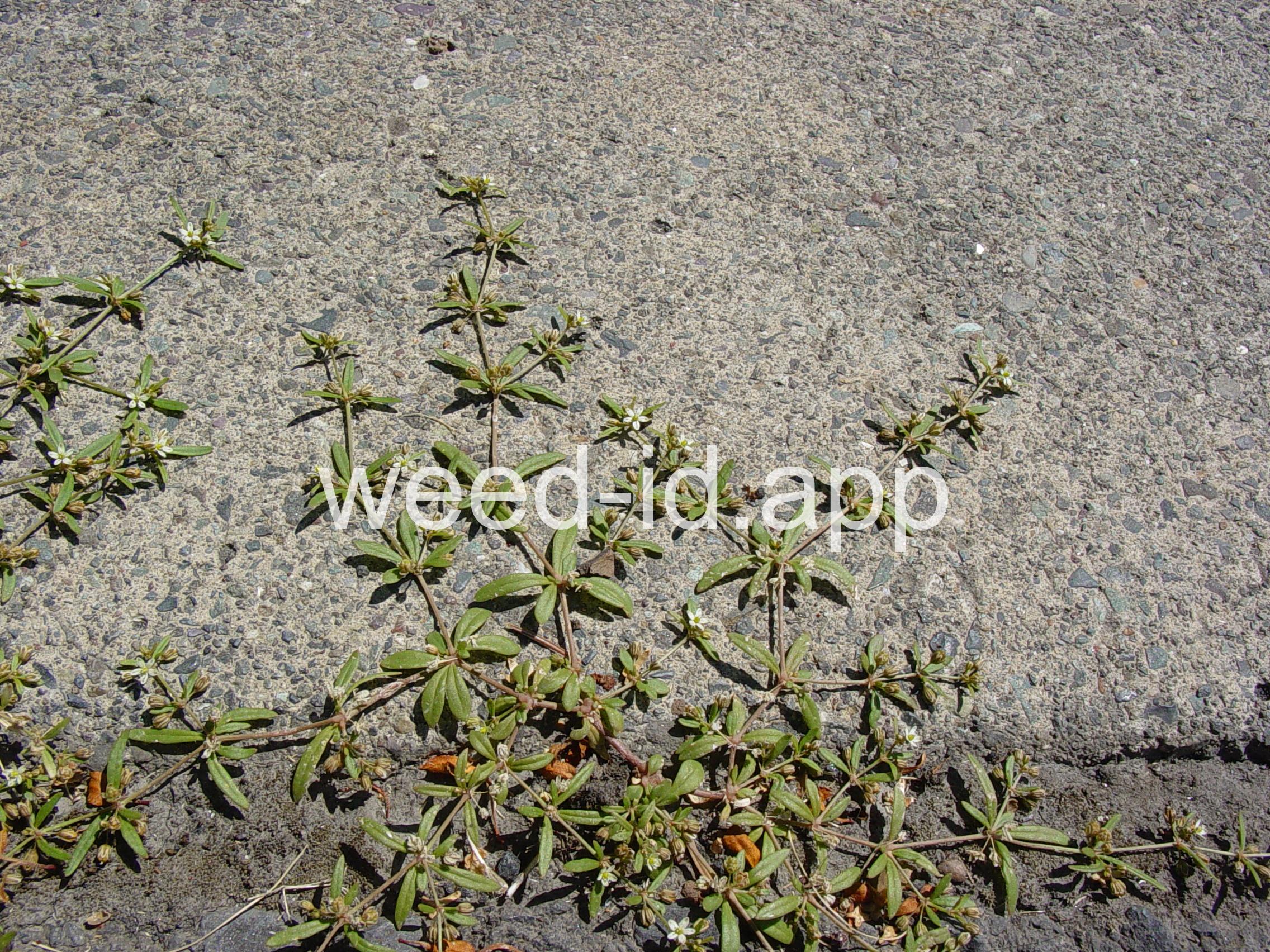 Plants of this species form circular prostrate mats, often in sandy soils. The flowers are very small with white petals, and the leaves are in whorls at each node.
