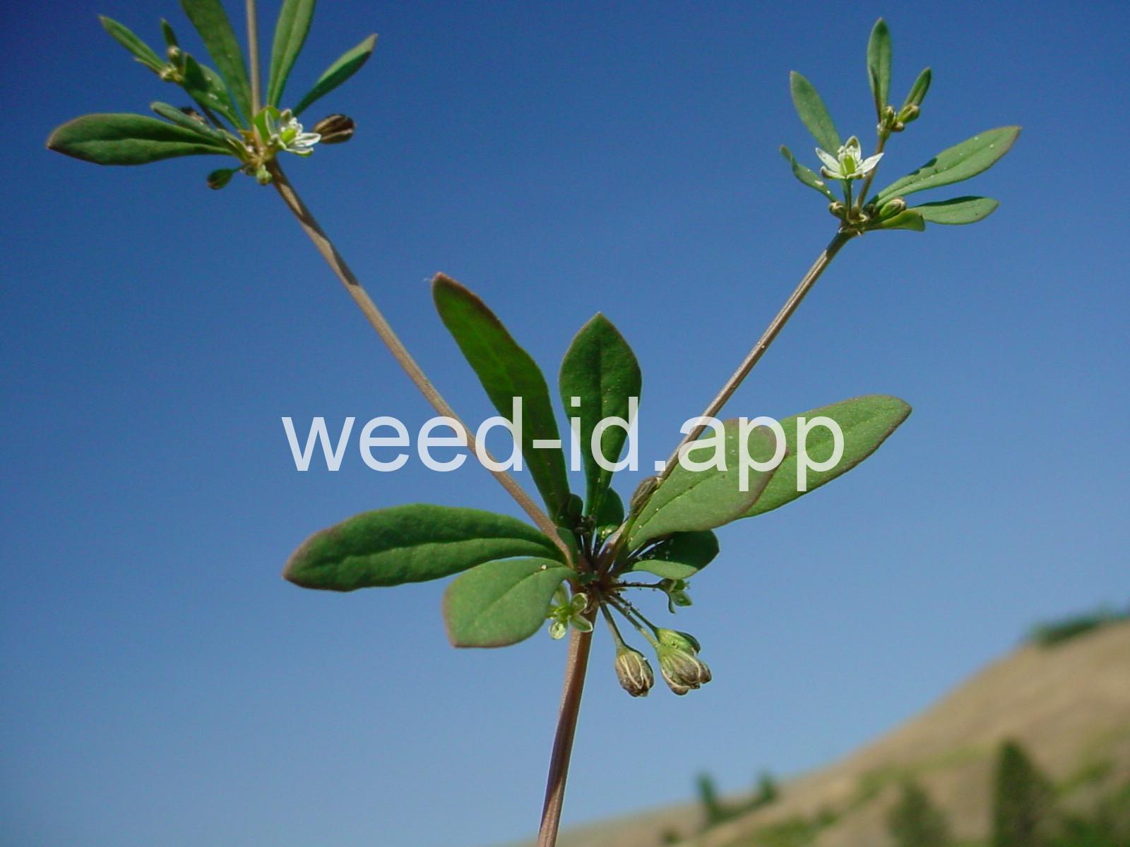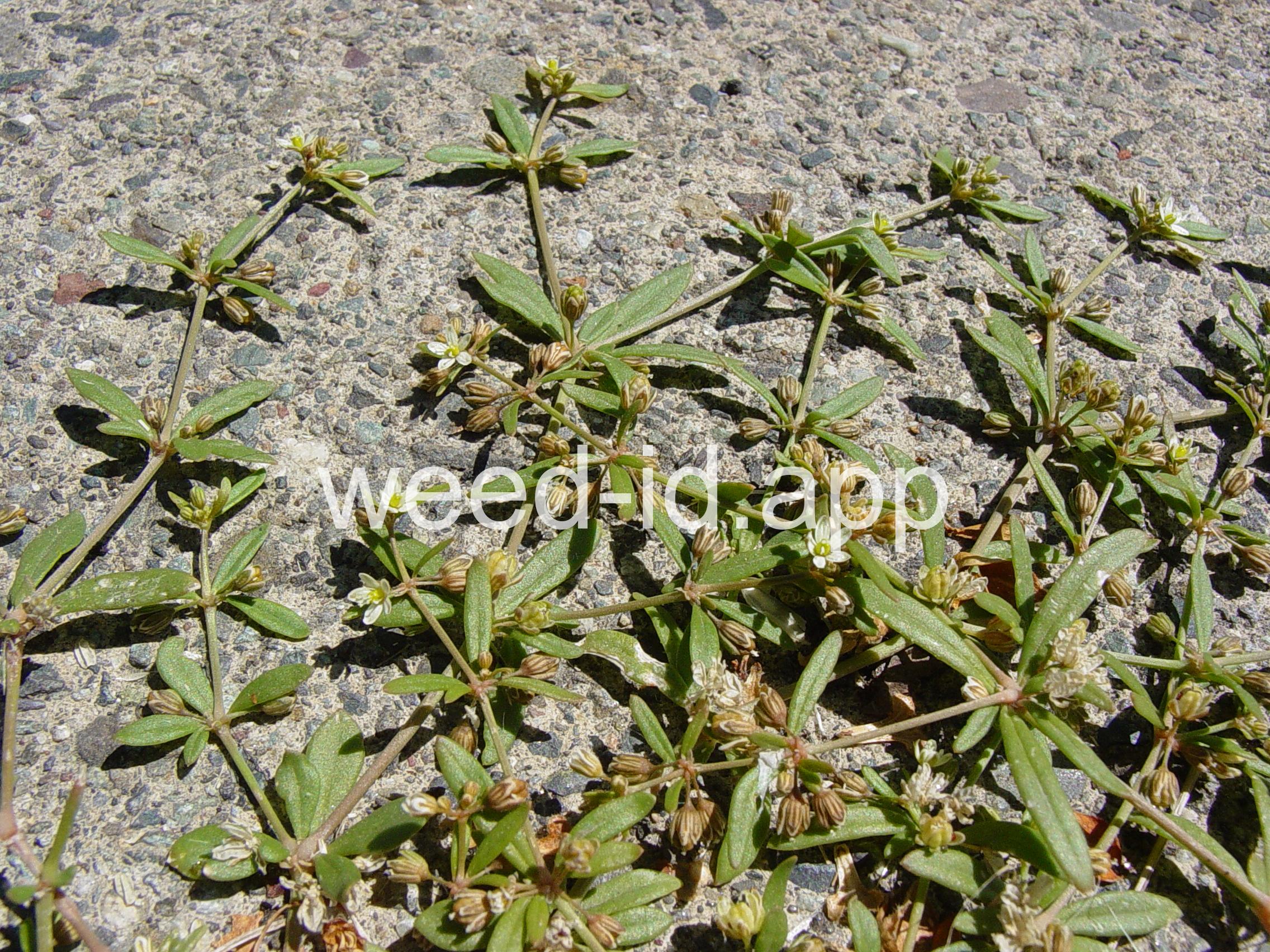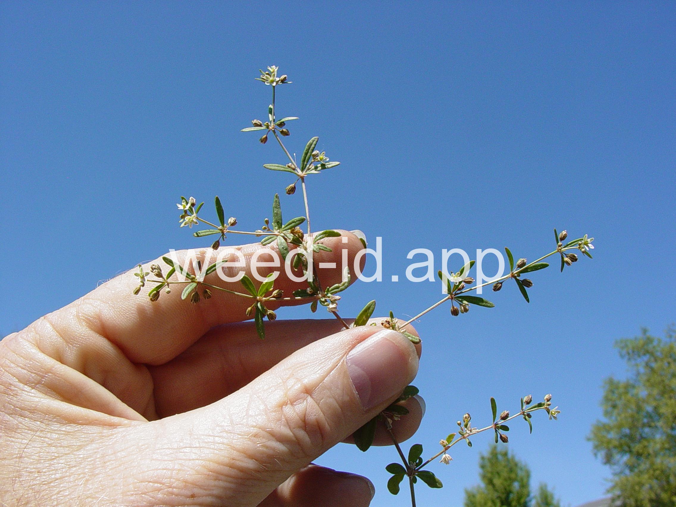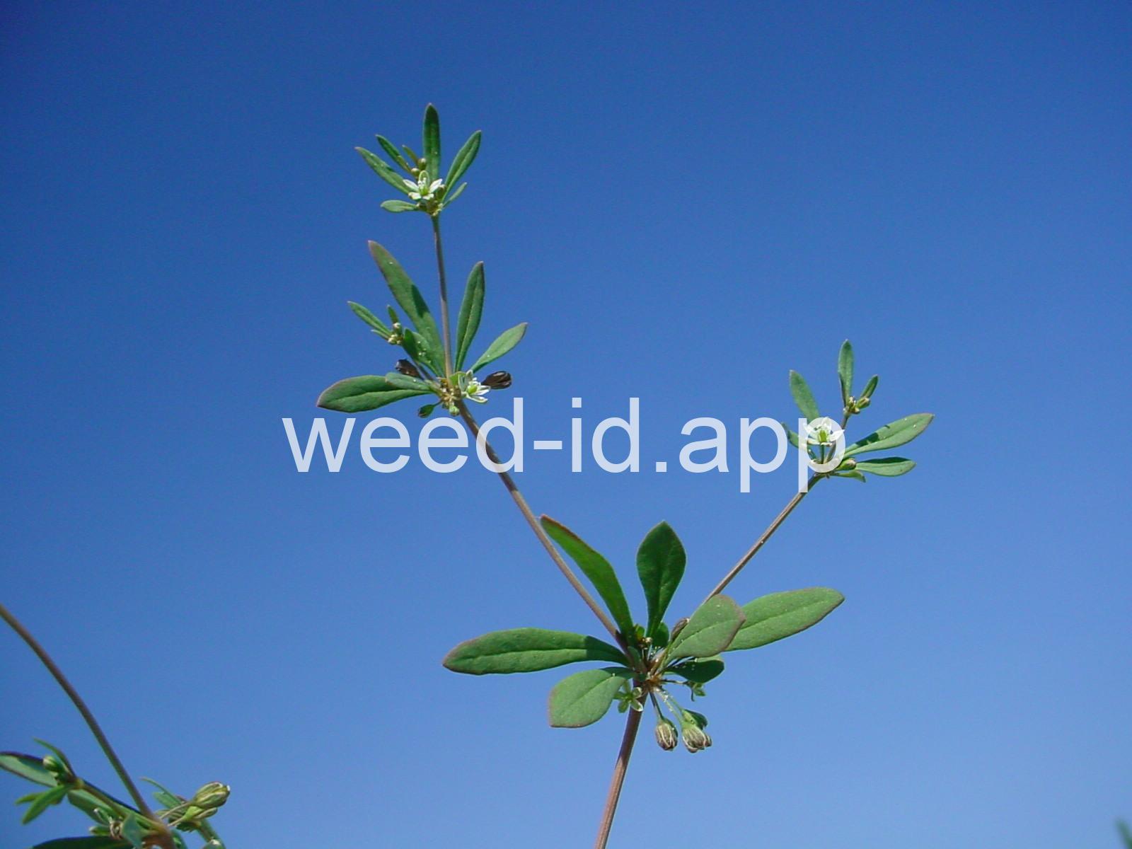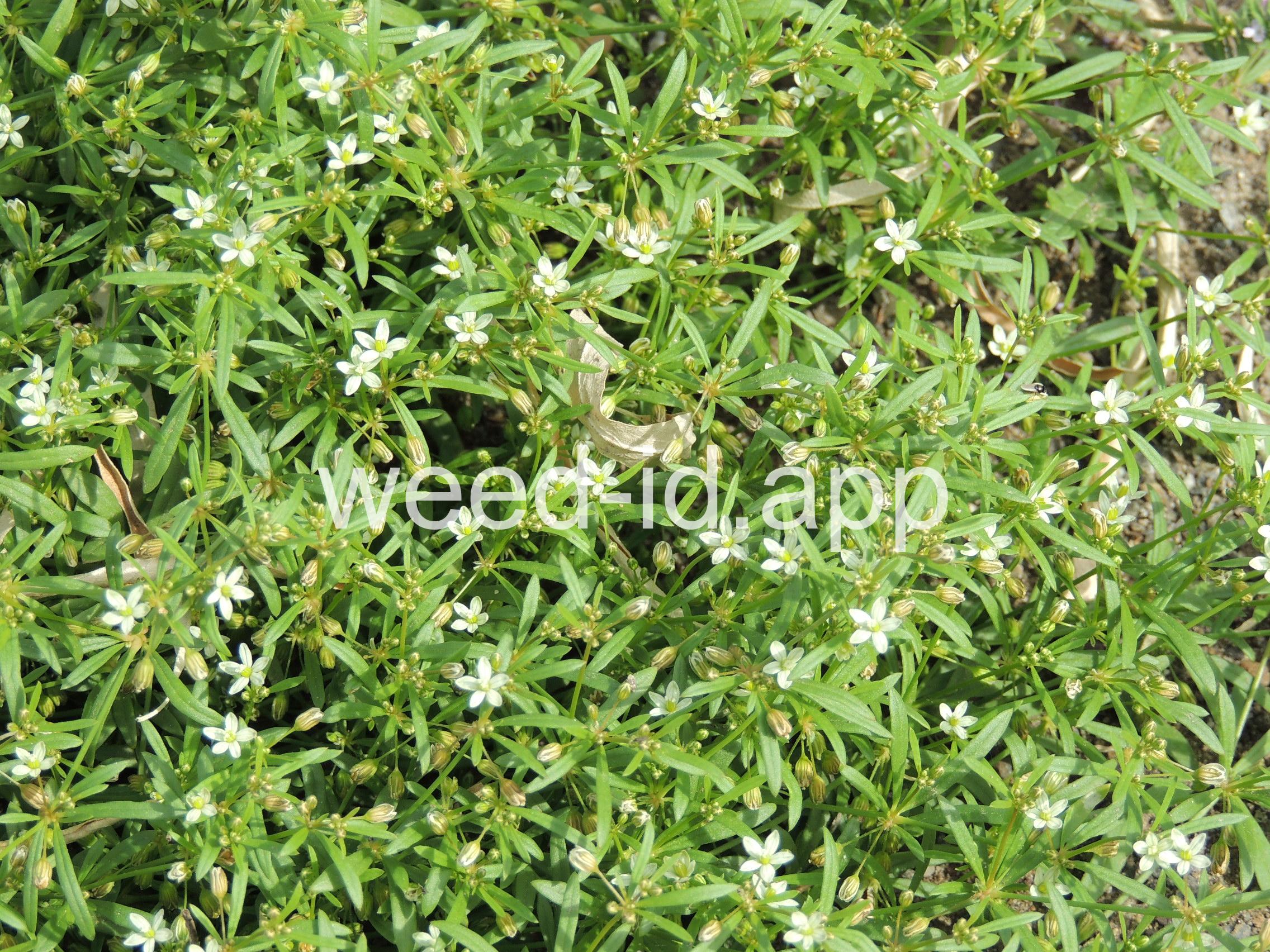 Plants of this species form circular prostrate mats, often in sandy soils. The flowers are very small with white petals, and the leaves are in whorls at each node.