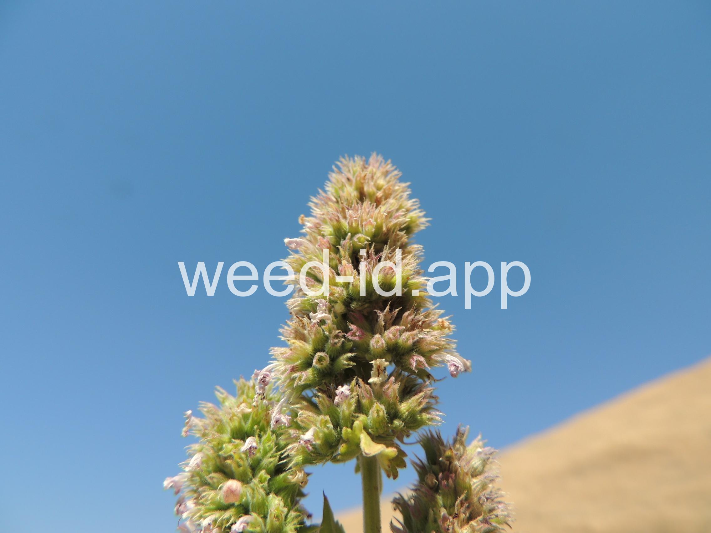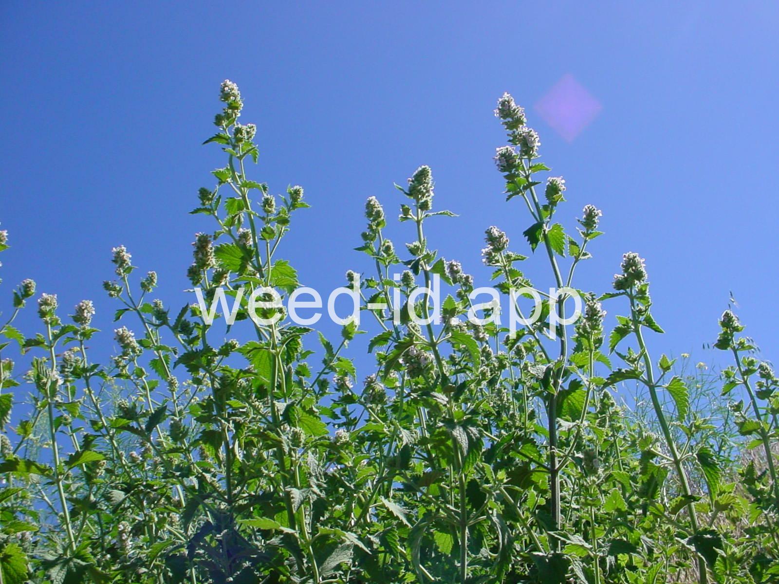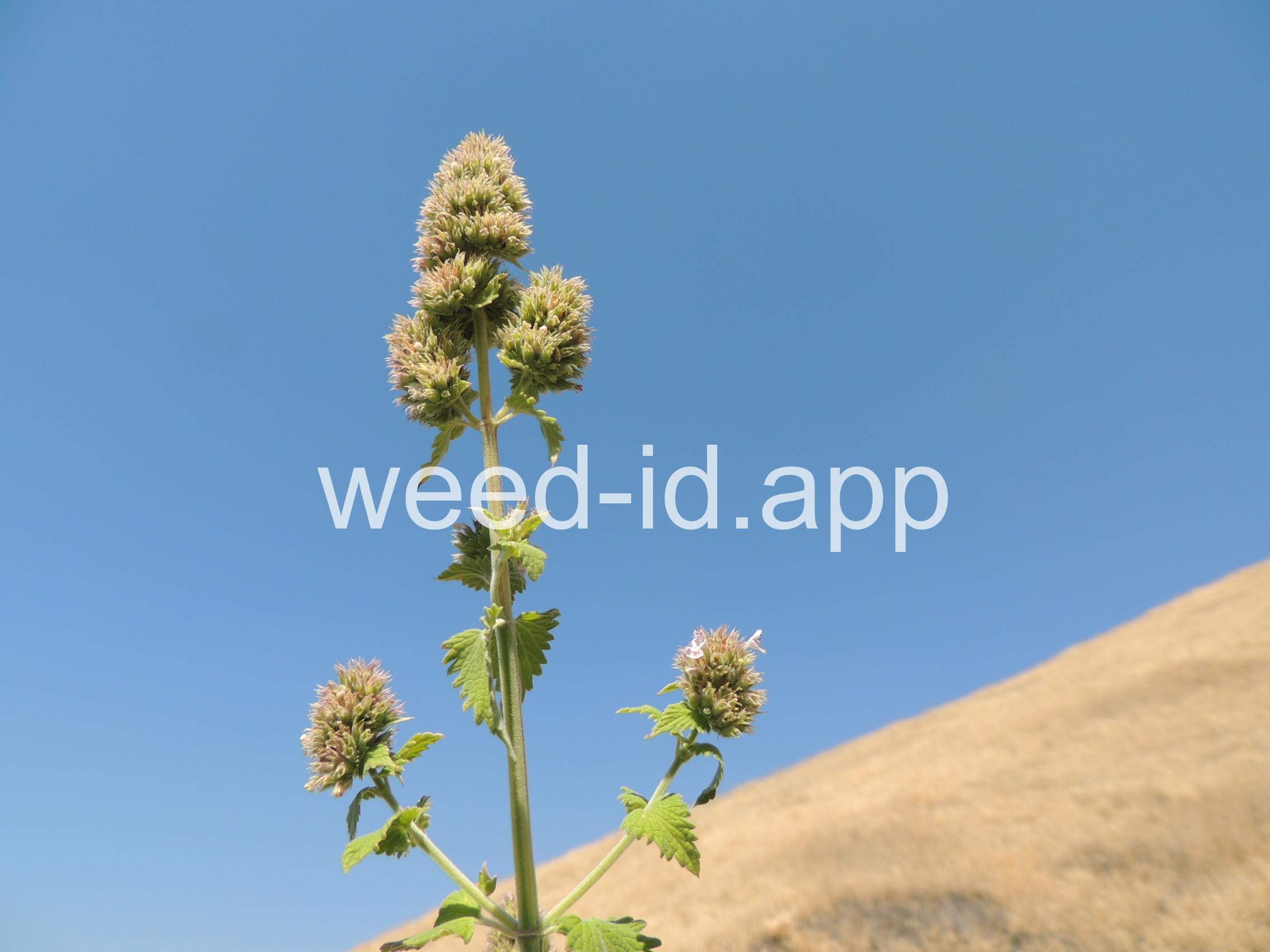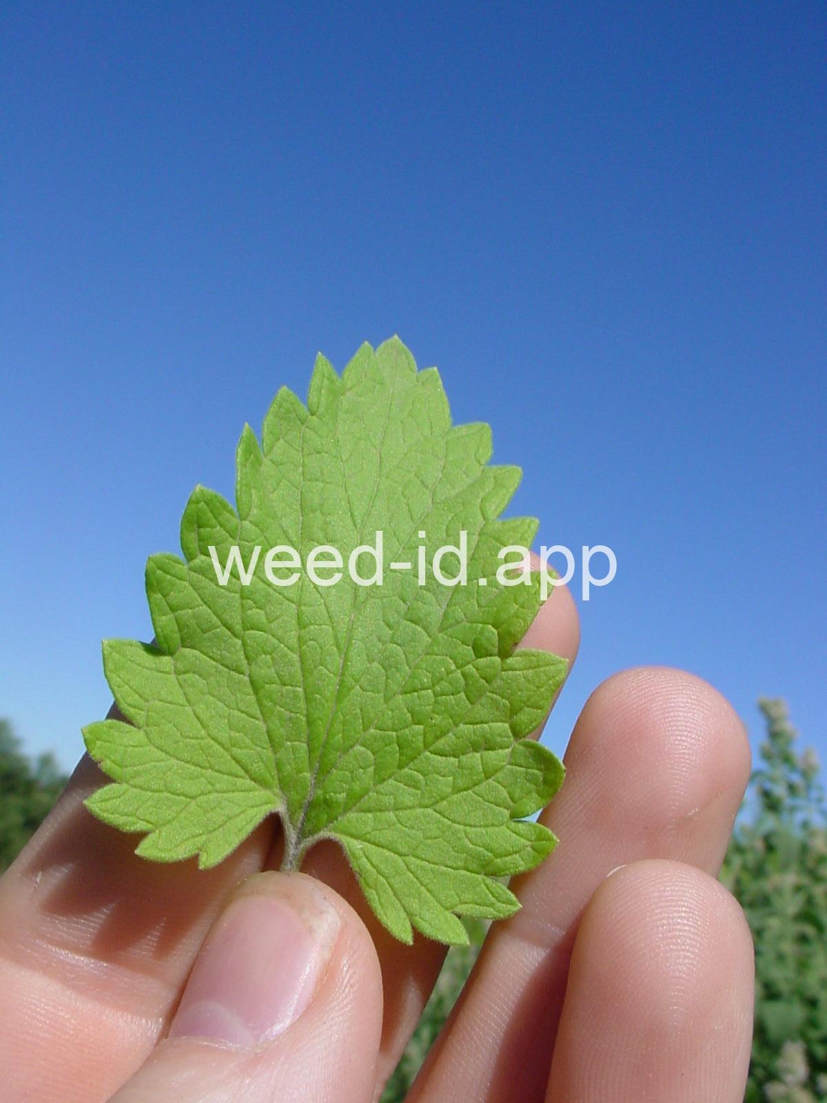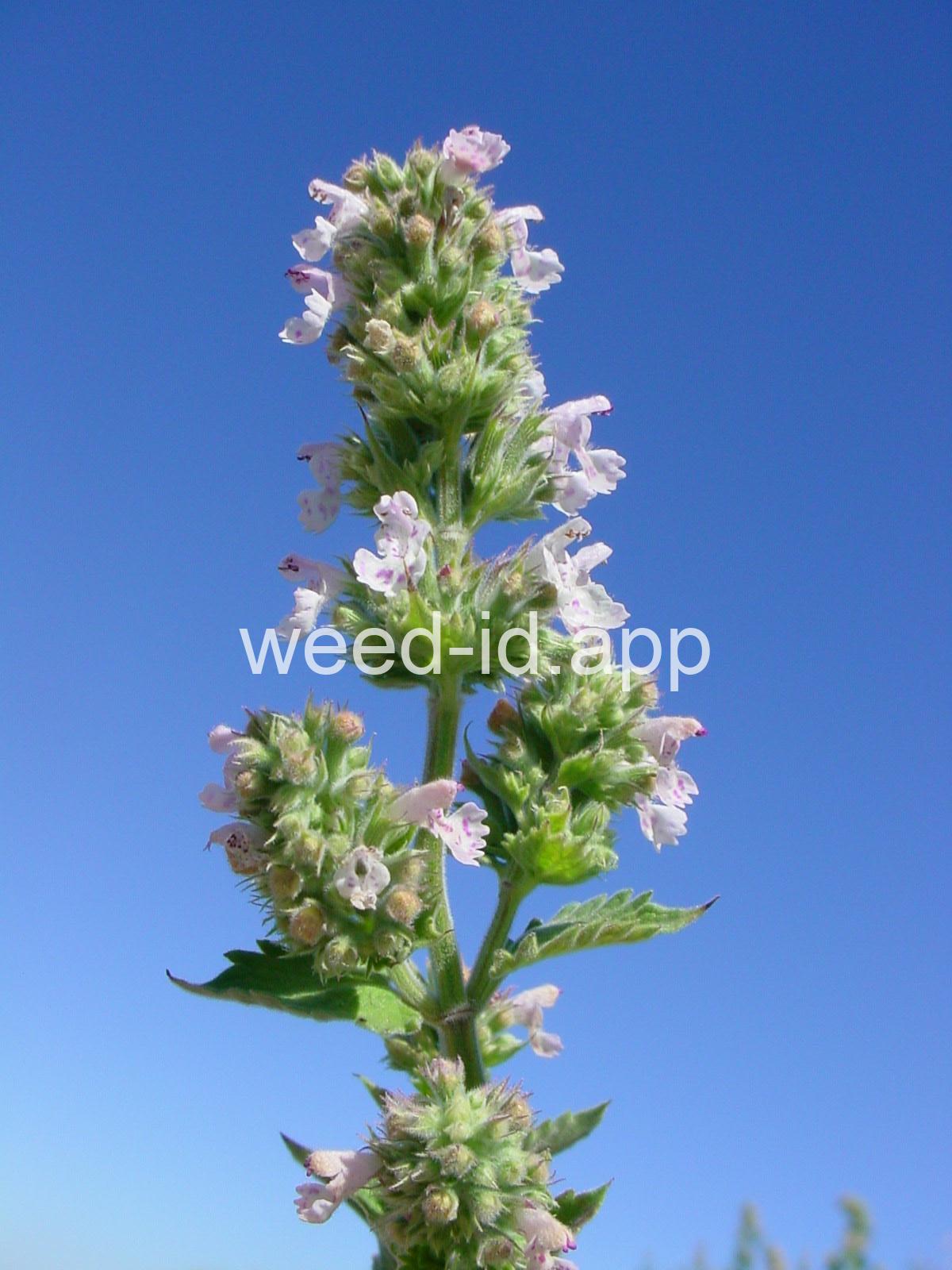 An aromatic perennial with leaves very similar in shape to those of stinging nettle. The volatile compounds of this plant have a strange, drug-like effect on members of the cat family. It is occasionally grown as a crop which is sold for tea or for stuffing cat toys. Note the prominent square stem typical of the mint family.