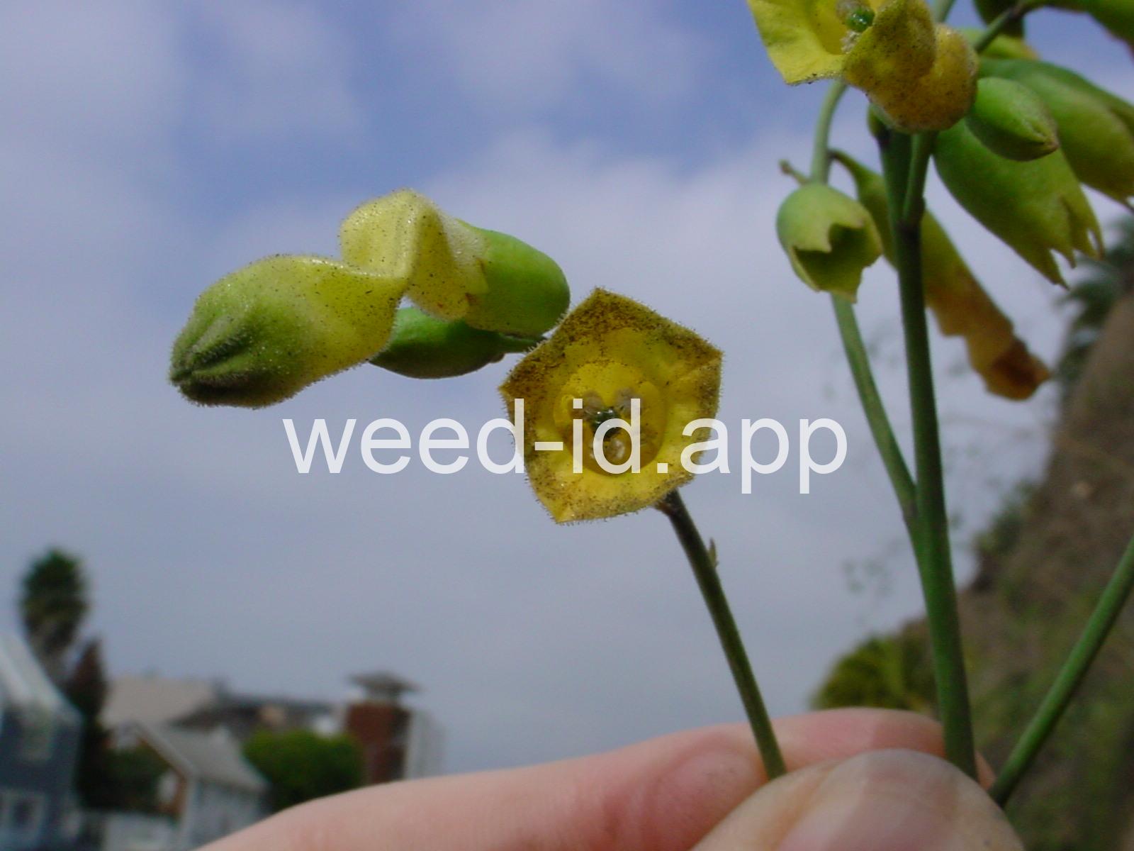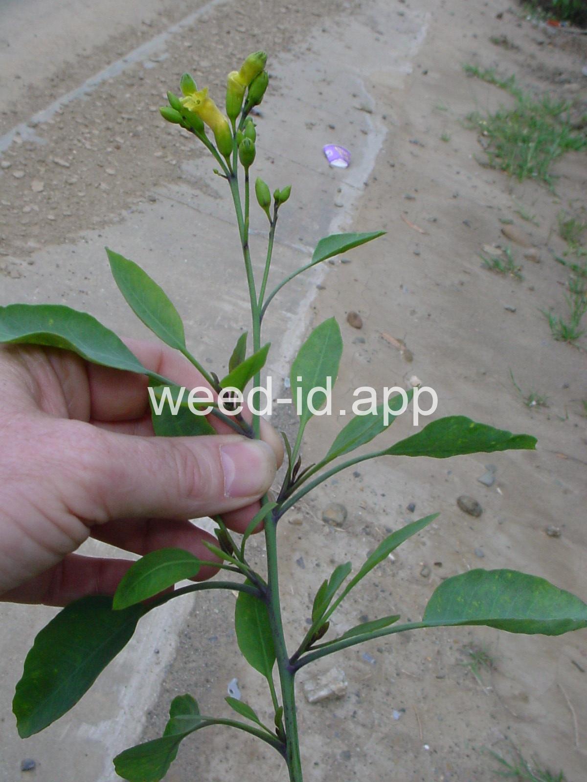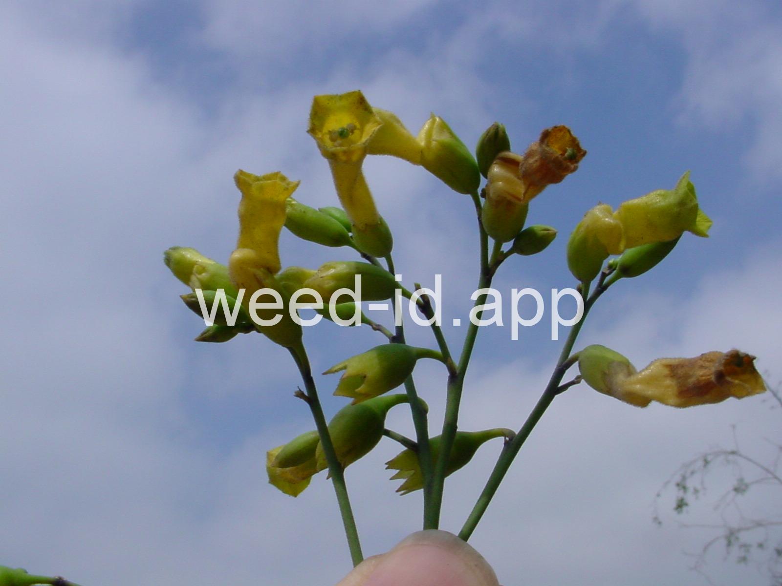 A small tree with hairless, egg-shaped leaves and narrow, tubular, yellow-green flowers. This species was imported from South America. The leaves and young shoots are toxic to all classes of livestock.