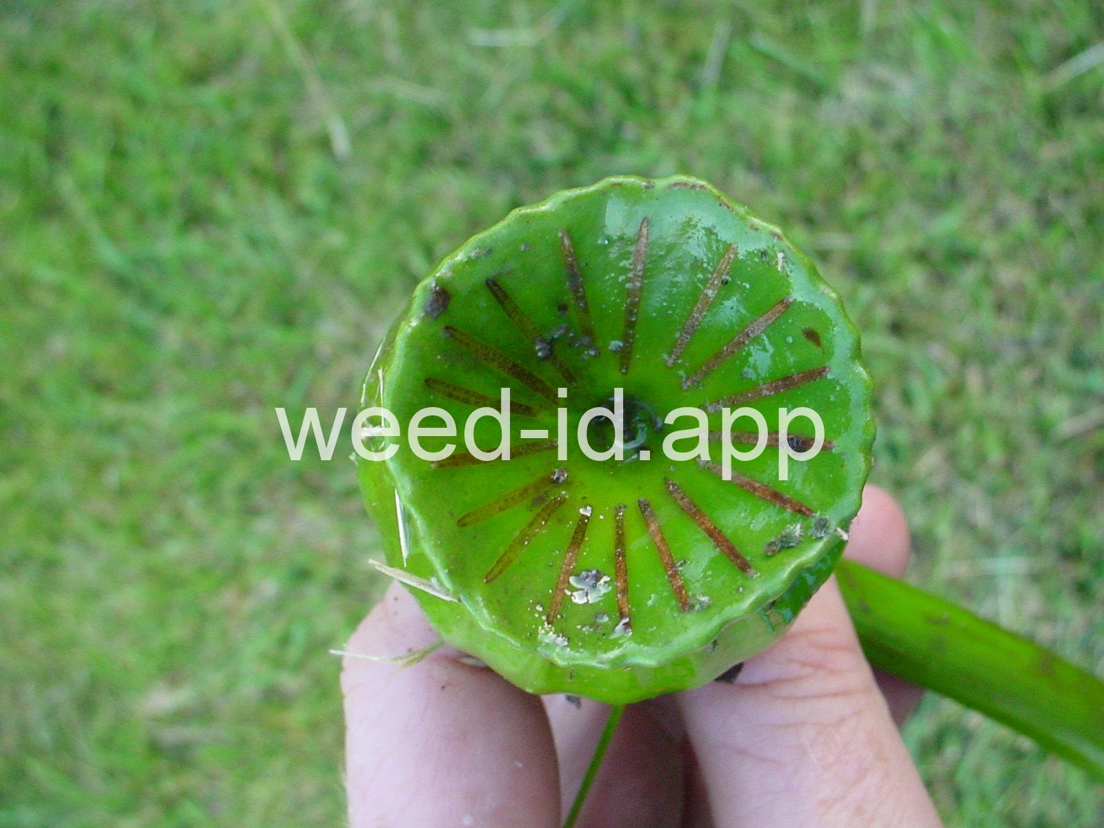 The leaves with two large lobes at the base, fruit a many seeded capsule with a flat hat-like top. Weed references may also include N. advena which has a more eastern distribution.