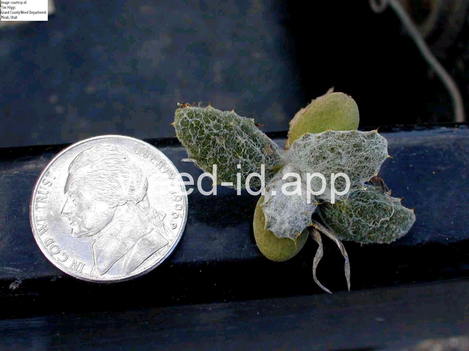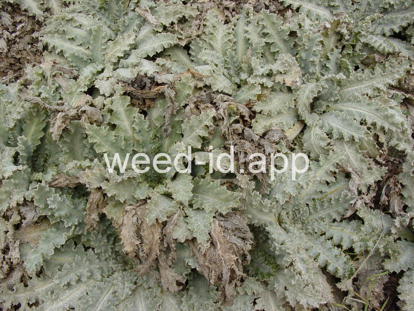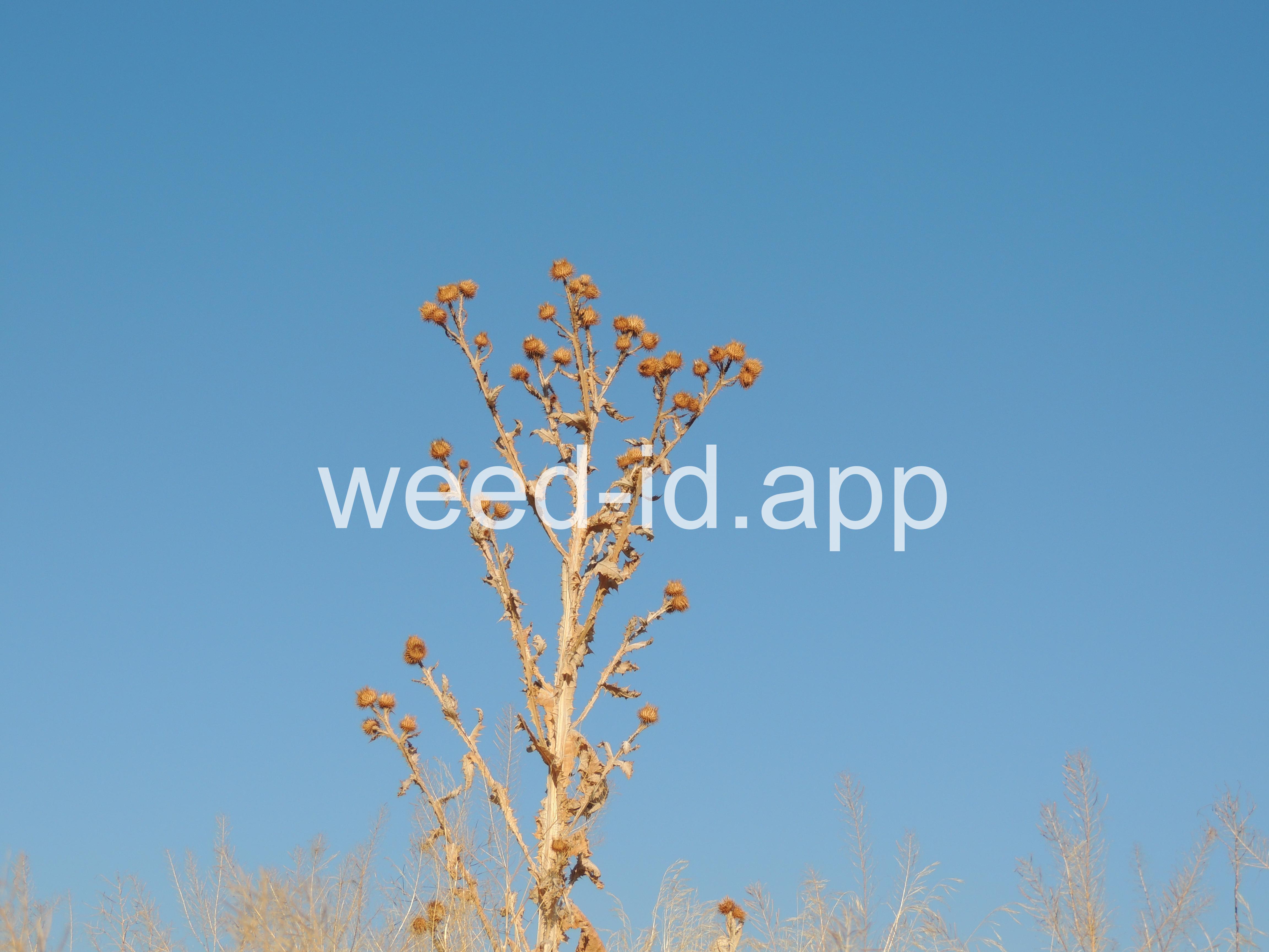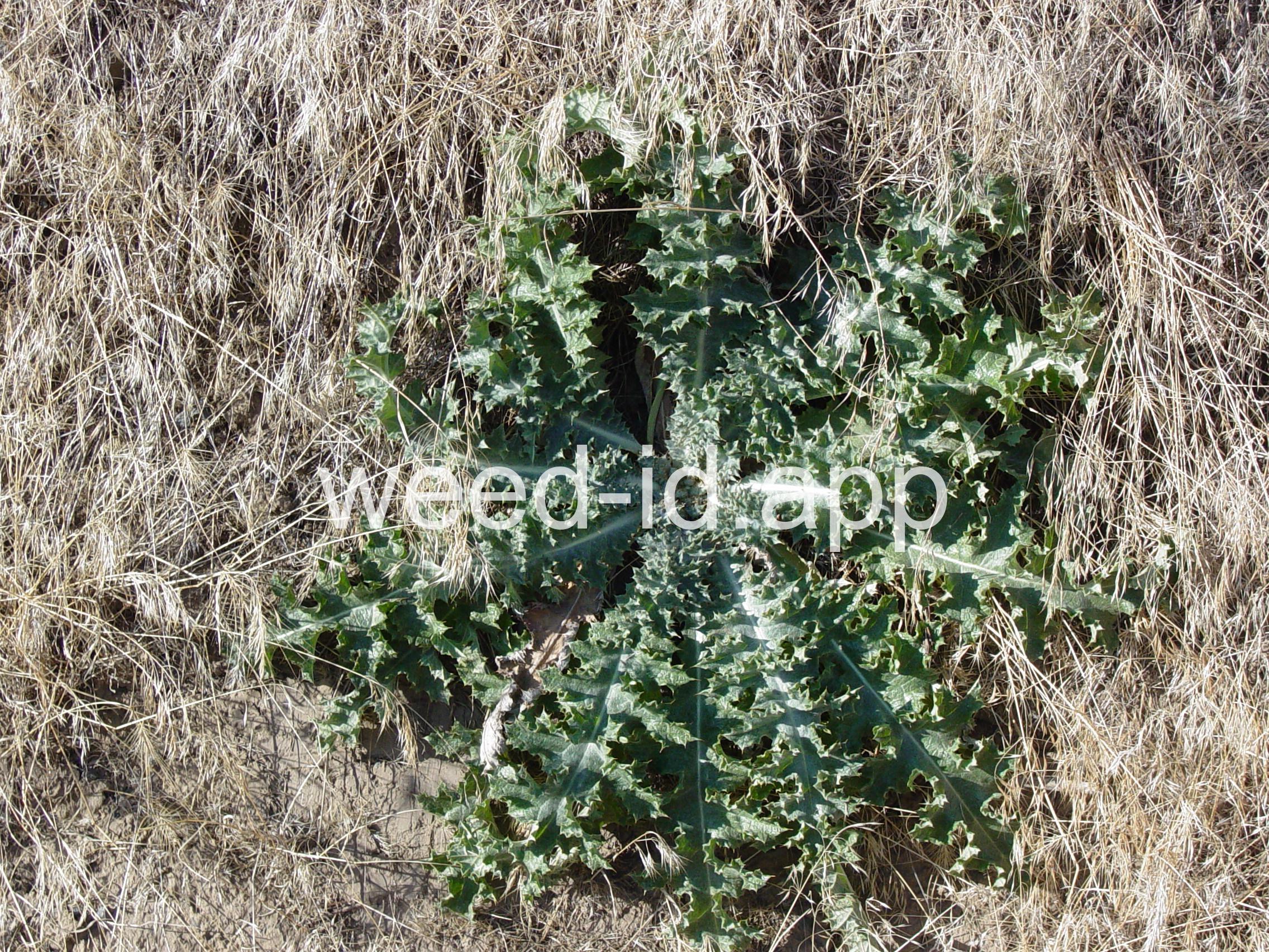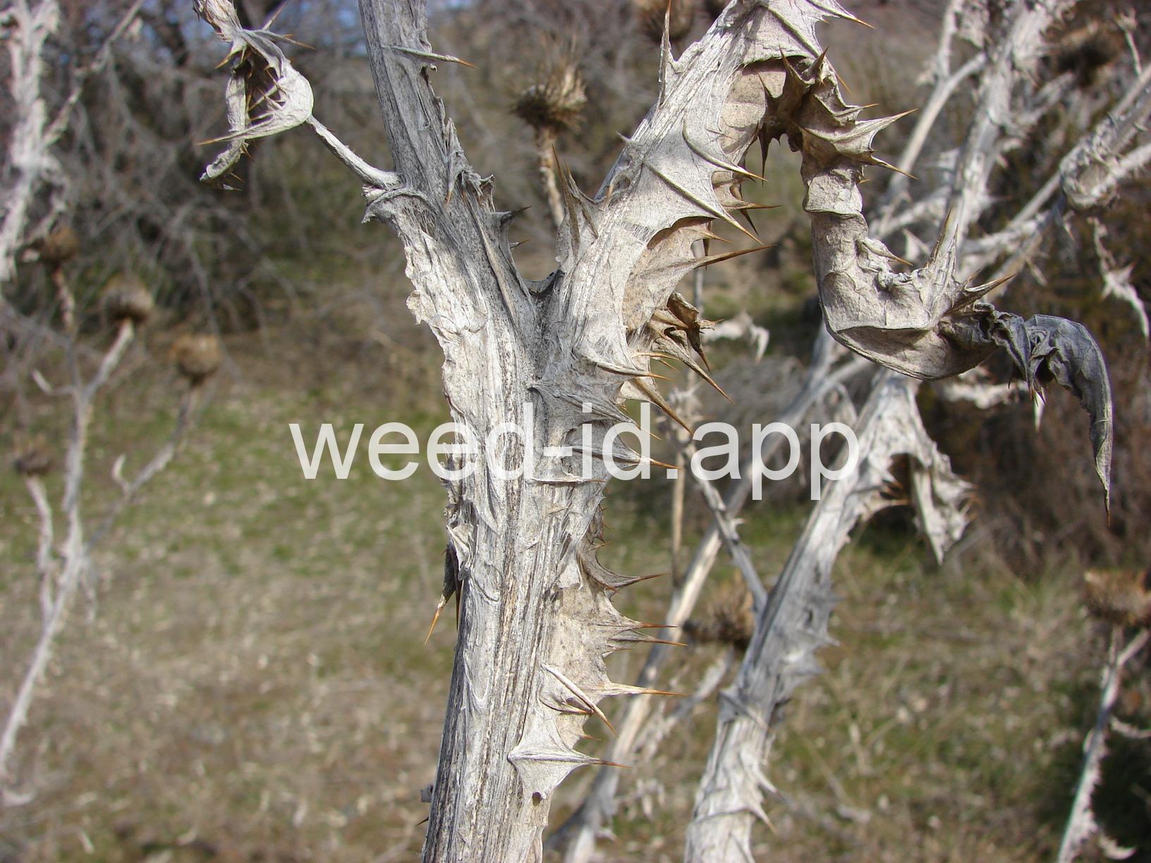 The scientific name comes from the Latin `onos` for donkey and refers to the supposed effect of causing flatulence in donkeys. (Make up your own common name!) An enormous biennial with rosettes to 6 feet wide and plants 6-12 feet tall. The leaves and stems are covered with white, cobwebby to felty hairs, and the stems have prominent, spiny wings. This species can grow in a great variety of soils and sites. The photos on page 225 of the California Growers Guide are actually bull thistle (Cirsium vulgare); however, the text on the back seems to be accurate for Scotch thistle.