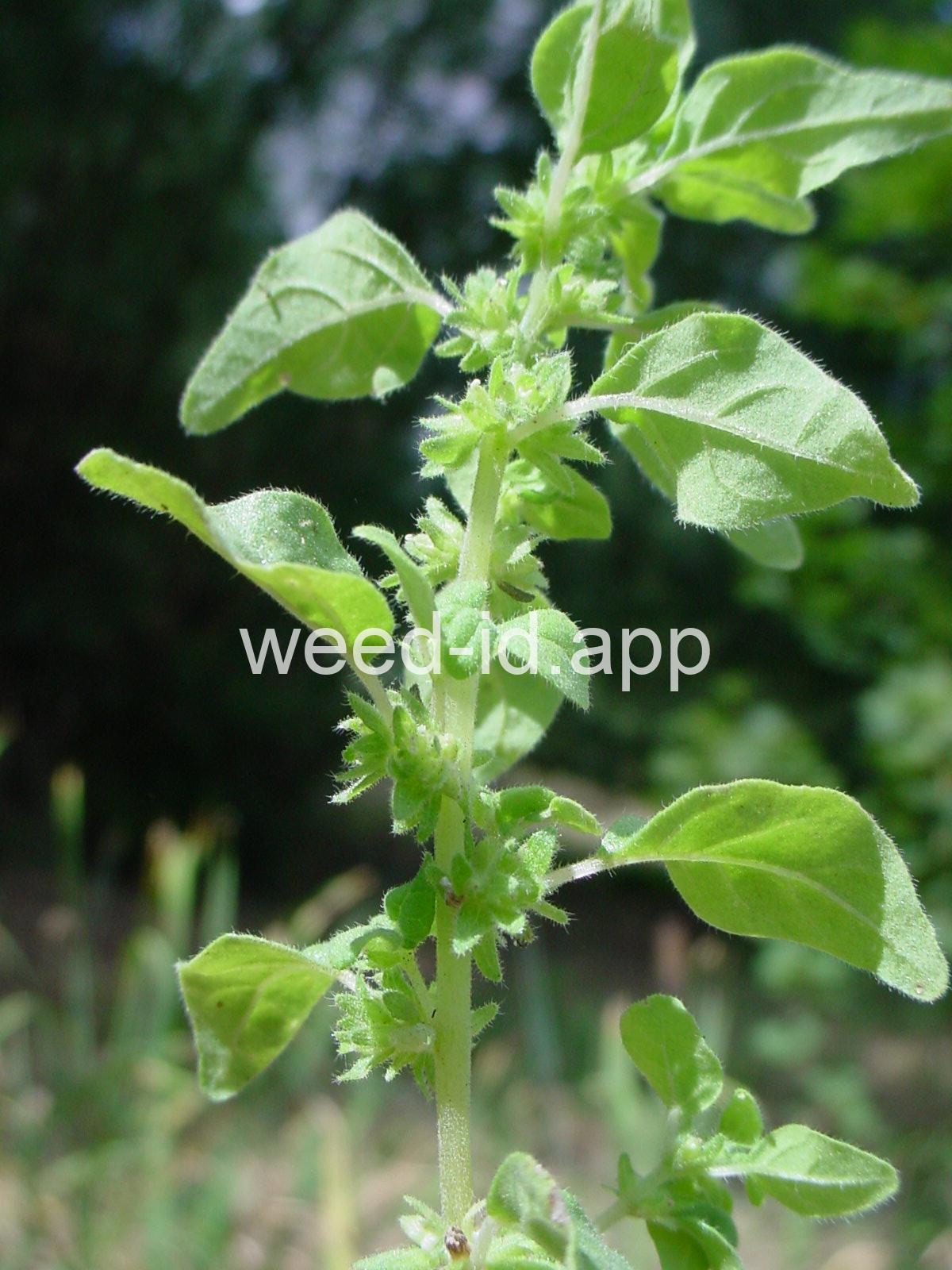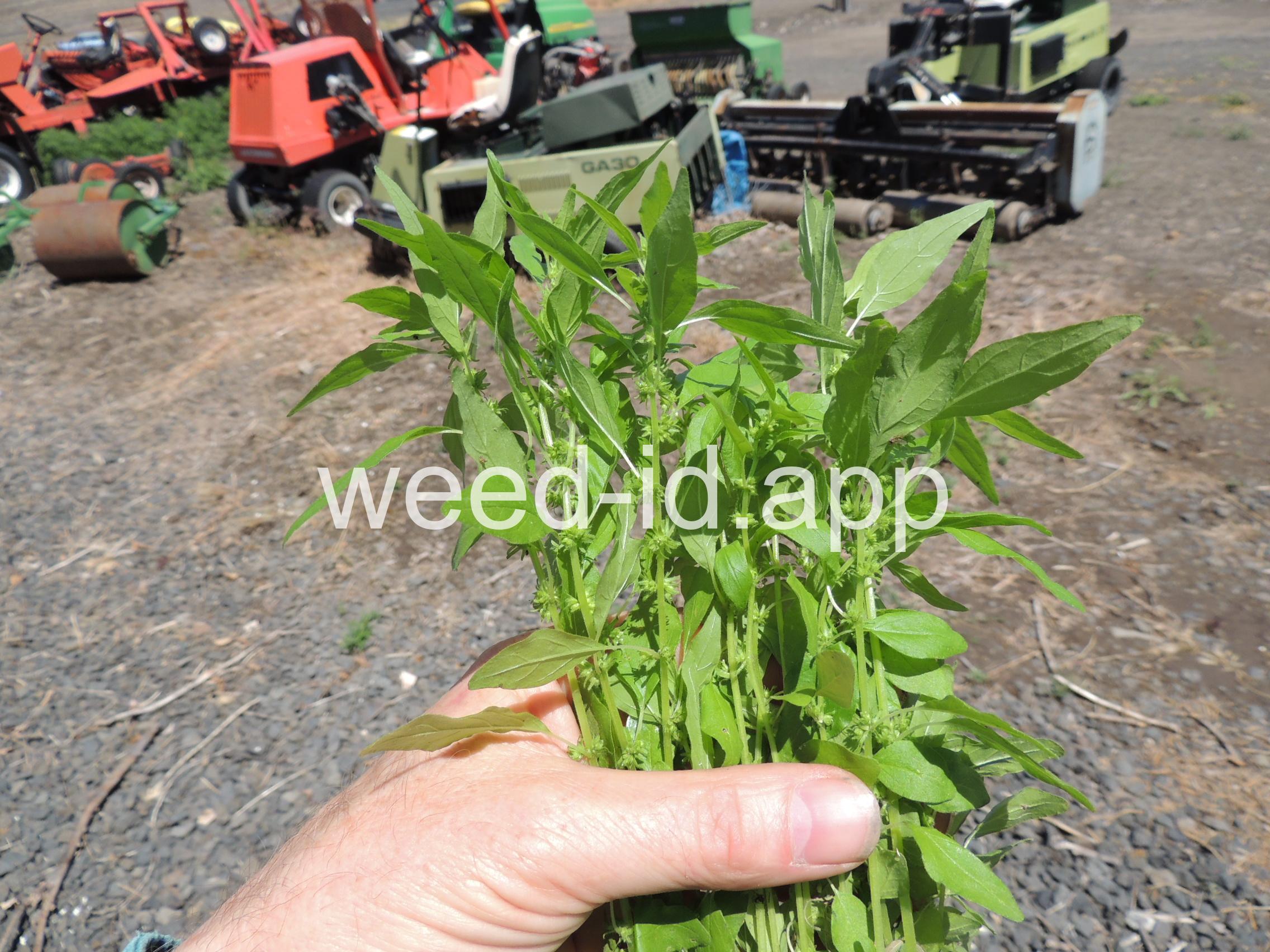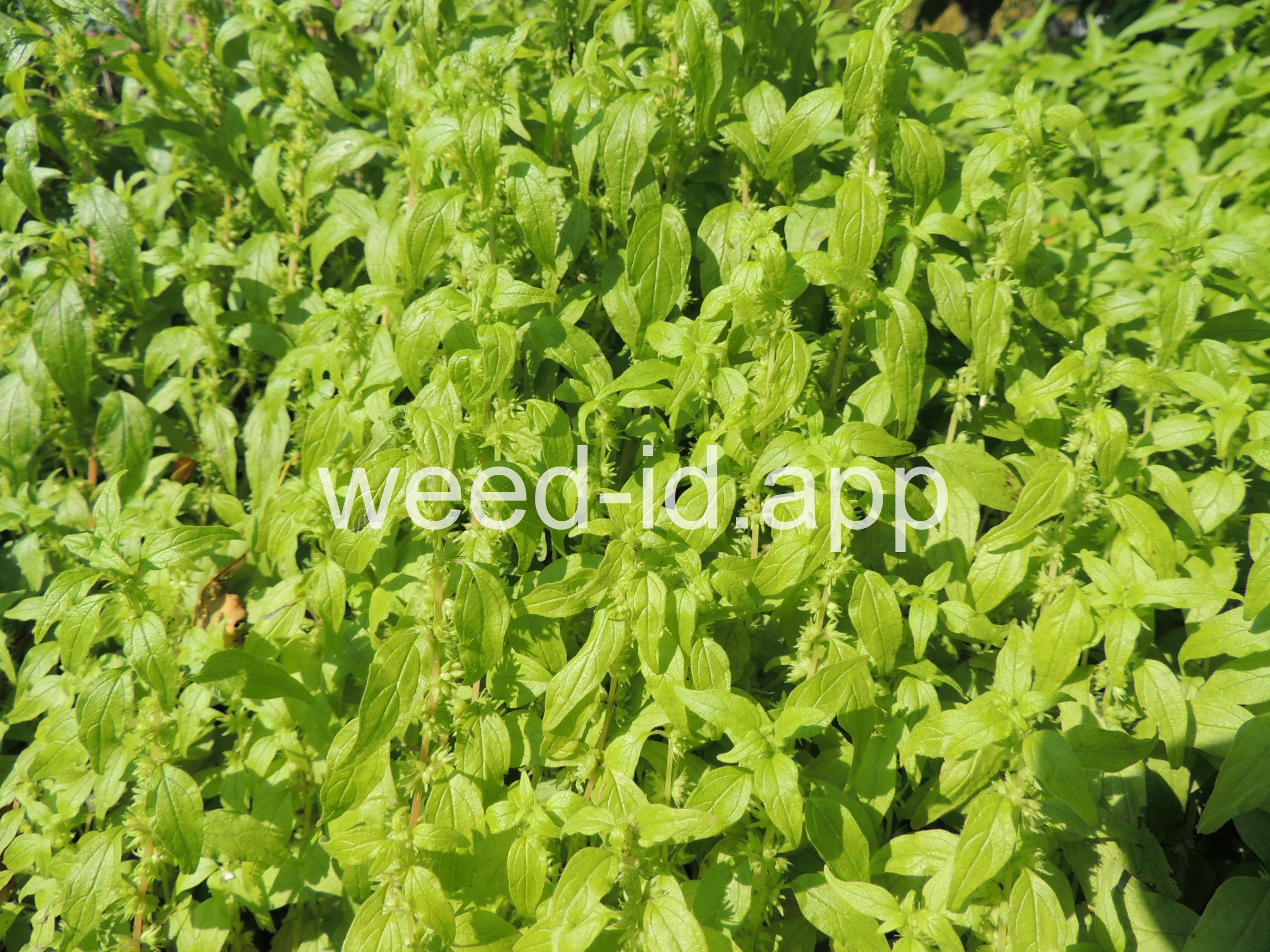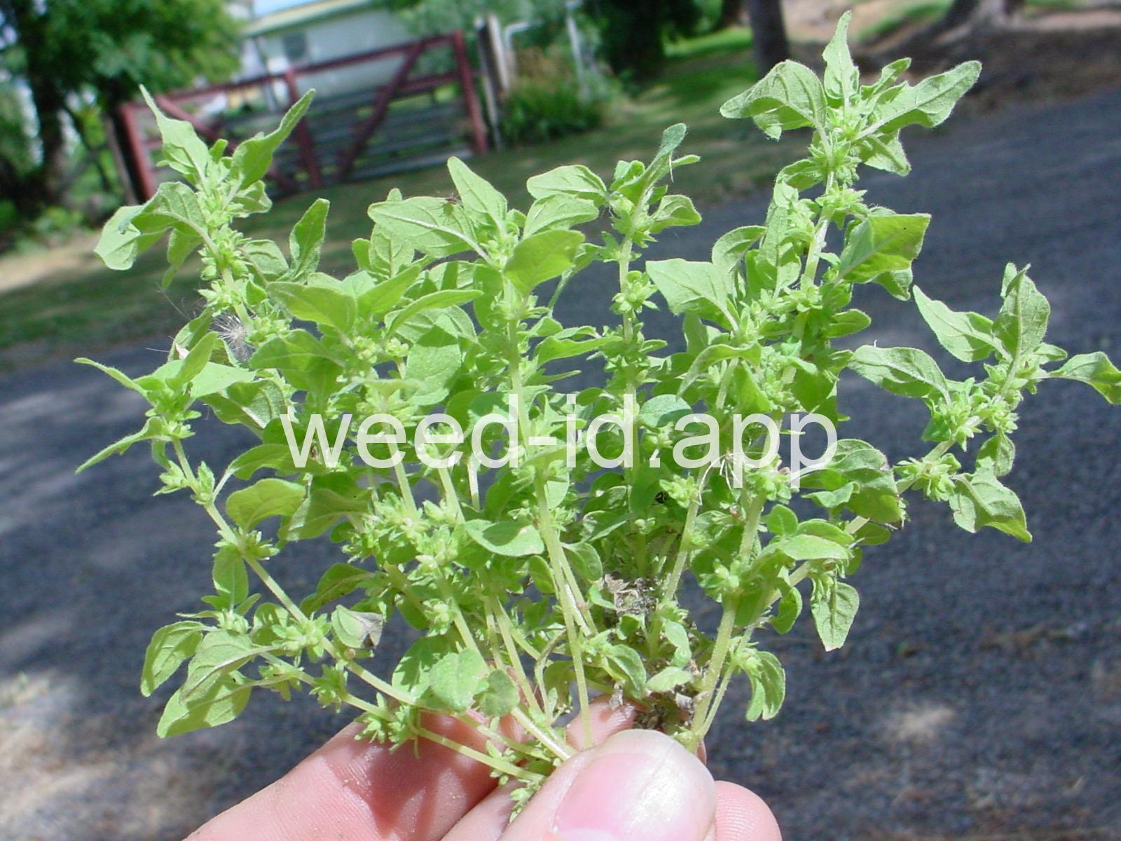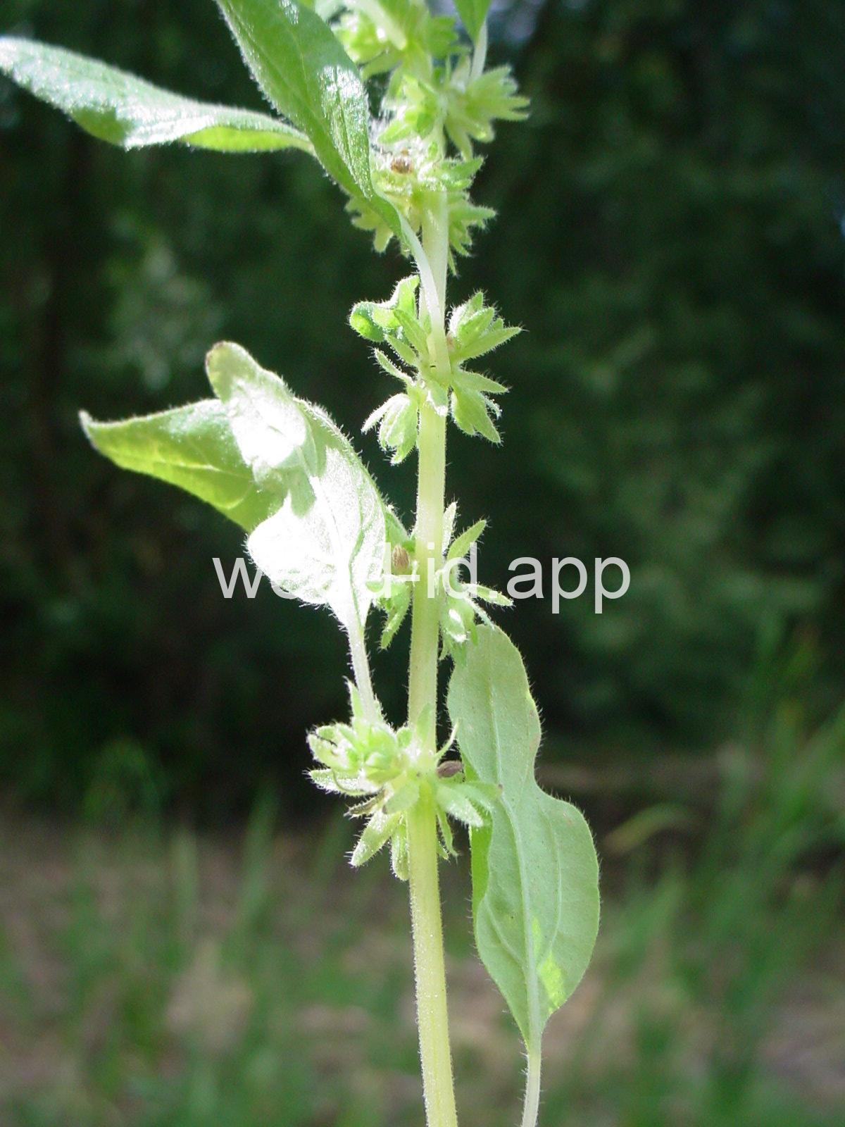 A small annual with clusters of greenish to brownish flowers in the axils of the alternate leaves. The flowers are subtended by narrow, green bracts longer than the flowers. Usually in shaded areas.