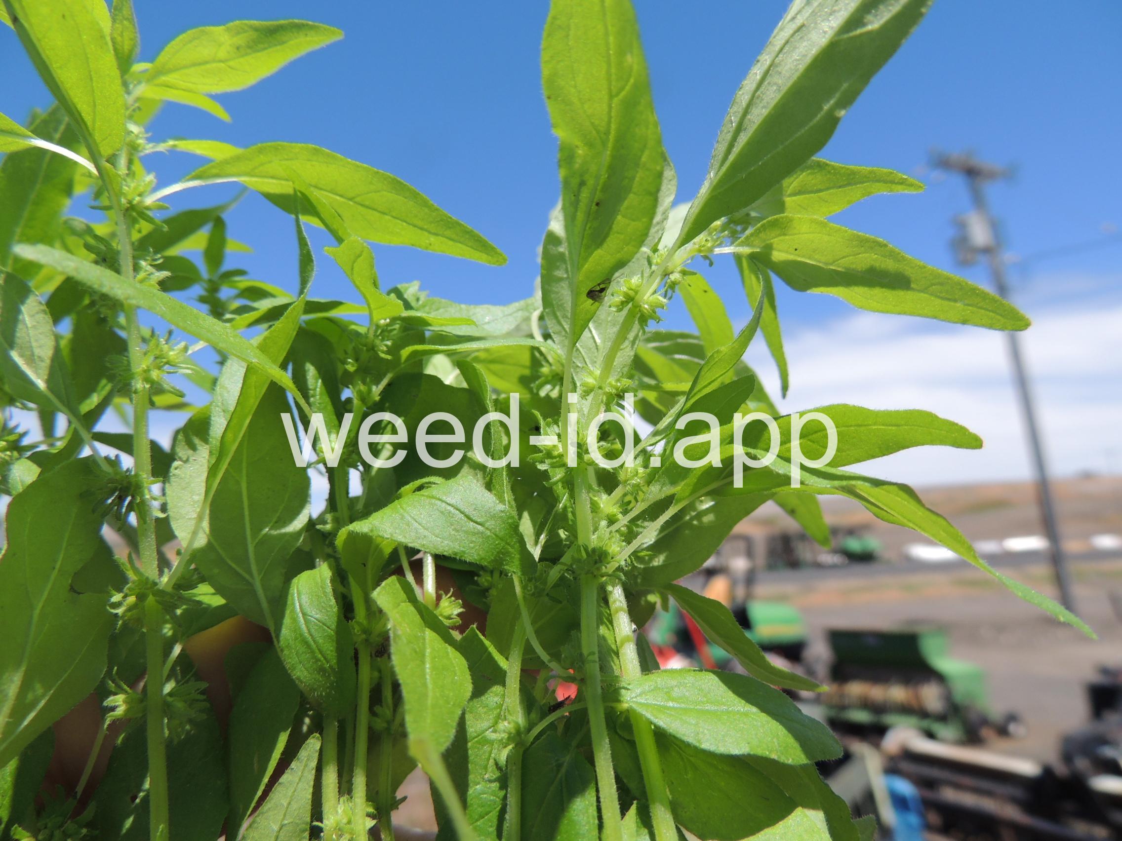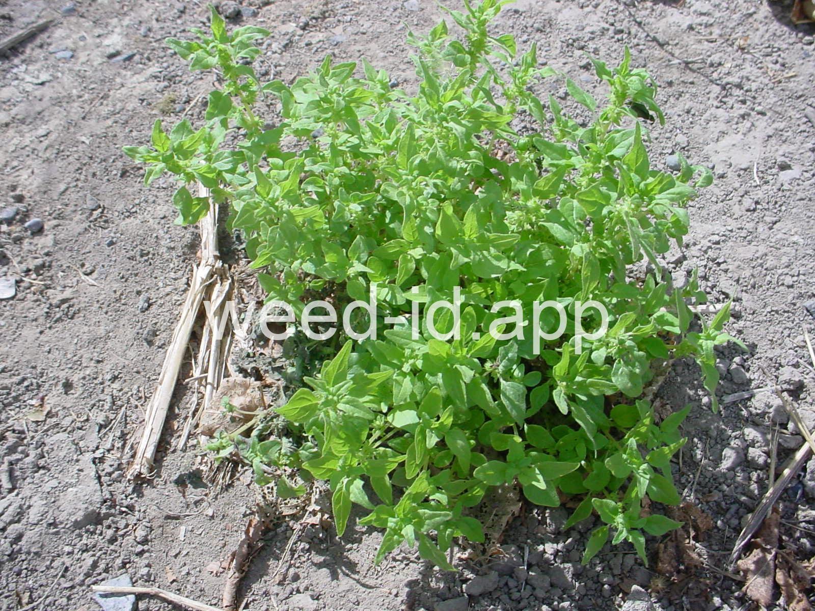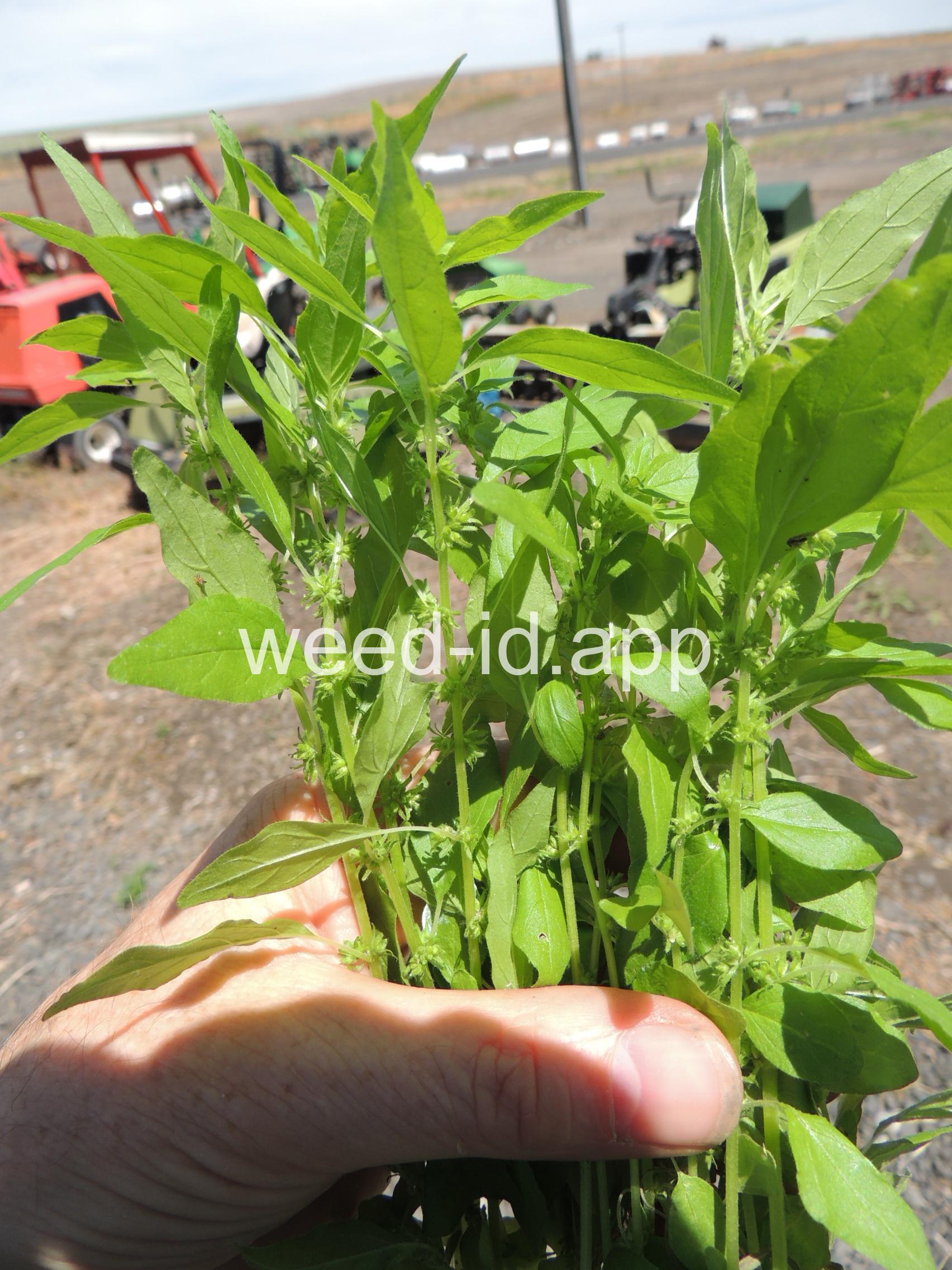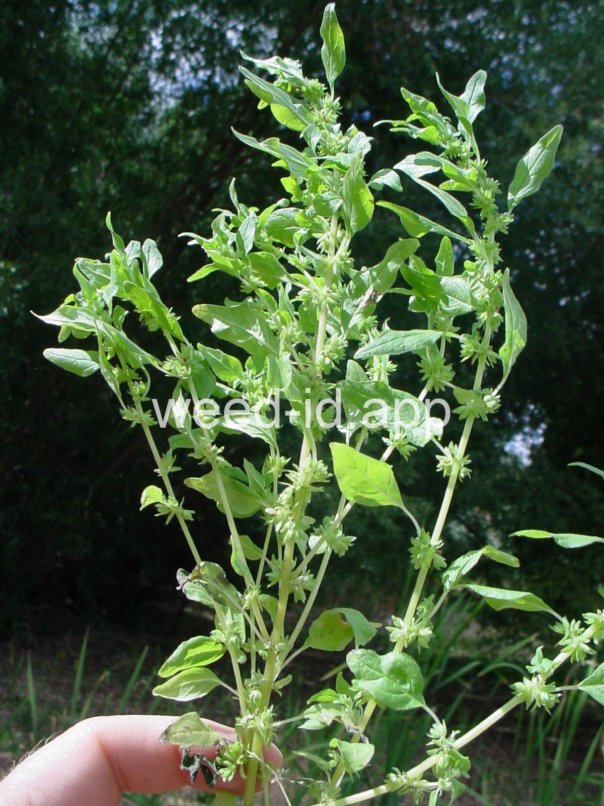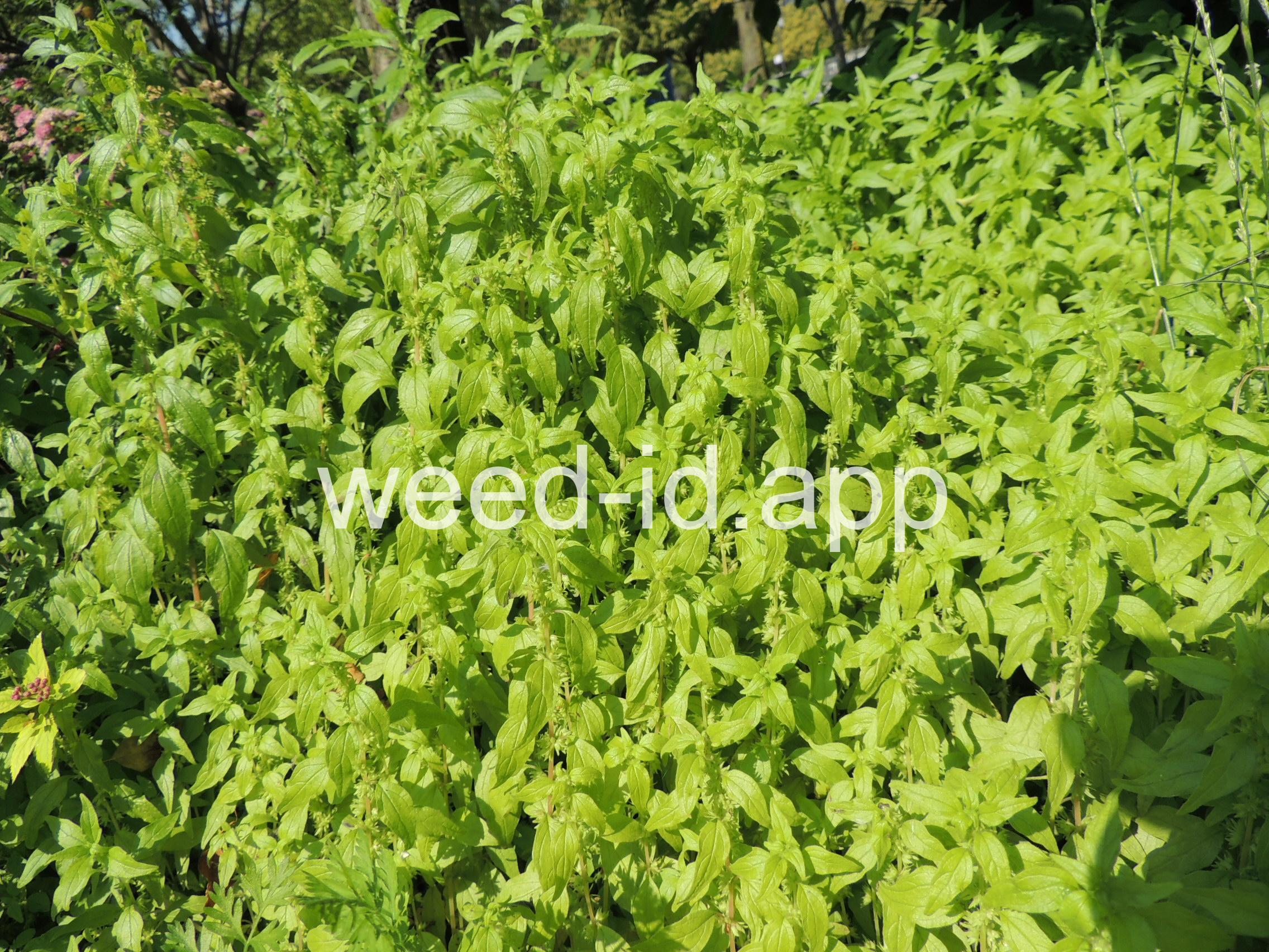 A small annual with clusters of greenish to brownish flowers in the axils of the alternate leaves. The flowers are subtended by narrow, green bracts longer than the flowers. Usually in shaded areas.
