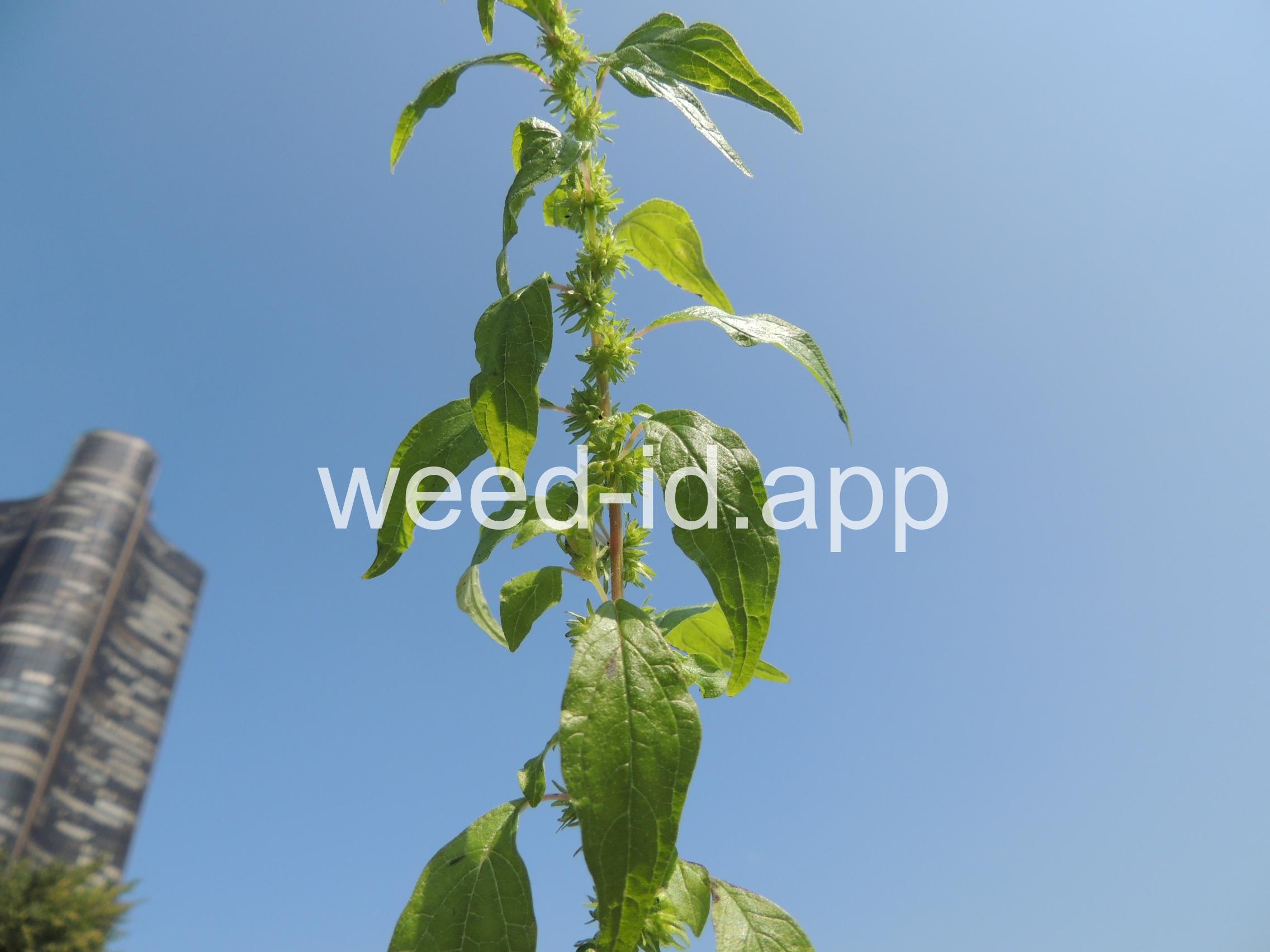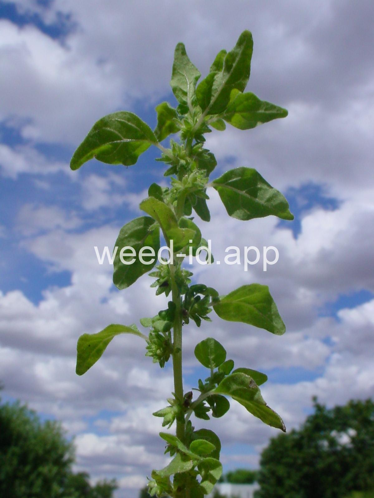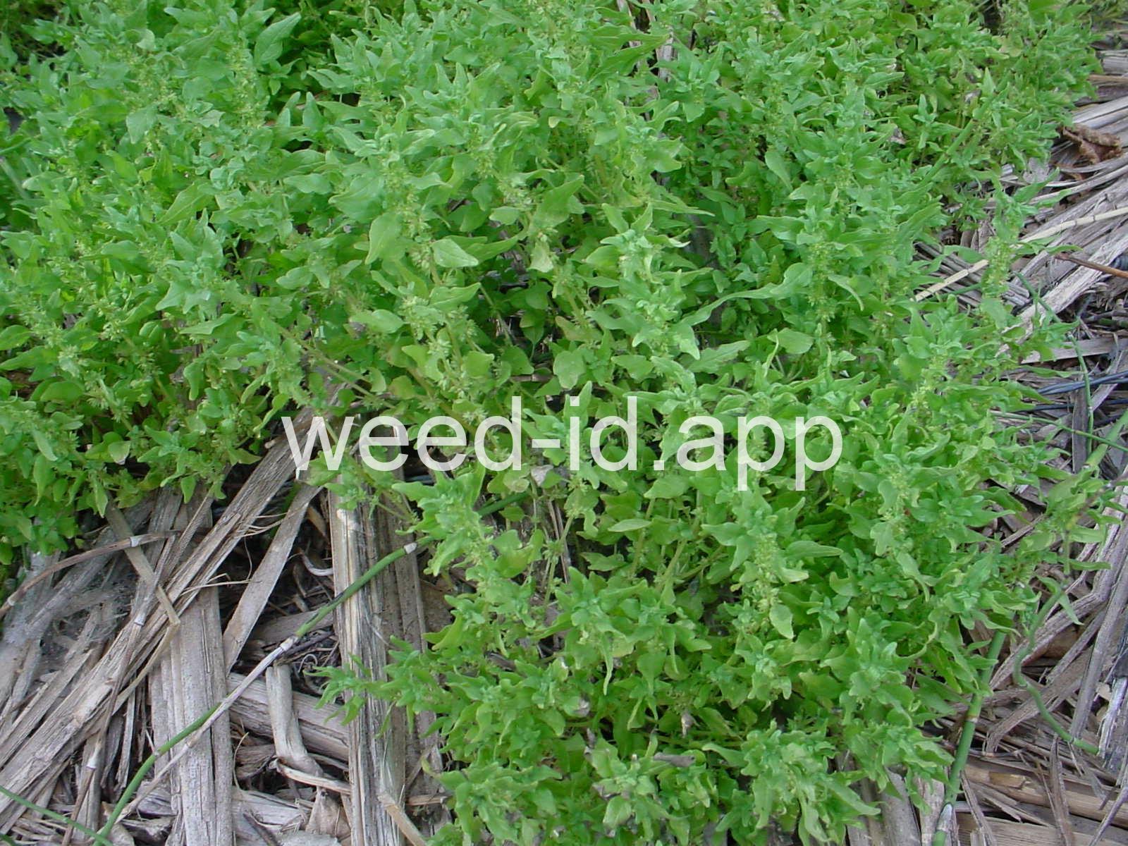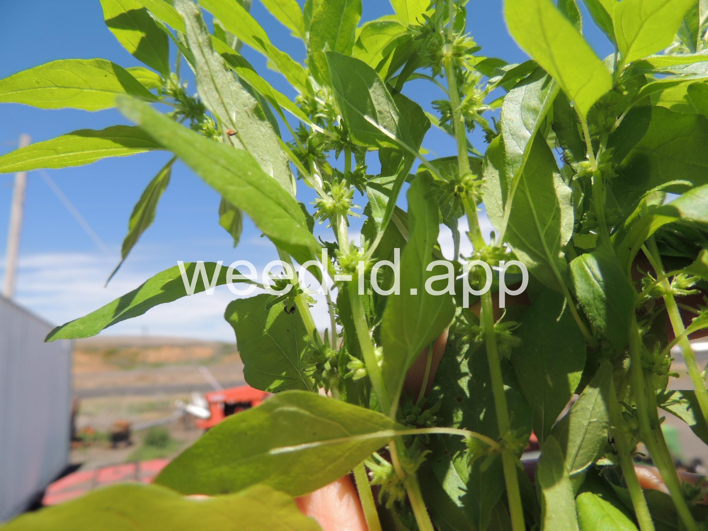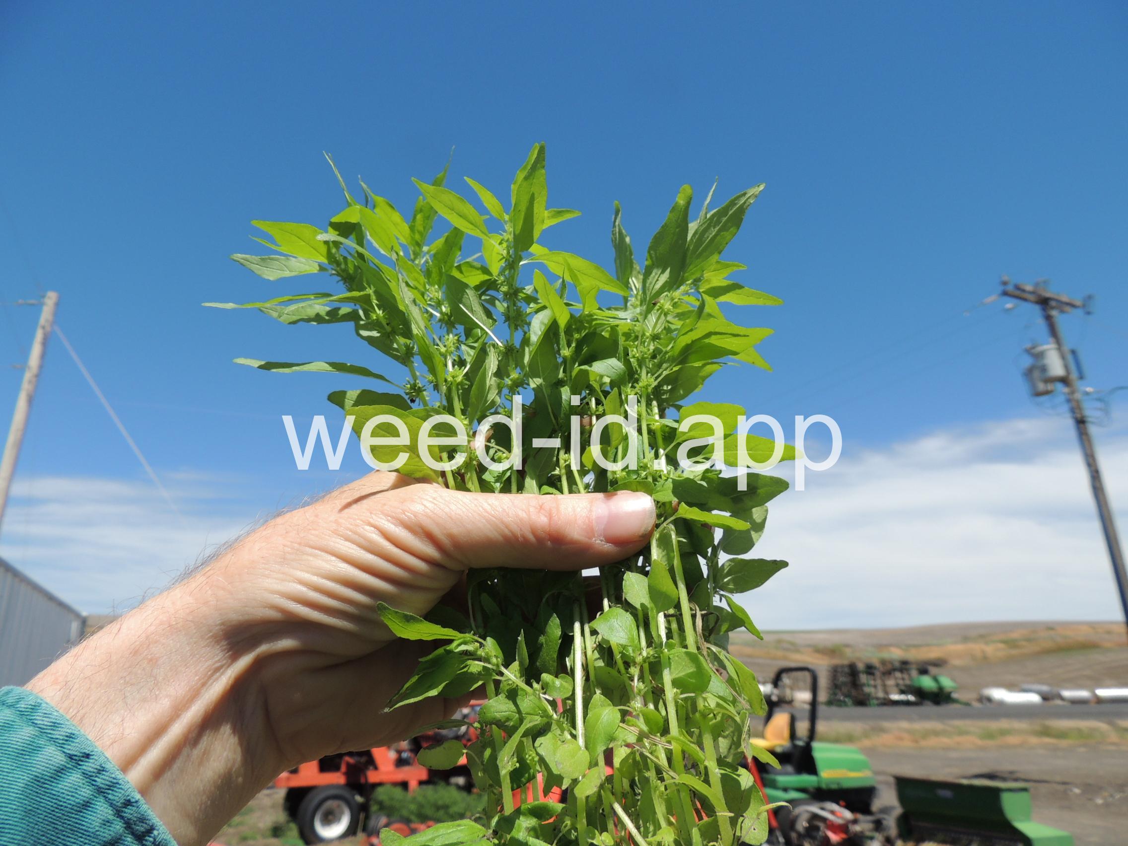 A small annual with clusters of greenish to brownish flowers in the axils of the alternate leaves. The flowers are subtended by narrow, green bracts longer than the flowers. Usually in shaded areas.