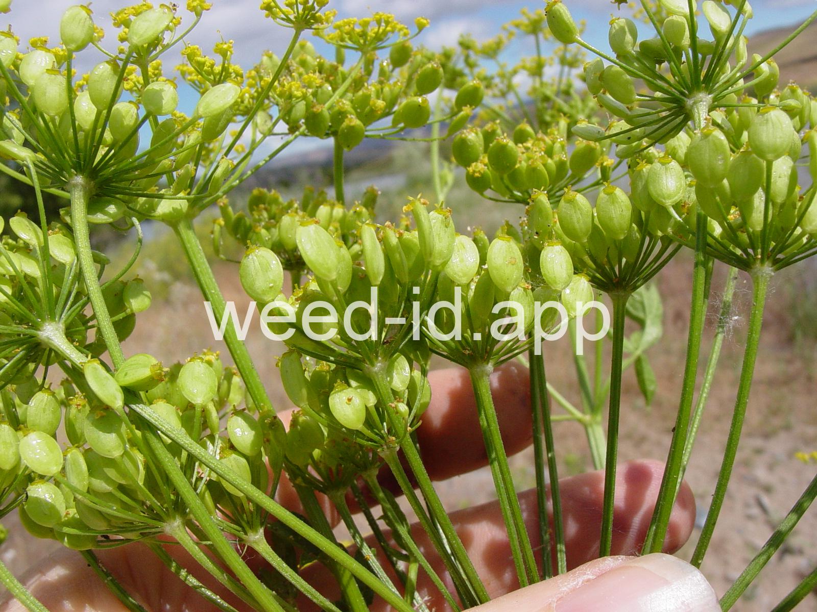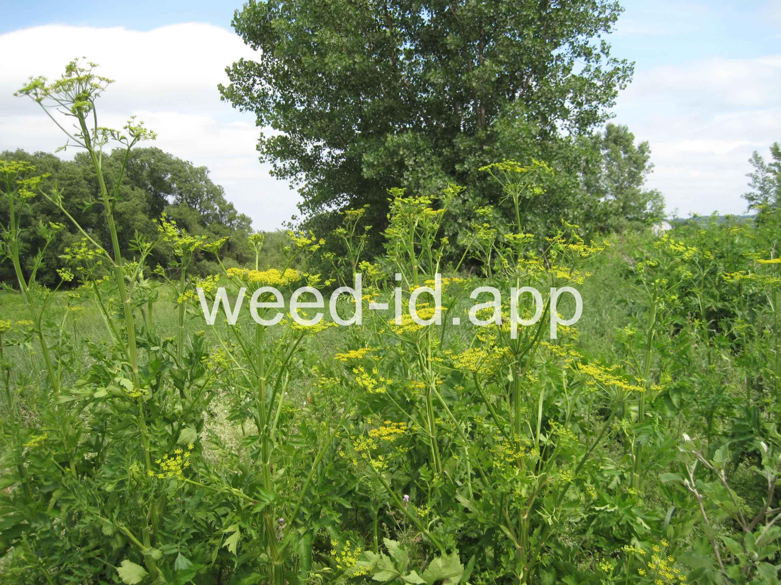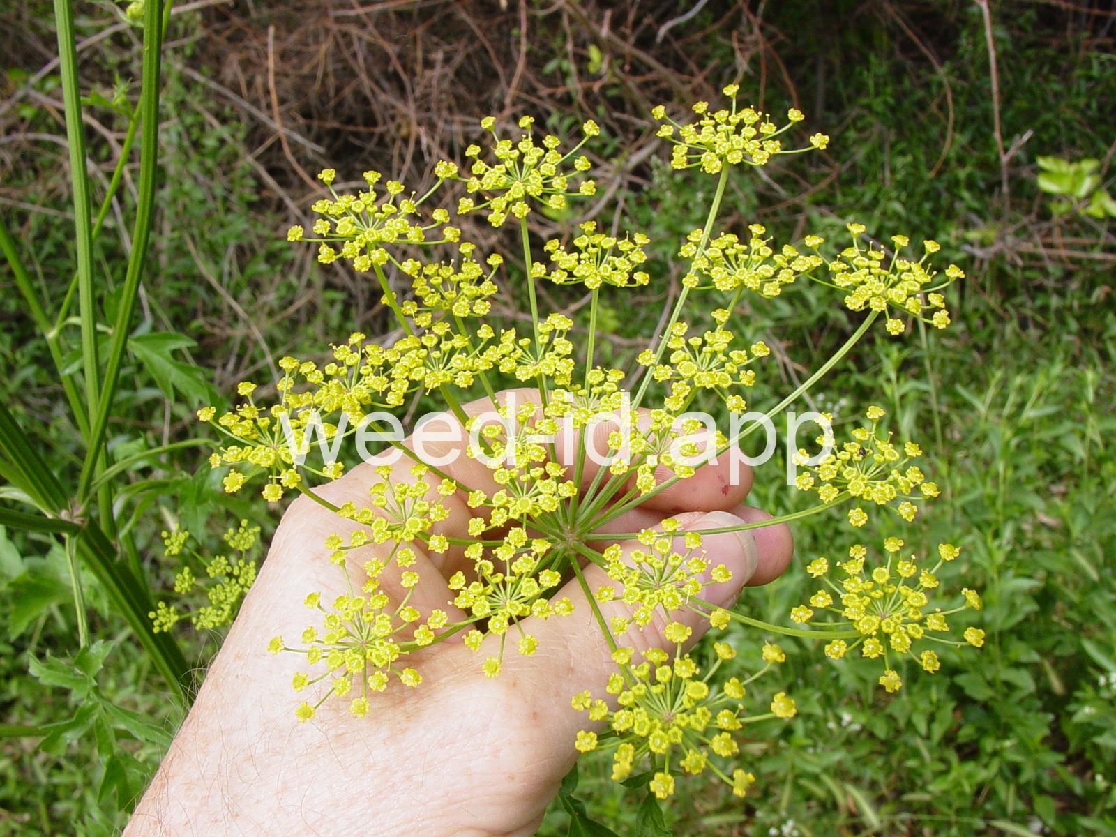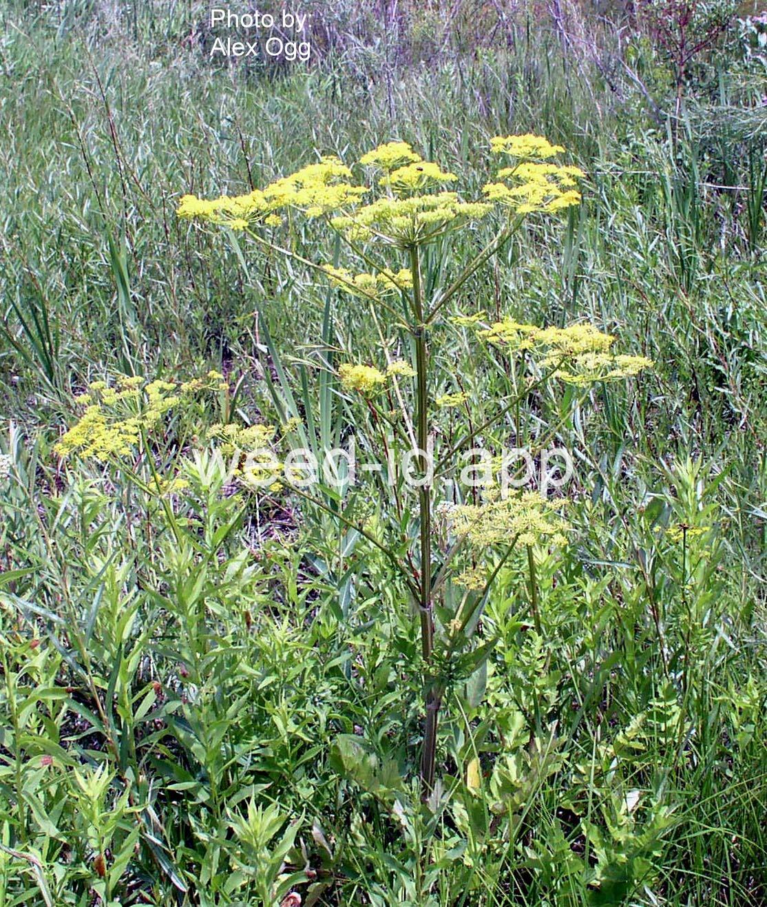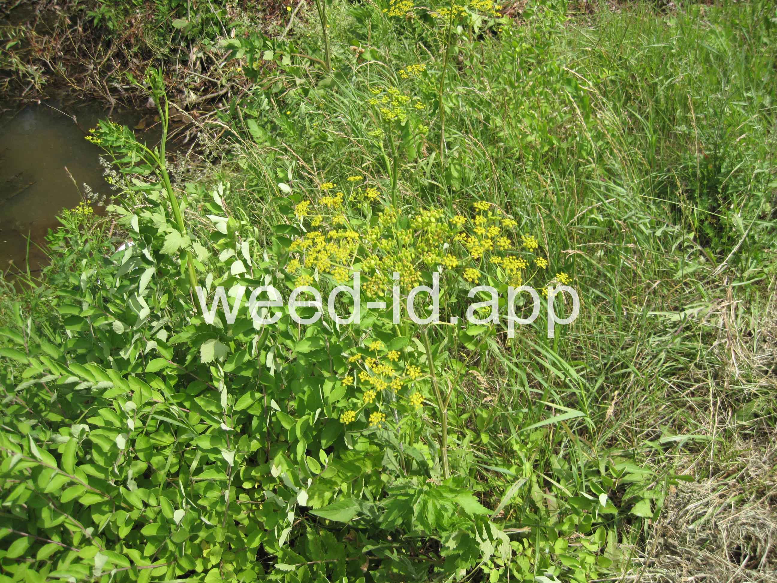This species has a large, whitish taproot and compound umbels of small, yellow flowers. It occurs primarily in moist, rich soils and is common along stream banks.