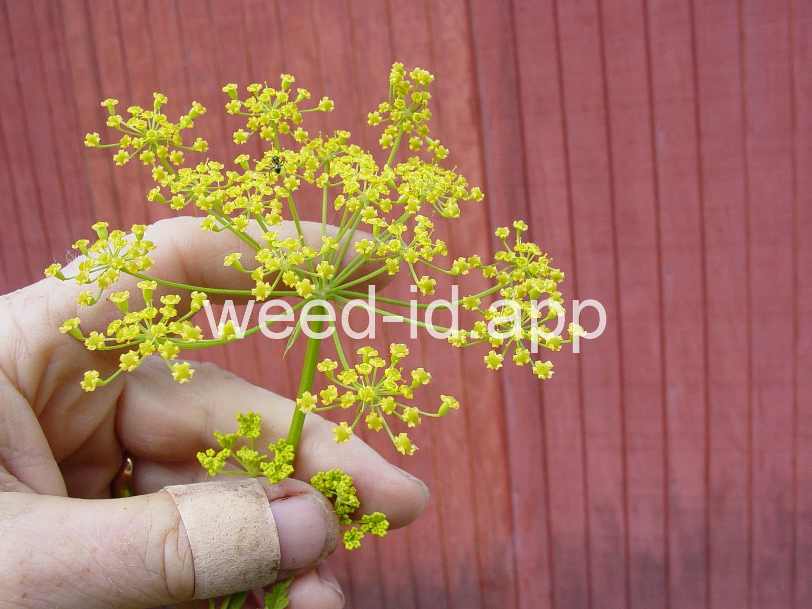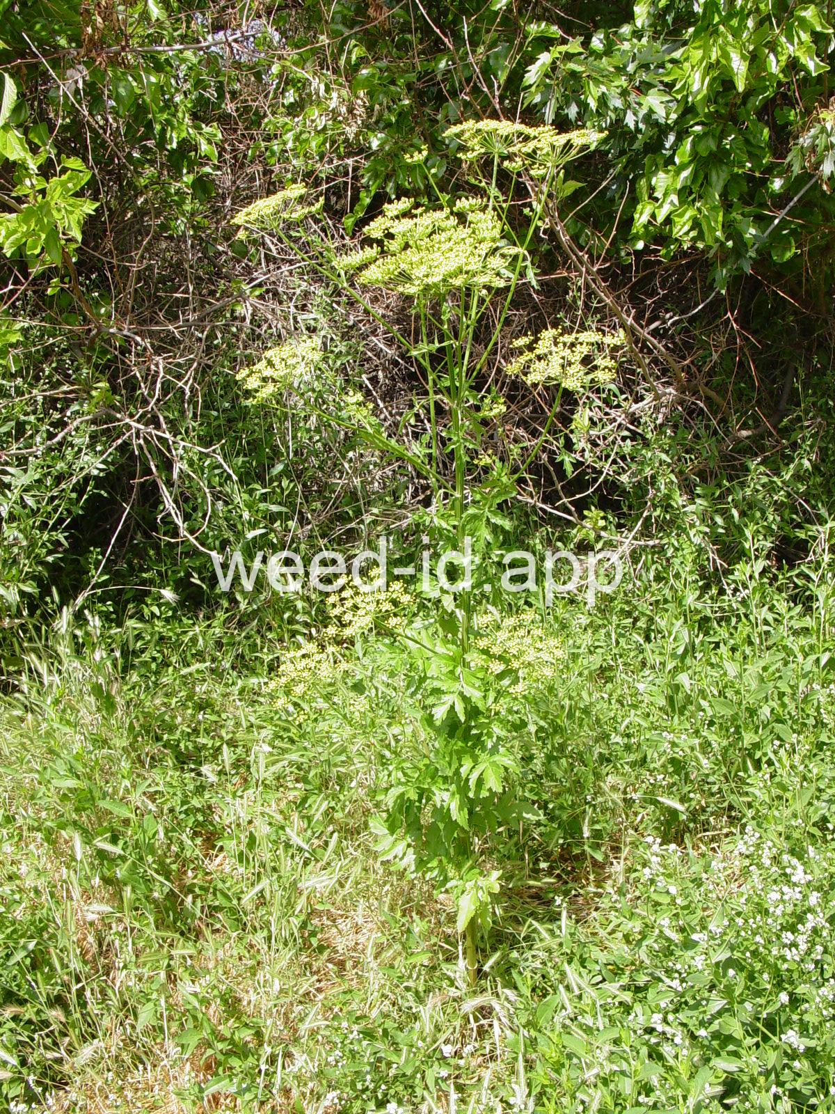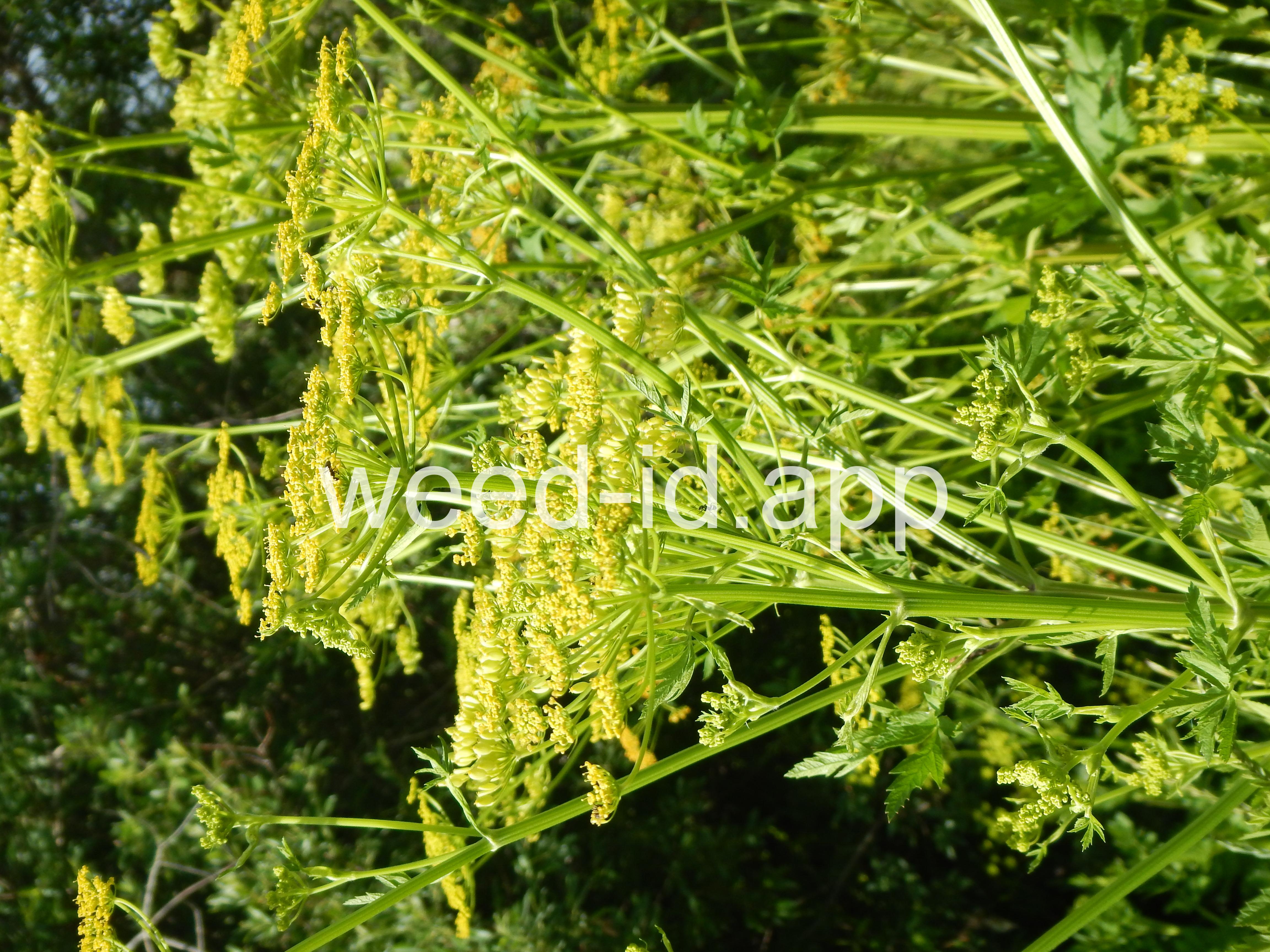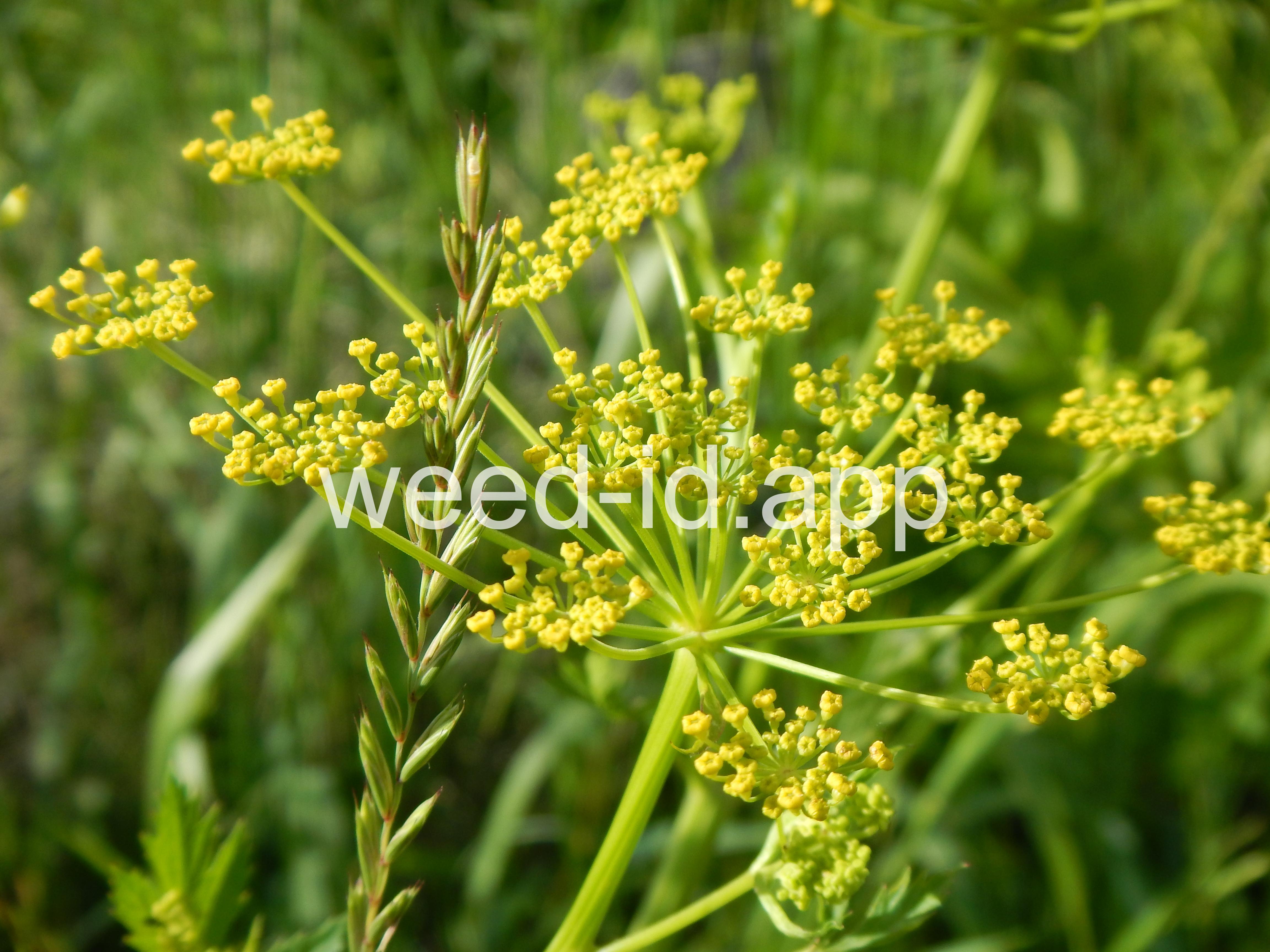 This species has a large, whitish taproot and compound umbels of small, yellow flowers. It occurs primarily in moist, rich soils and is common along stream banks.