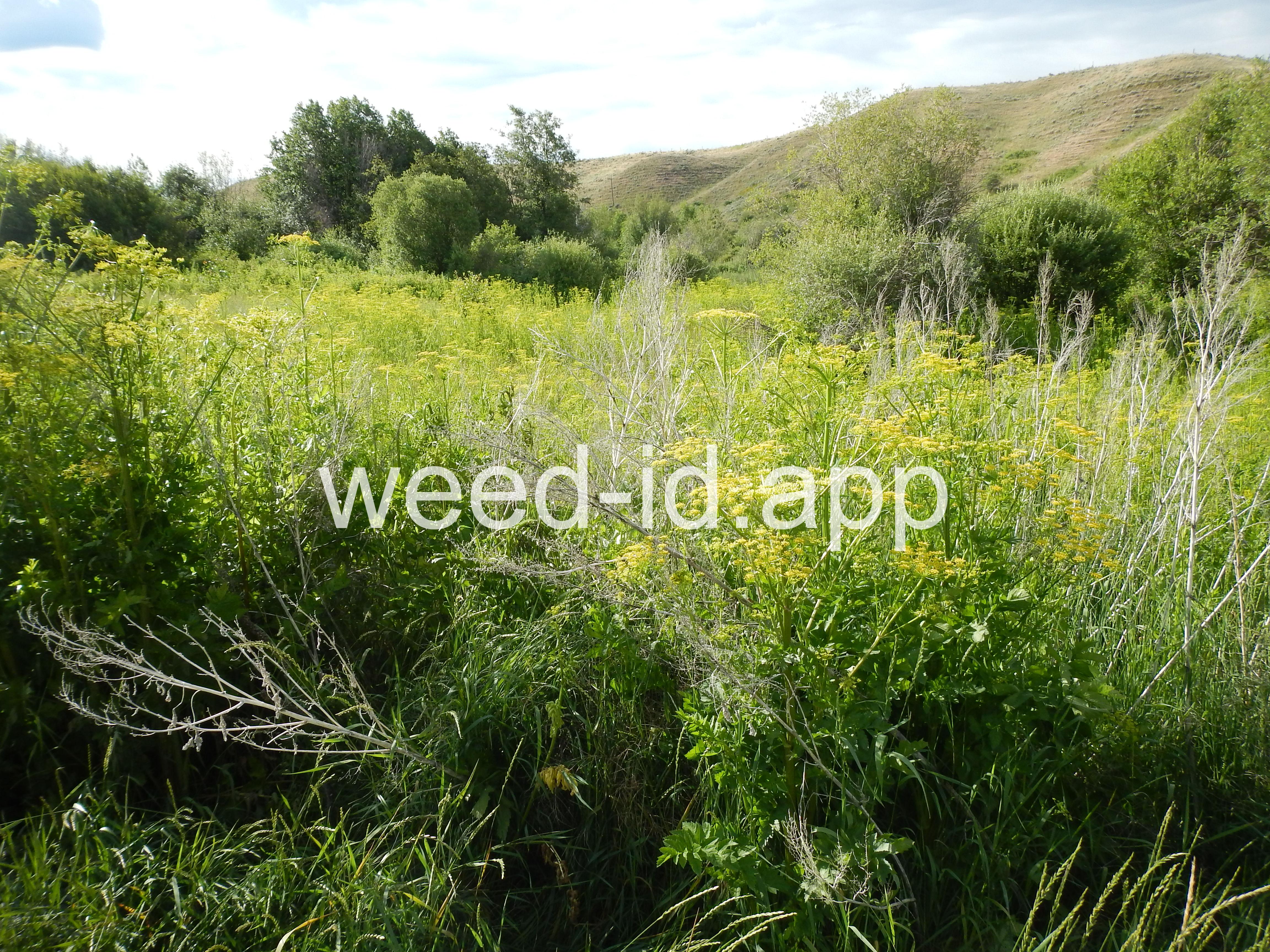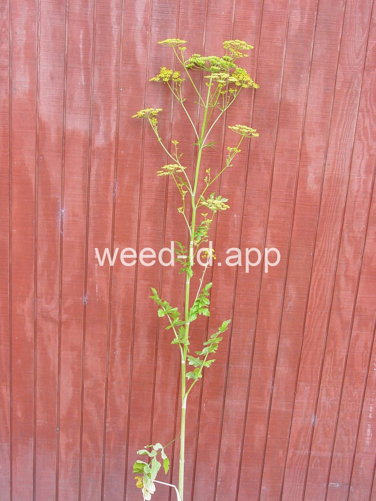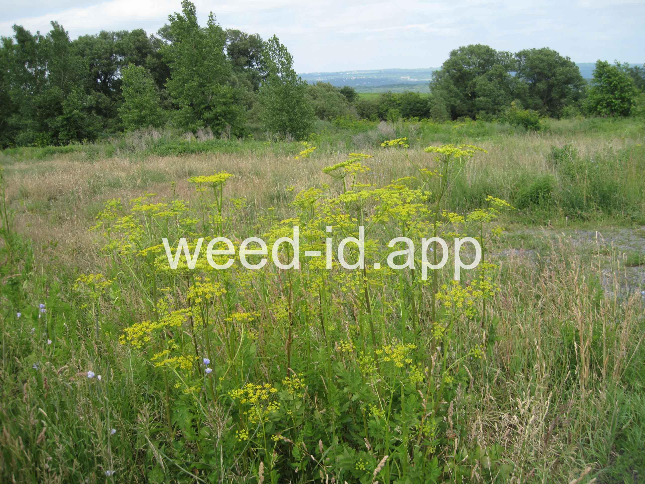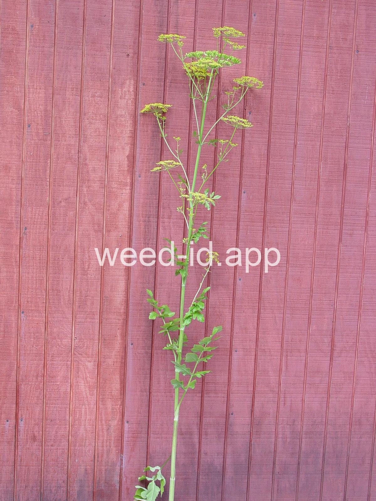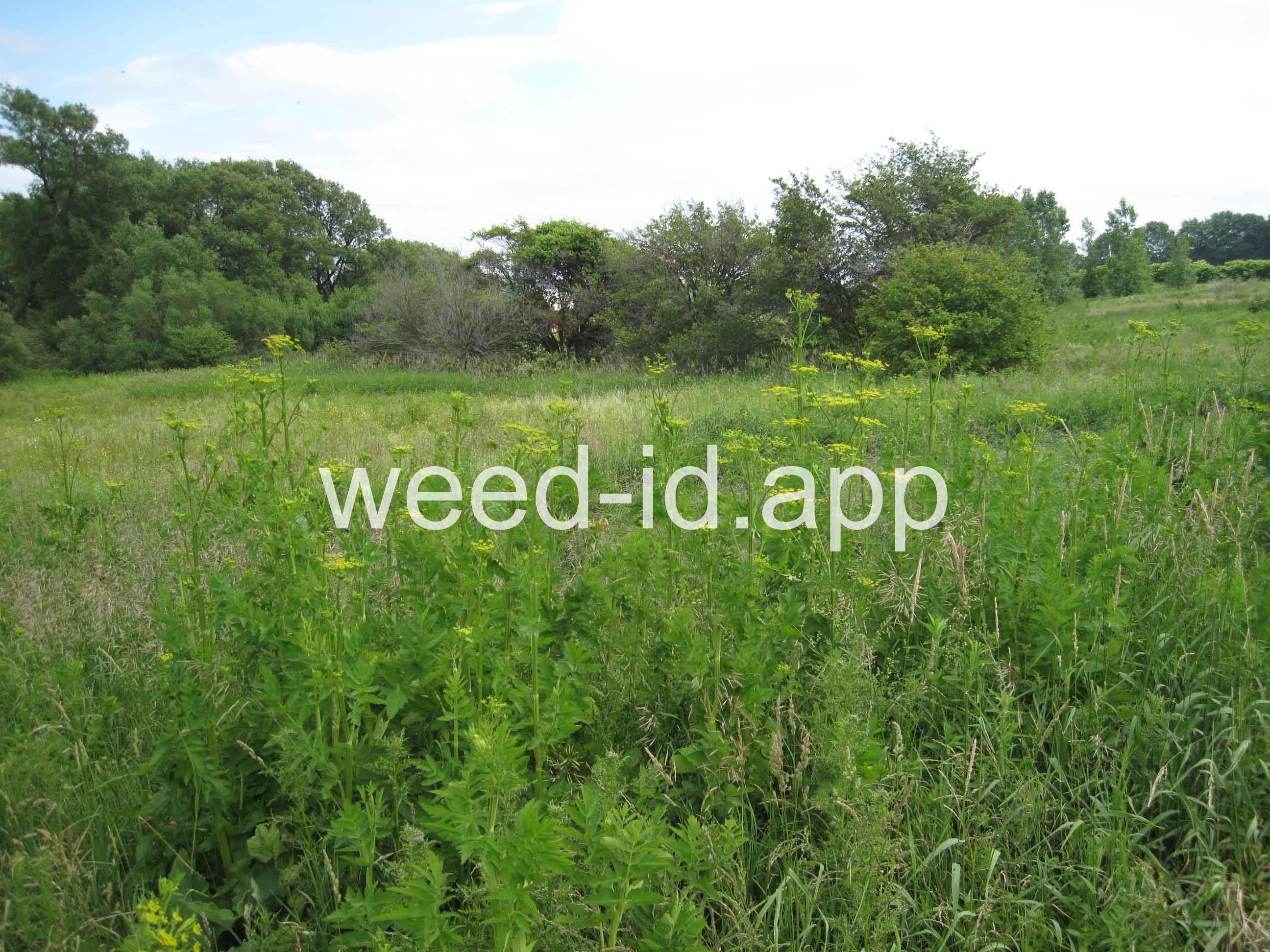 This species has a large, whitish taproot and compound umbels of small, yellow flowers. It occurs primarily in moist, rich soils and is common along stream banks.
