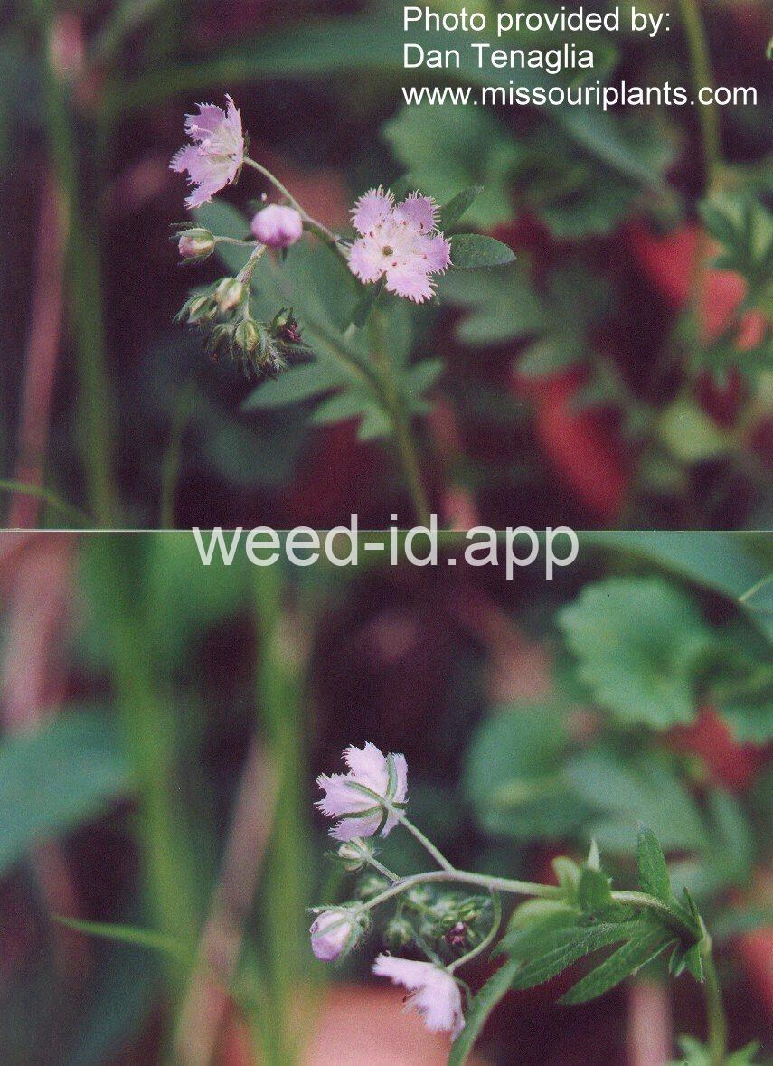 A native wildflower of the eastern United States, rare in much of its range, but listed as a weed in the following: Manual of Ohio Weeds, How to Know the Weeds, and Weeds, Walter Conrad Muenscher Note the delicate lavender flowers with fringe-tipped petals.